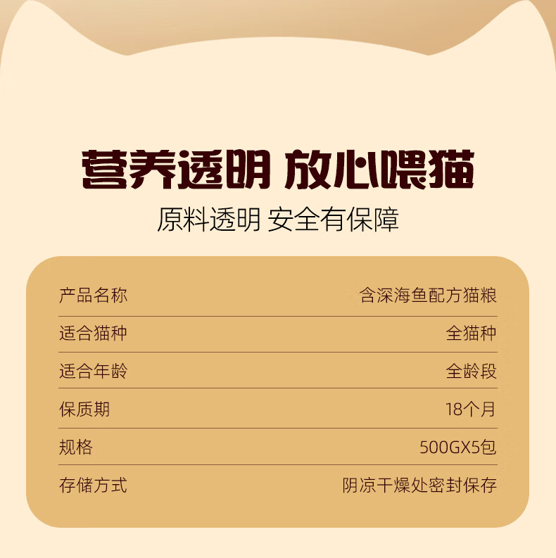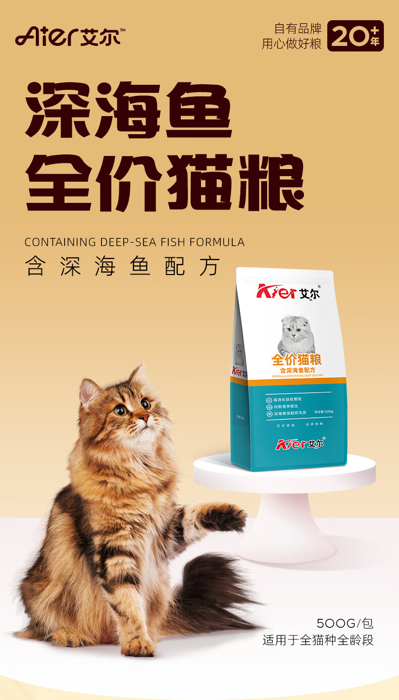 艾尔猫粮 深海鱼 成猫 幼猫 通用全价猫粮 500g*5 5斤