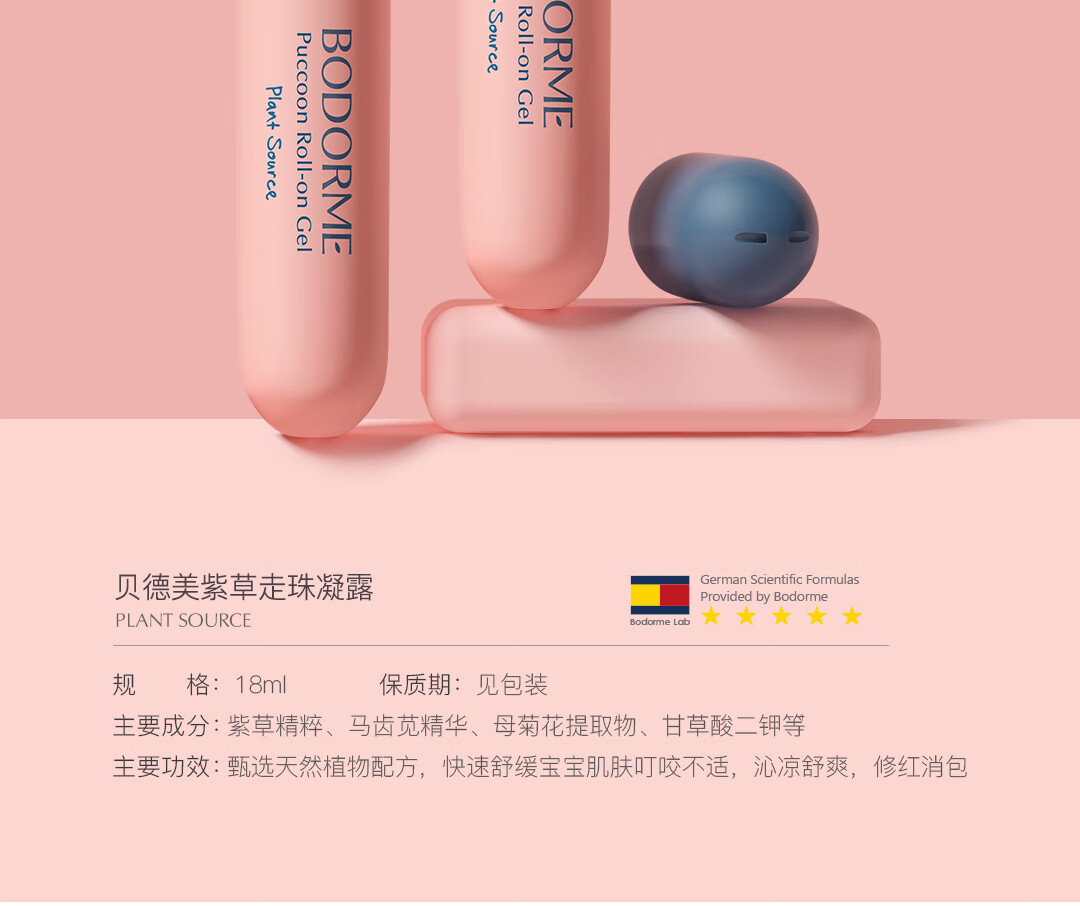 贝德美(bodcrme)紫草走珠凝露蚊虫蚊子叮咬消肿婴儿专用宝宝跳蚤咬儿童舒缓膏18ml