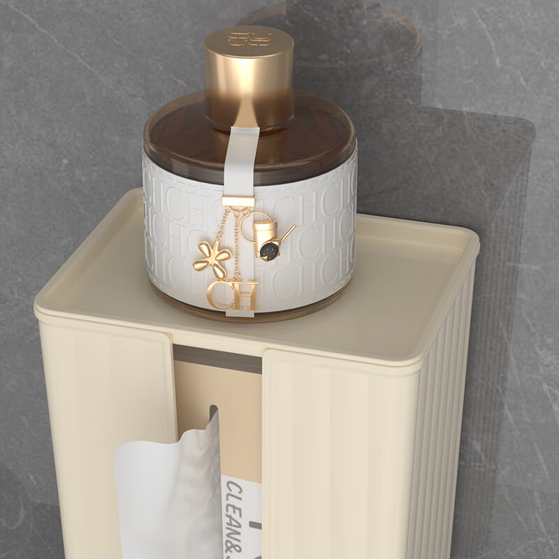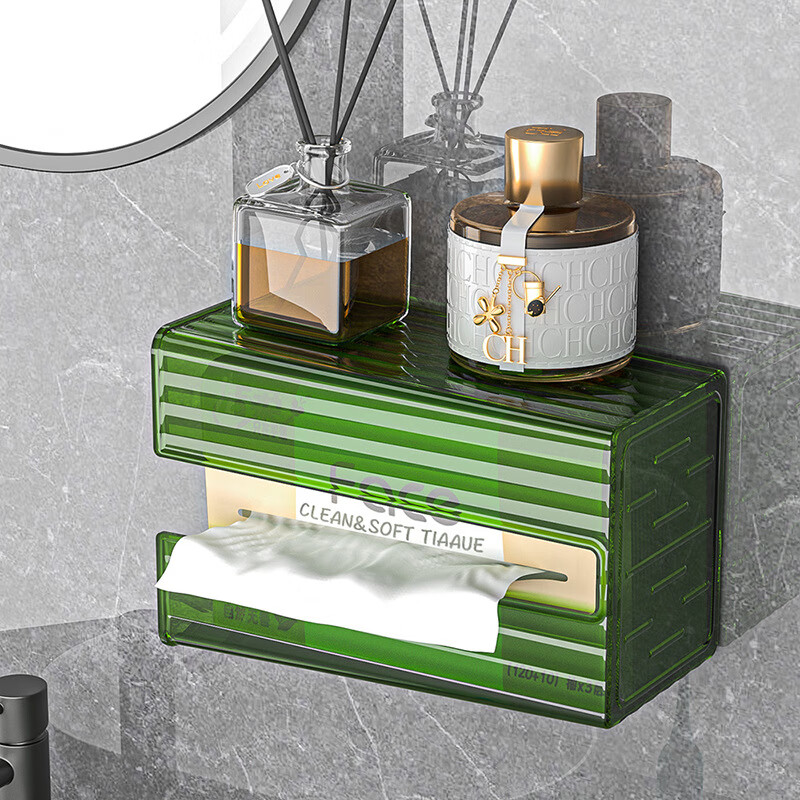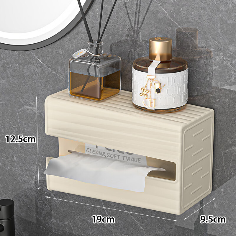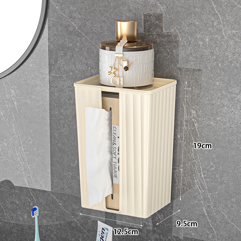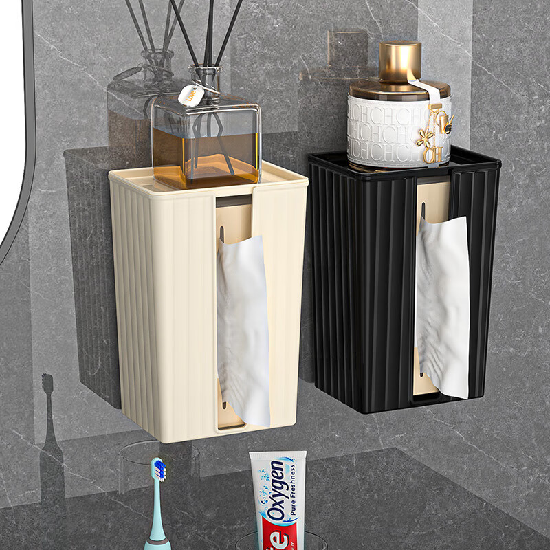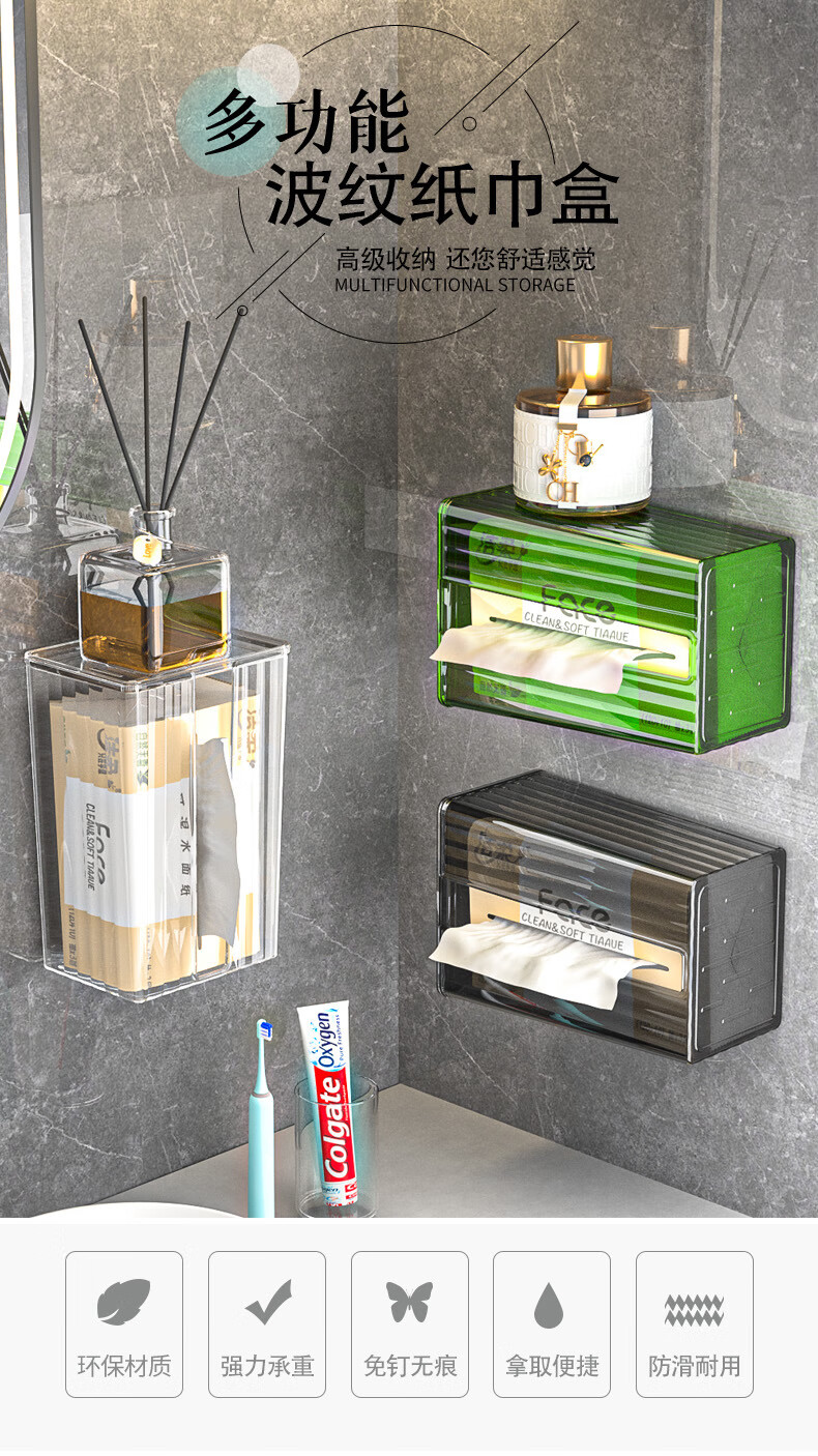 【直发】纸巾盒壁挂式免打孔抽纸盒卫生间厕所防水洗脸巾轻奢收纳 透灰 带盖