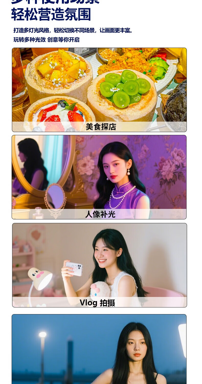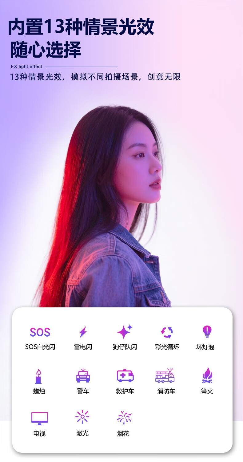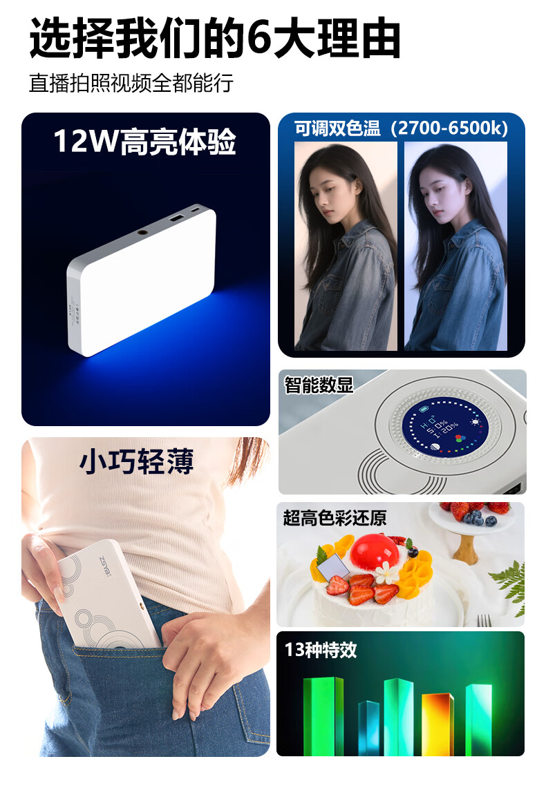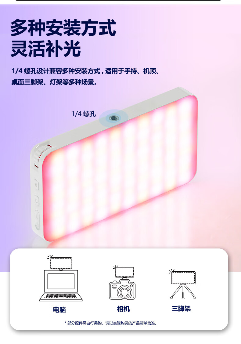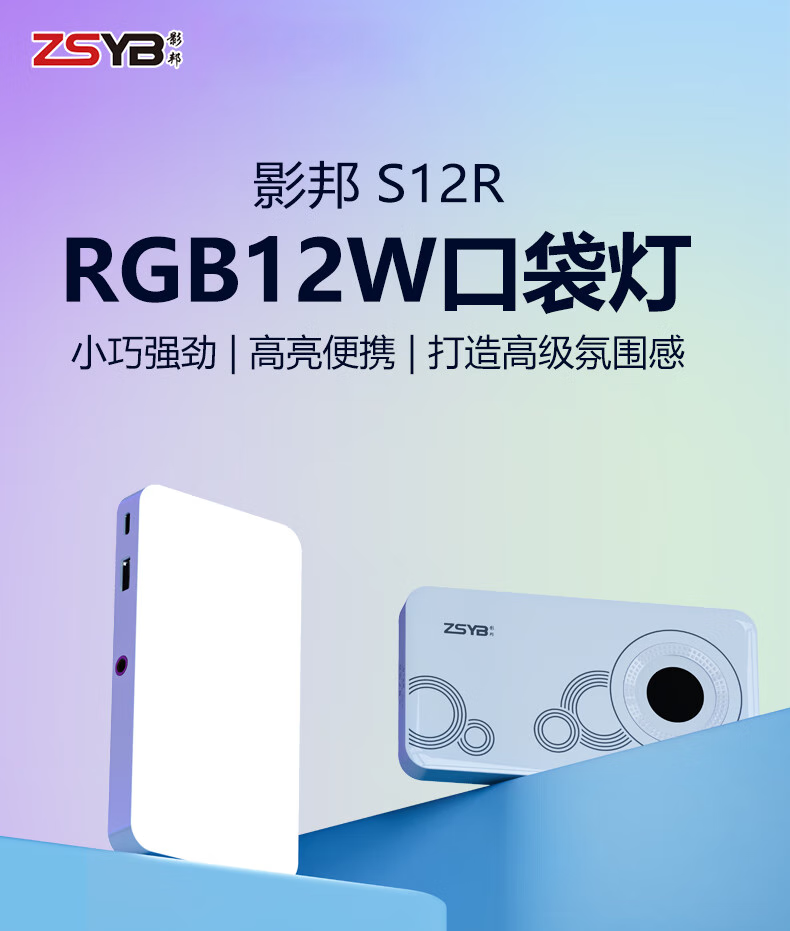 影邦手机拍照视频全彩RGB补光灯S12R便携人像美食探店手机12W口袋灯柔光灯美颜户外拍照直播灯豆腐灯 橙色标配+桌面三脚架
