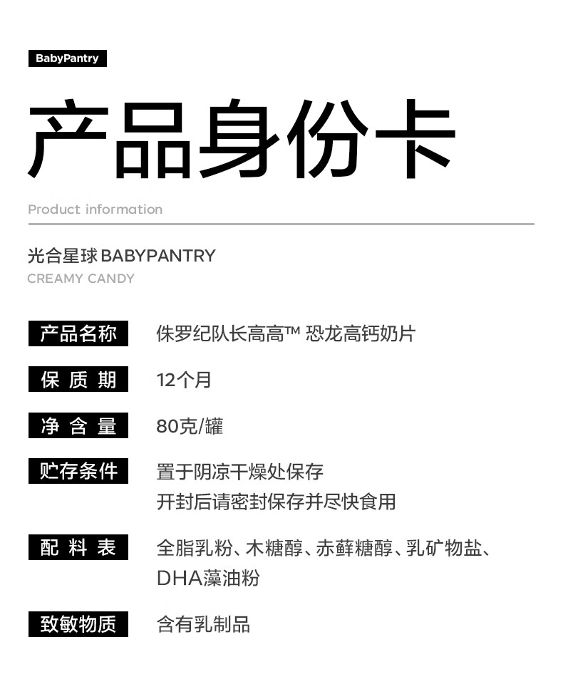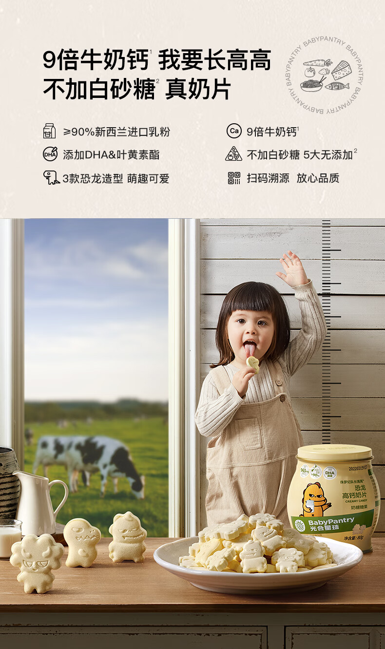 光合星球儿童营养零食高钙黄罐奶片牛奶贝糖果3岁+DHA奶酪80g*2罐