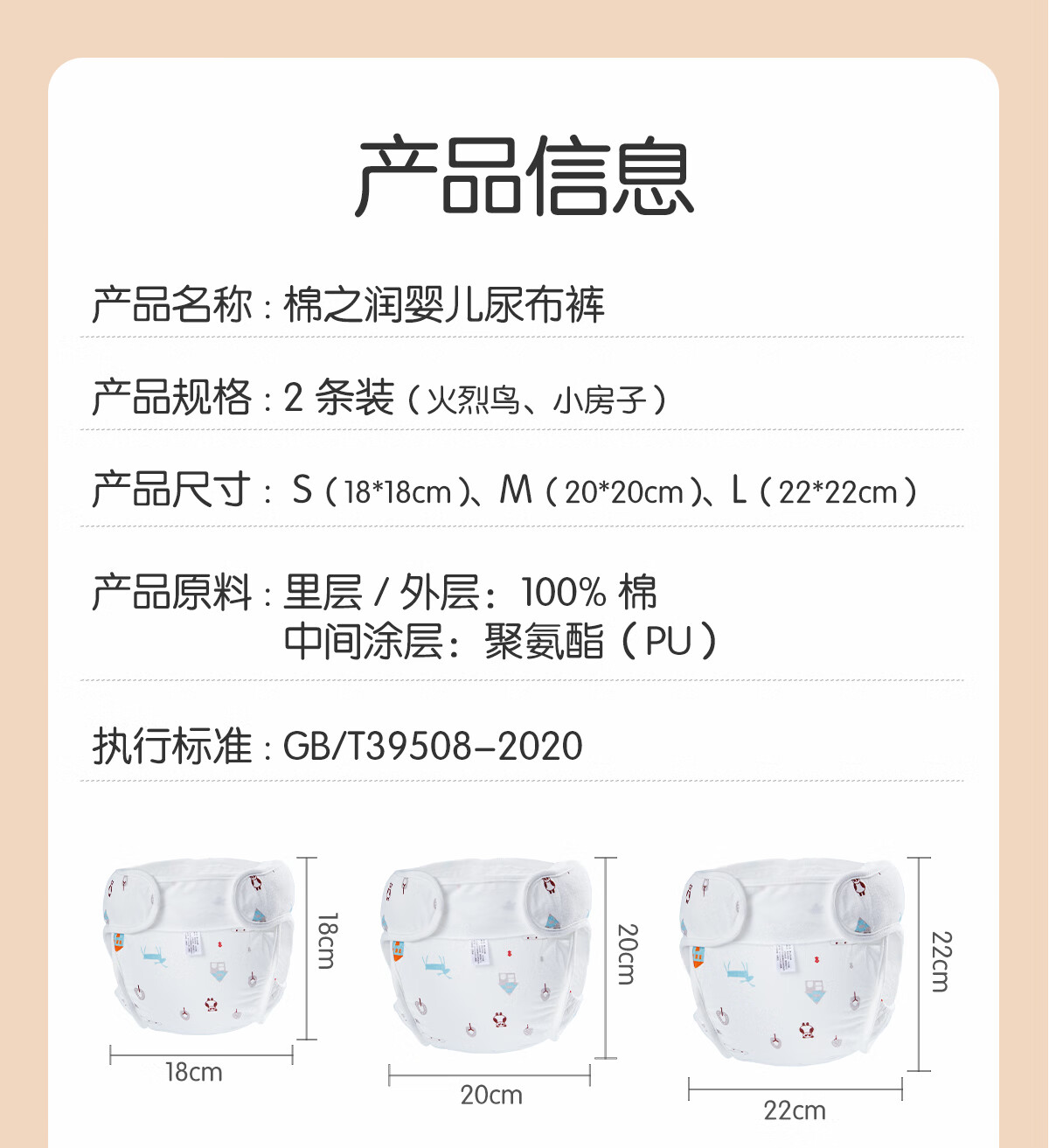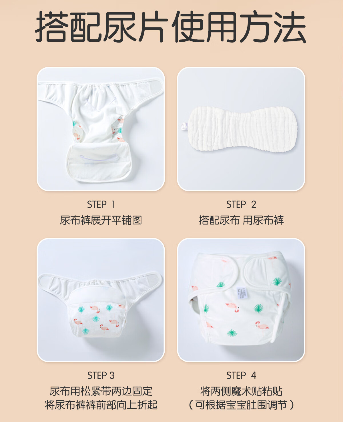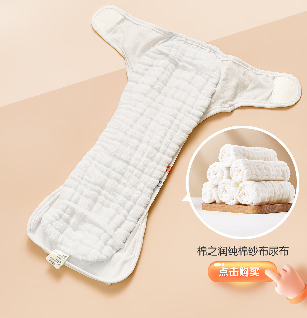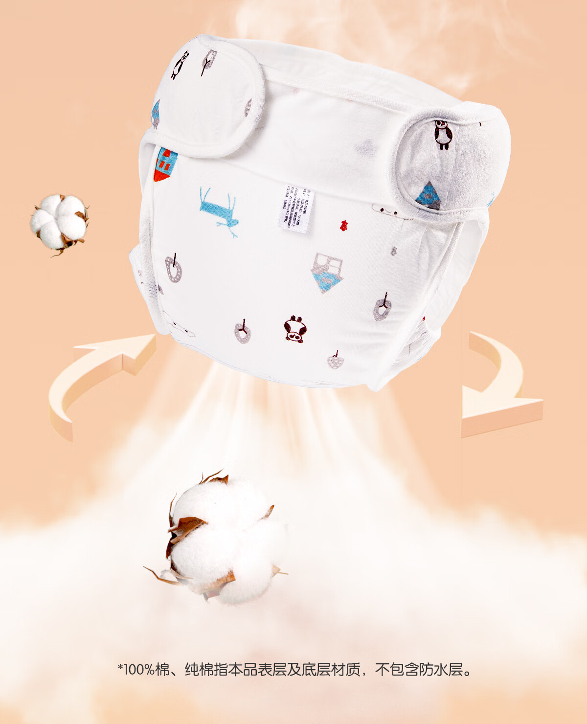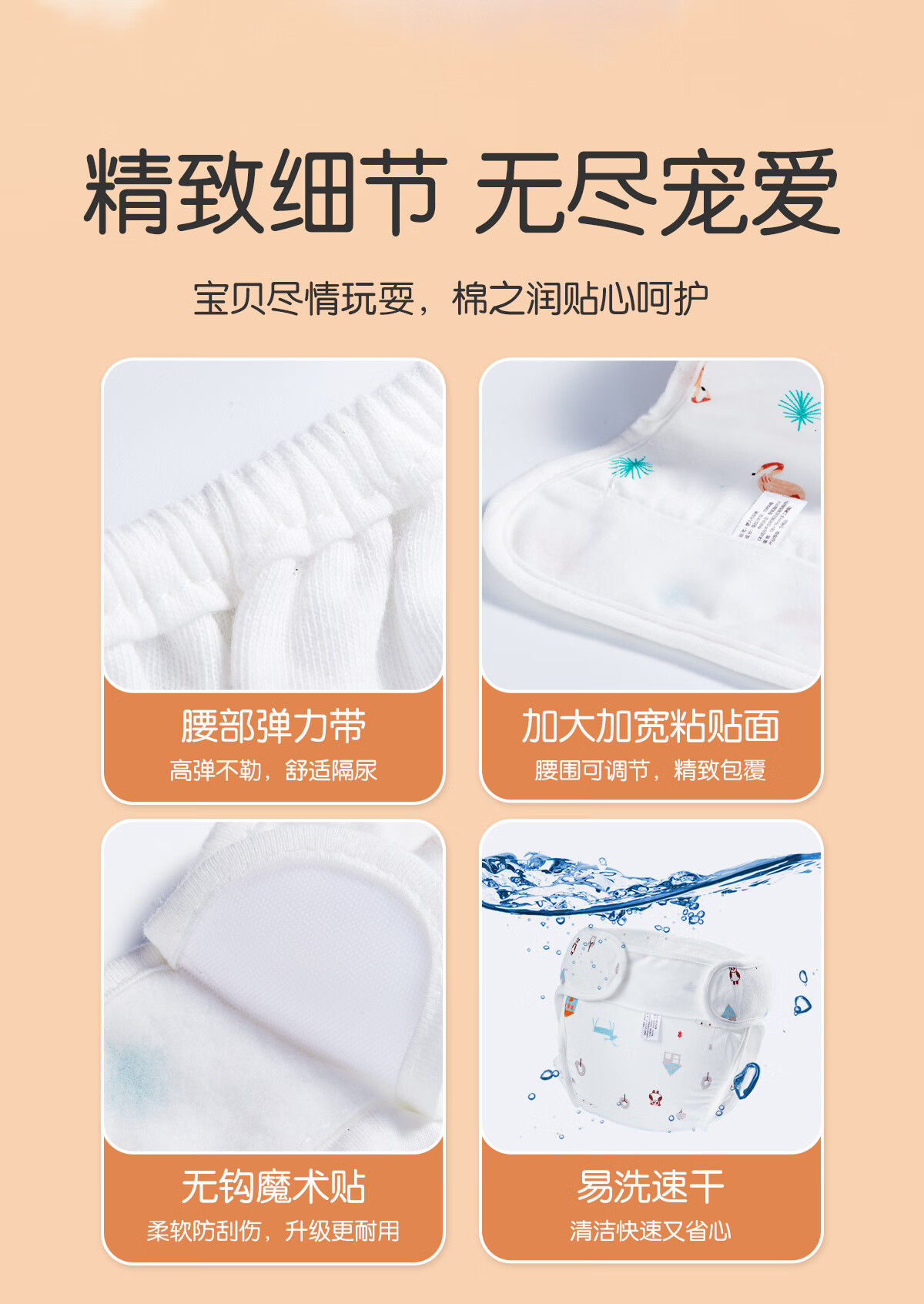 棉之润婴儿尿布裤 宝宝纯棉防侧漏尿布兜新生儿透气隔水隔尿兜M码2条装