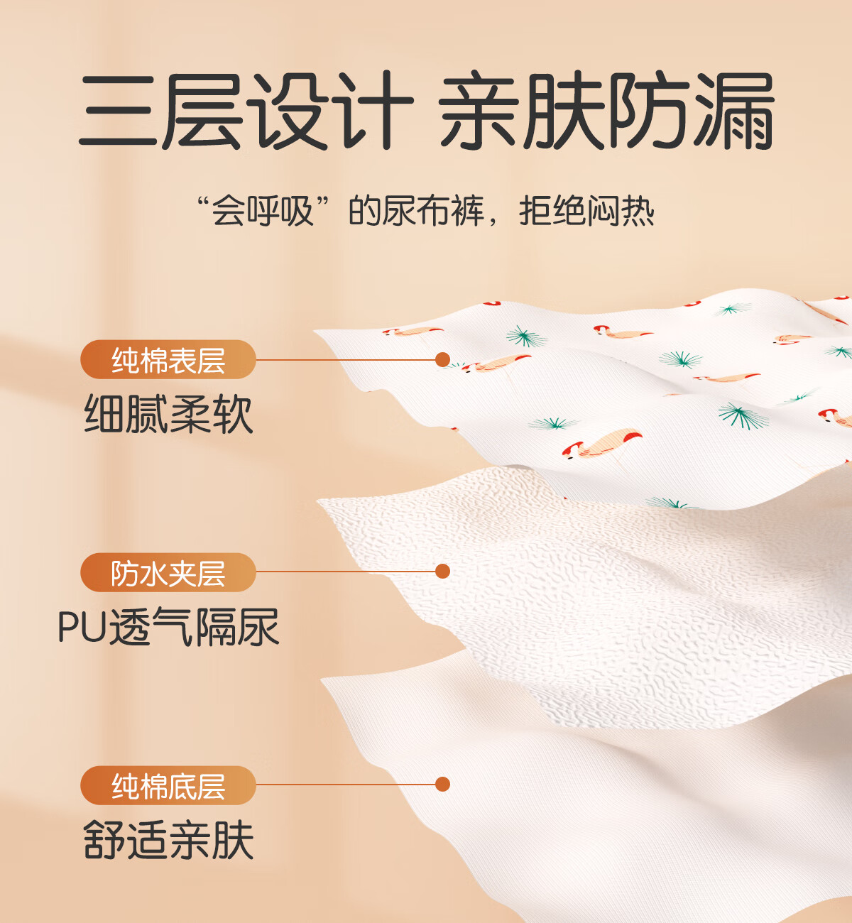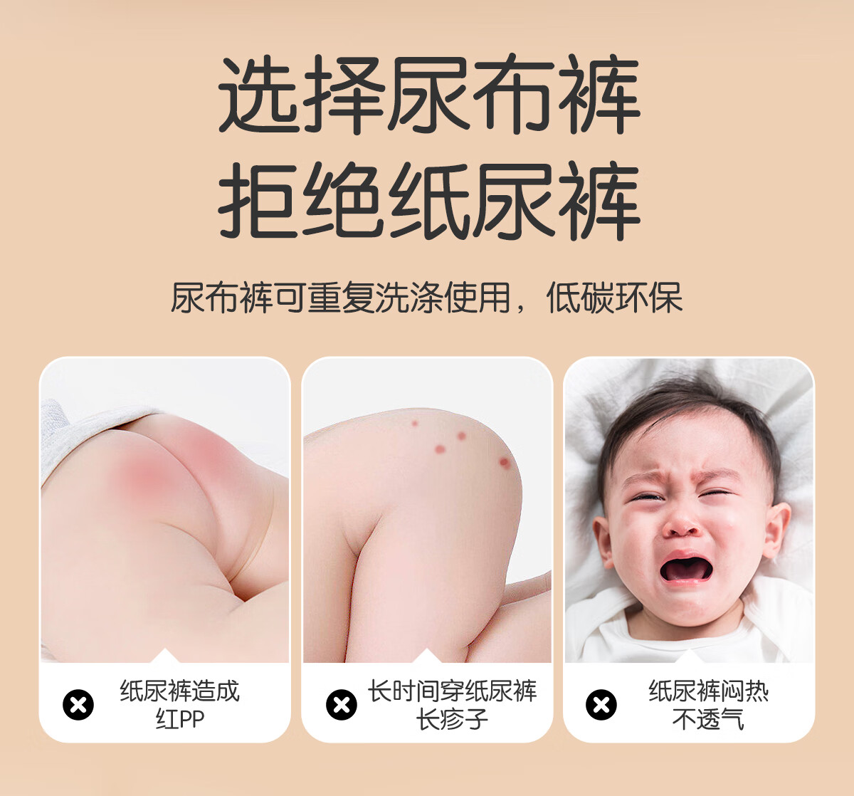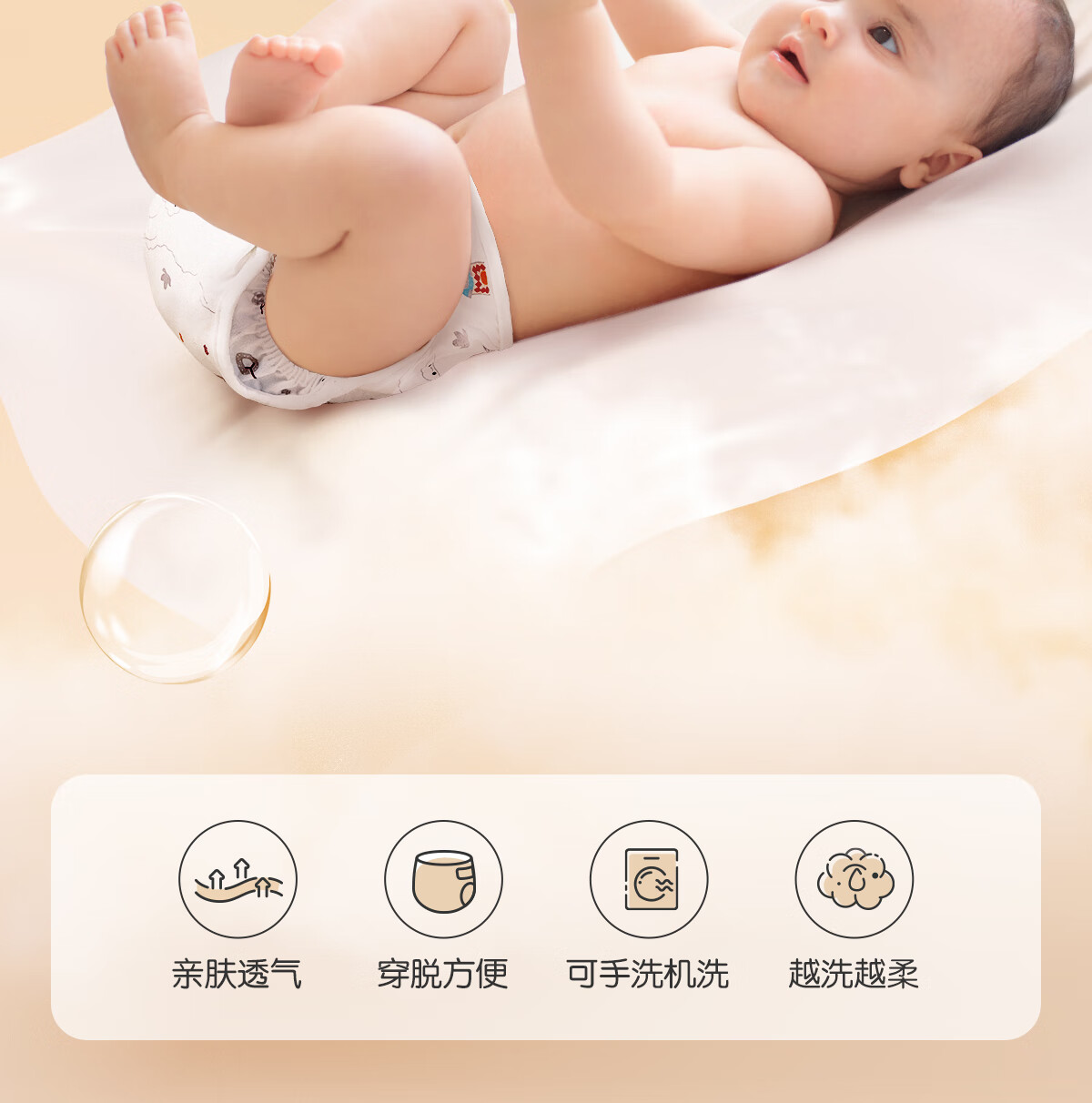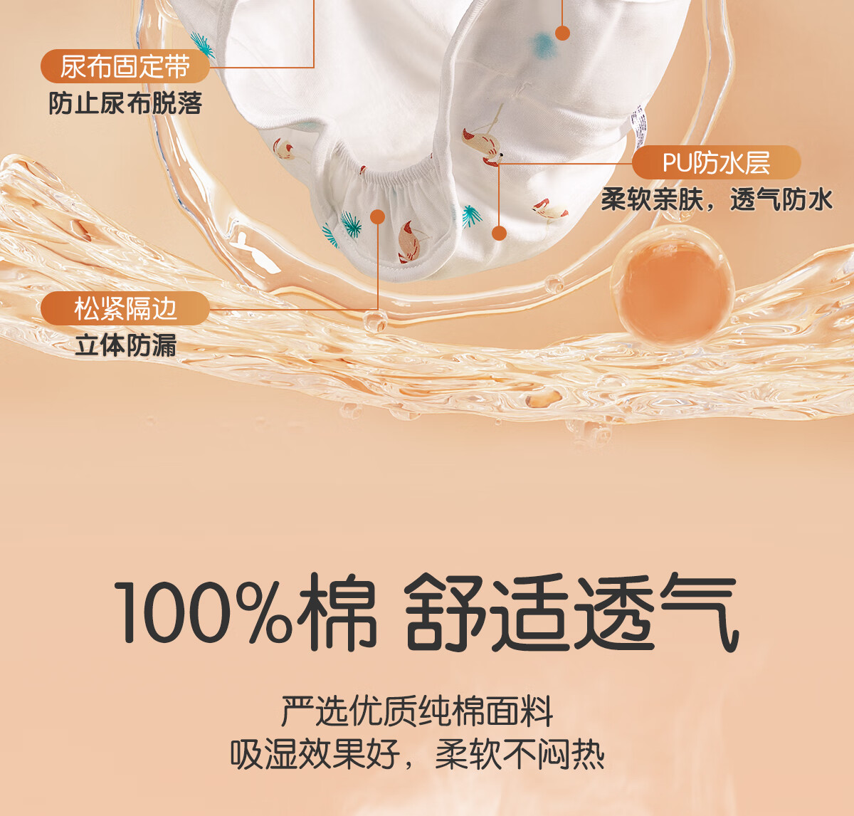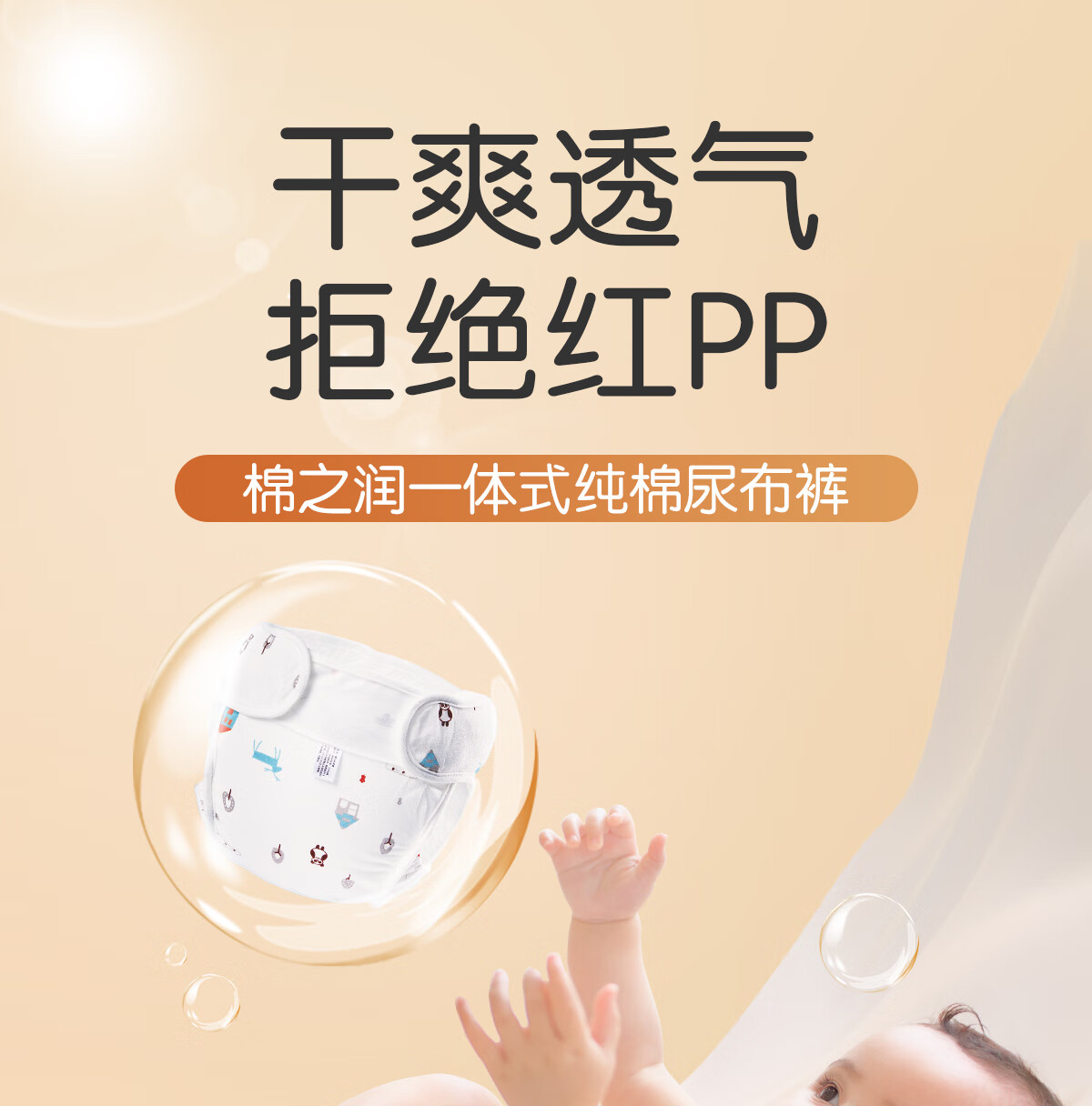 棉之润婴儿尿布裤 宝宝纯棉防侧漏尿布兜新生儿透气隔水隔尿兜M码2条装