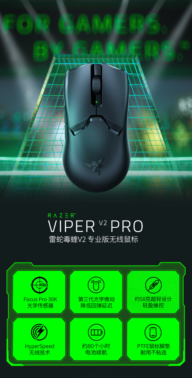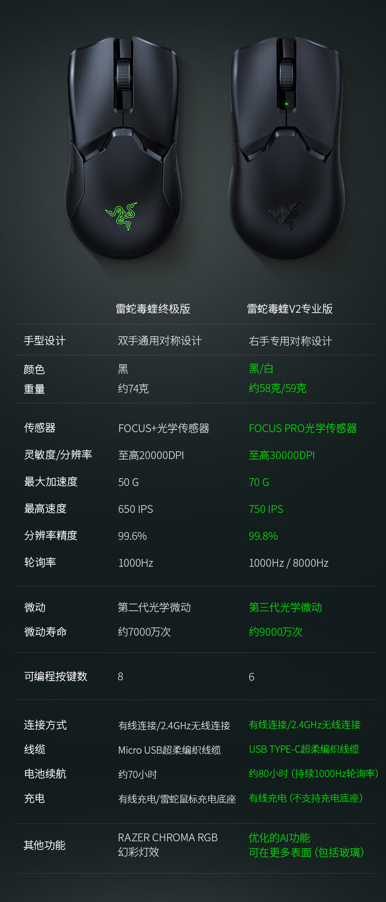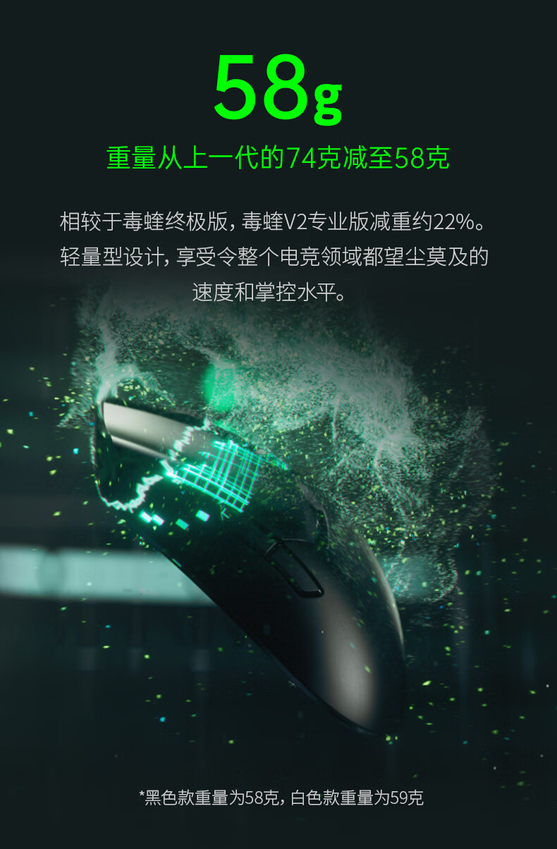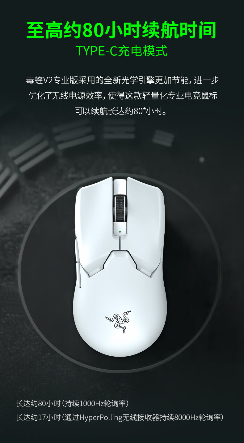 雷蛇(Razer)毒蝰V2pro专业版无线鼠标 电竞游戏 轻量化 对称型 白色(附专用防滑贴+Type-C充电接口)