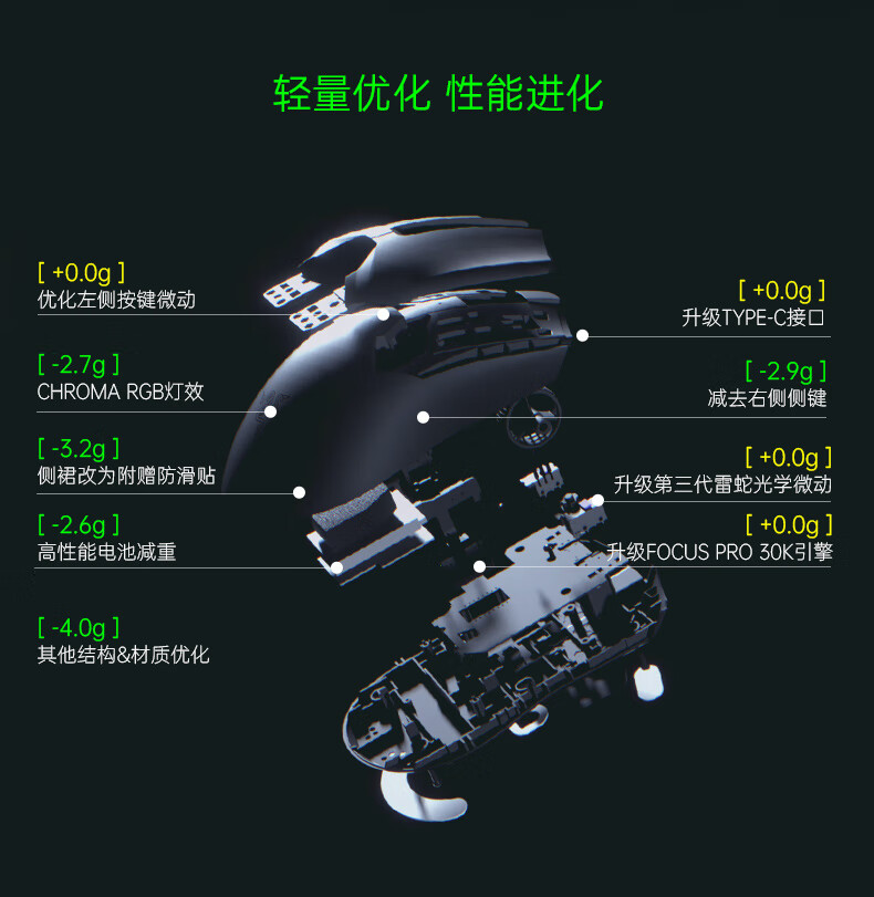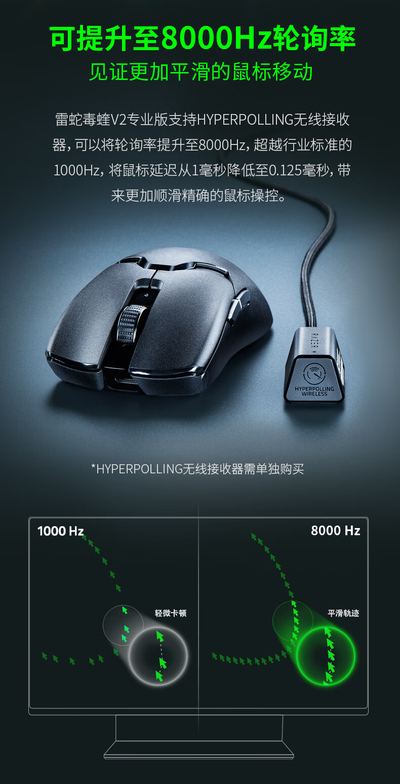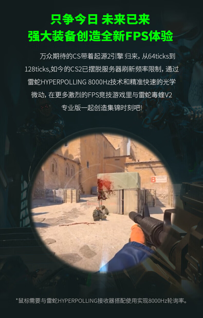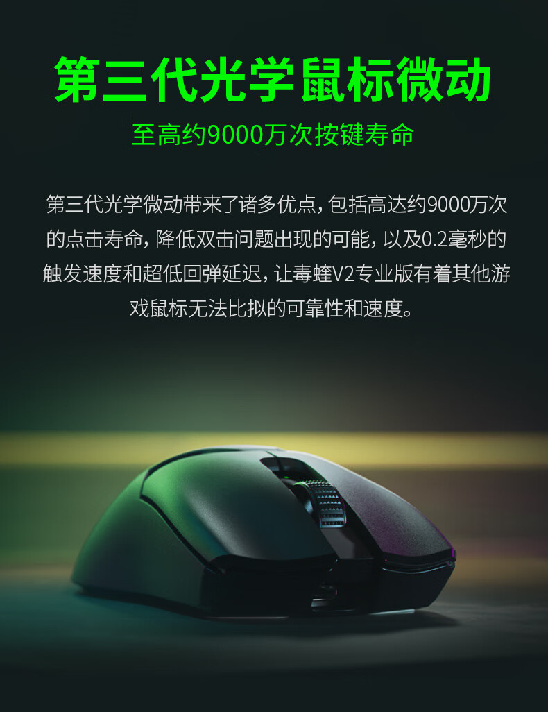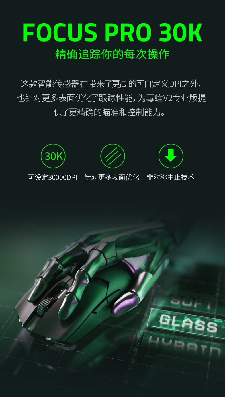 雷蛇(Razer)毒蝰V2pro专业版无线鼠标 电竞游戏 轻量化 对称型 白色(附专用防滑贴+Type-C充电接口)