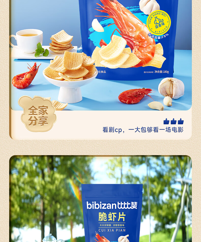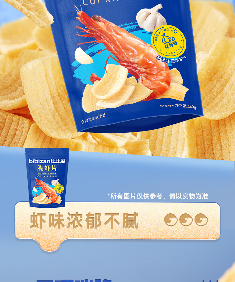 比比赞(BIBIZAN)脆虾片180g/袋鲜虾条薯片网红膨化饼干休闲零食品巨型虾片超大包