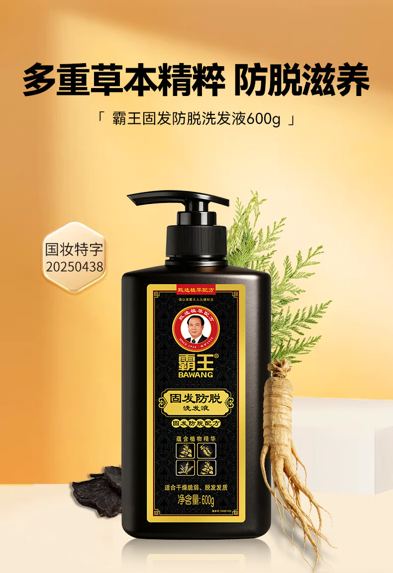 霸王防脱洗发水控油去屑强韧固发防断发侧柏叶何首乌草本滋养洗头膏 固发防脱洗发水共1216ml