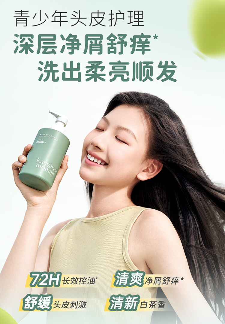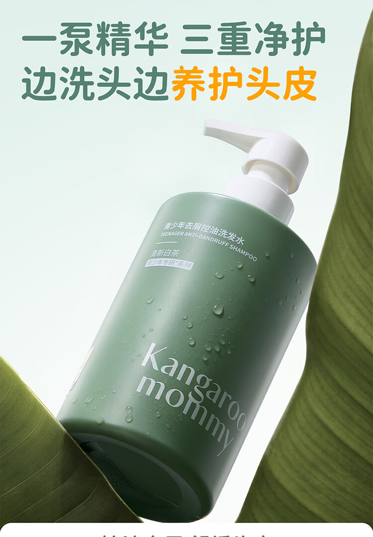 袋鼠妈妈青少年洗发水去屑控油青春期儿童洗发露清洁舒缓头皮净异味200ml