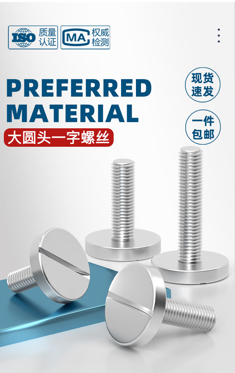 天卓五金304不锈钢平头大圆头一字螺丝钉GB833开槽圆柱头M2M3M4M5M6M8M10 M2*3【15个】