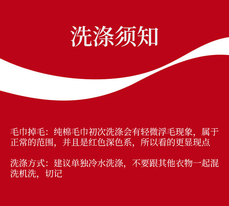 可口可乐A类全棉毛巾加厚100g柔软纯棉洗脸巾吸水面巾 经典红 2条 100g