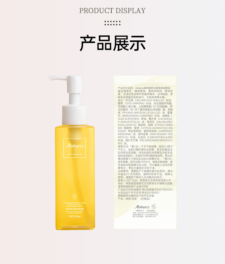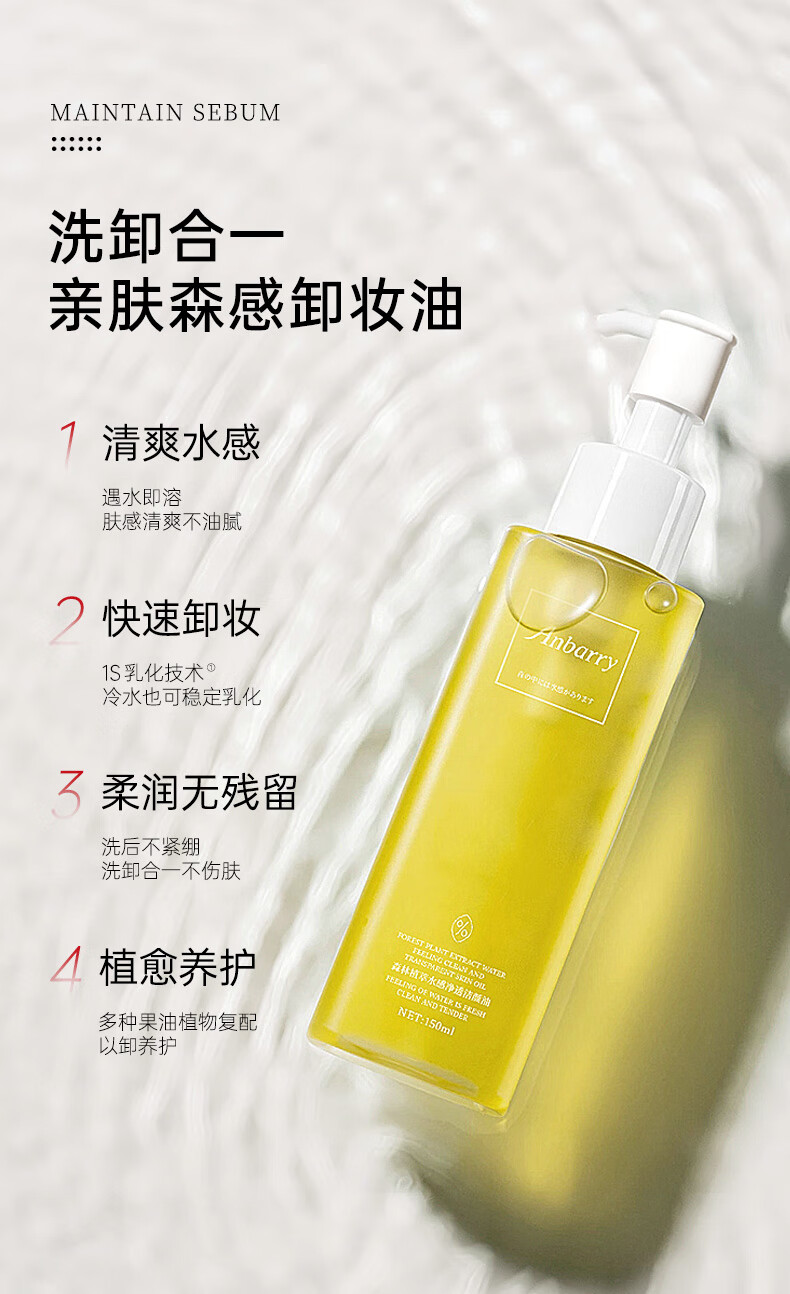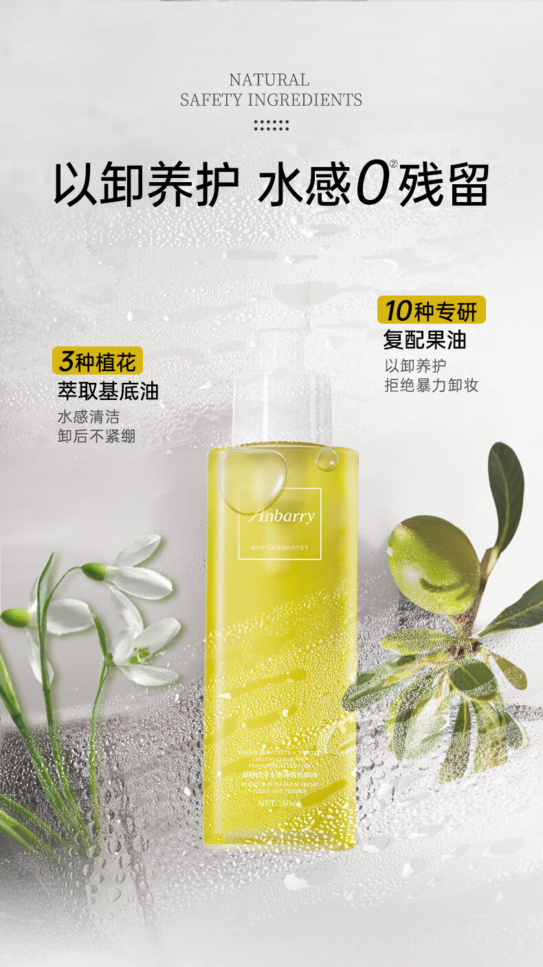 安蓓芮(ANBARRY)卸妆油女官方正品卸妆水感深层清洁不残留面眼唇膏卸妆乳敏感肌肤 1瓶体验