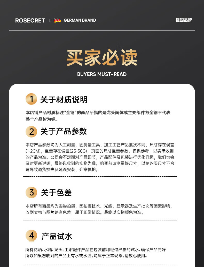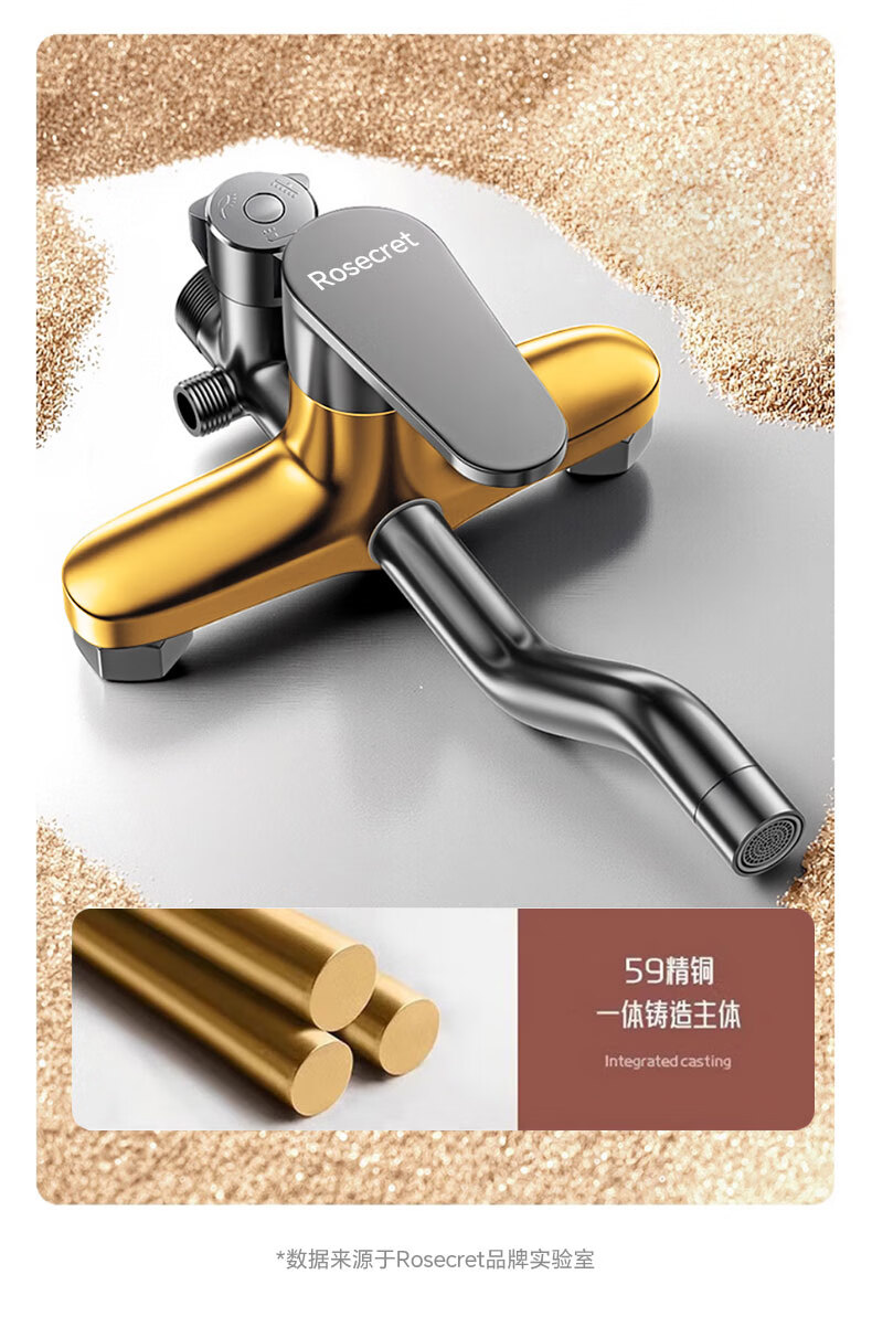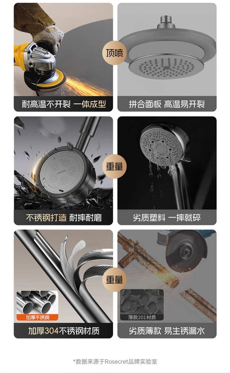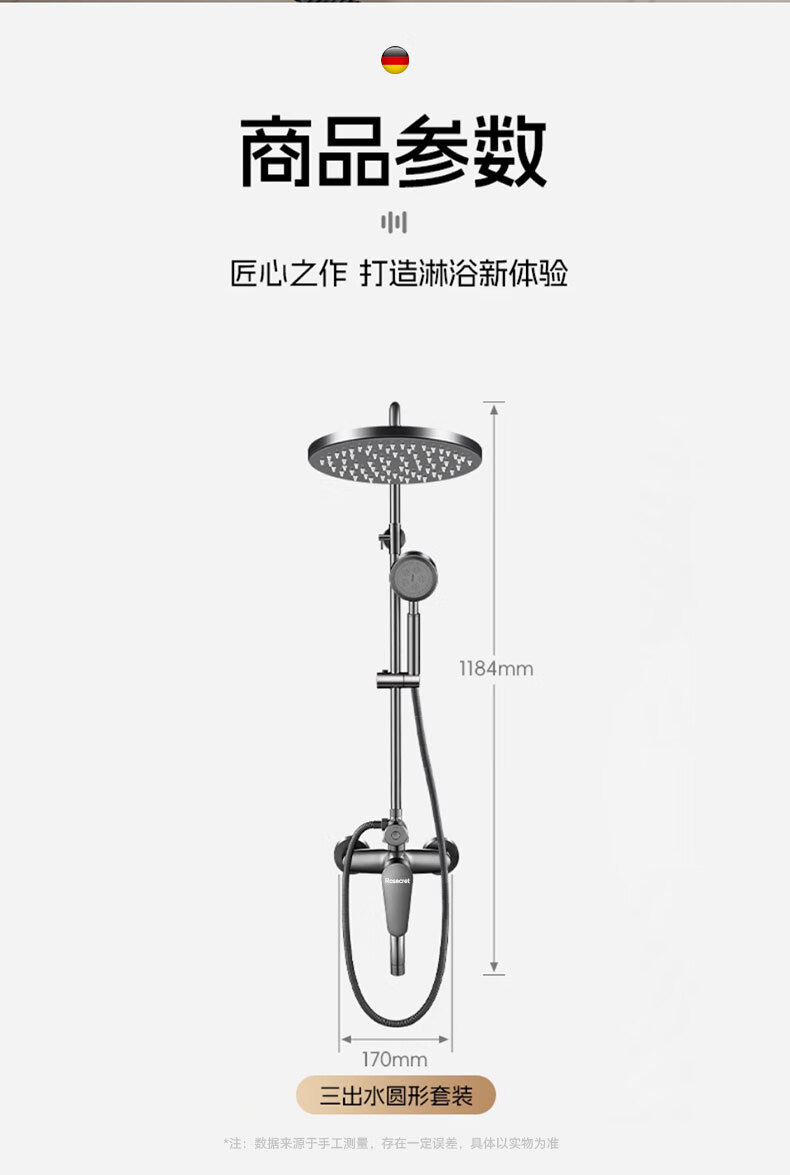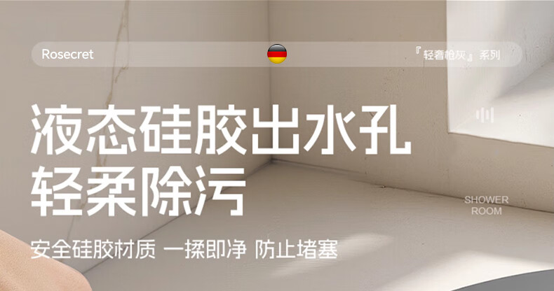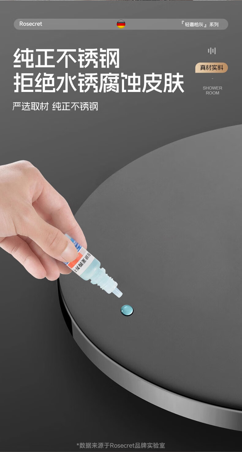 Rosecret【德国】全铜主体淋浴花洒套装家用卫生间洗澡带顶喷全套一整套装 三档混水阀+304手喷+巨幕顶喷【枪灰】 增压雨淋丨过滤净水丨配安装件包