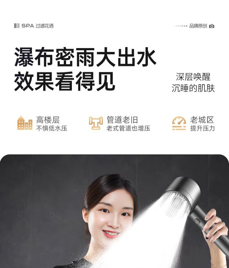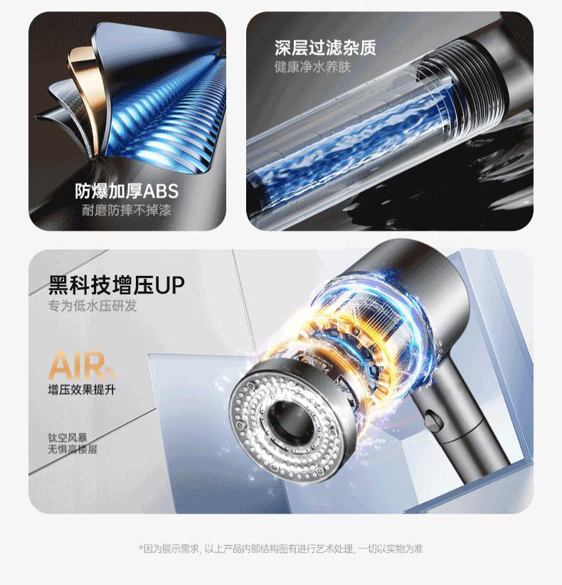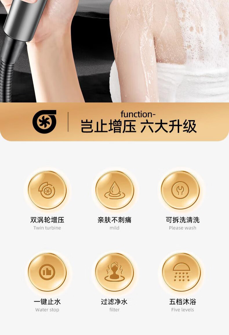 【甄选百货】通用淋浴花洒喷头增压大出水淋雨套装家用洗澡手持花 增压花洒【十年质保】 无规格