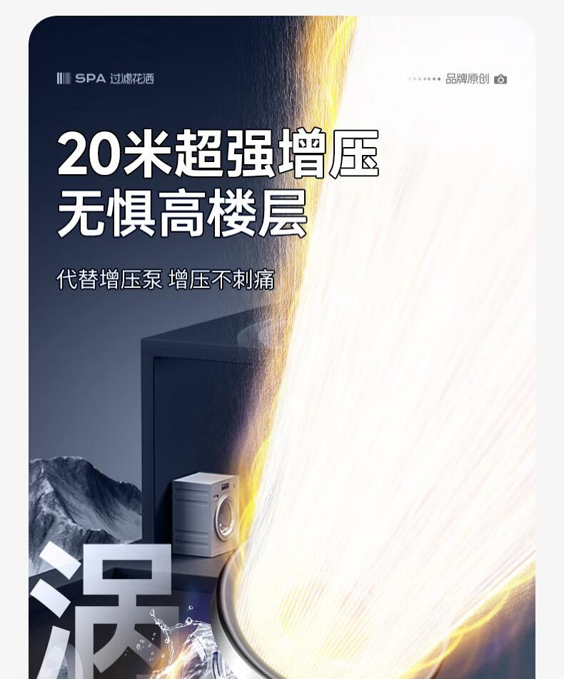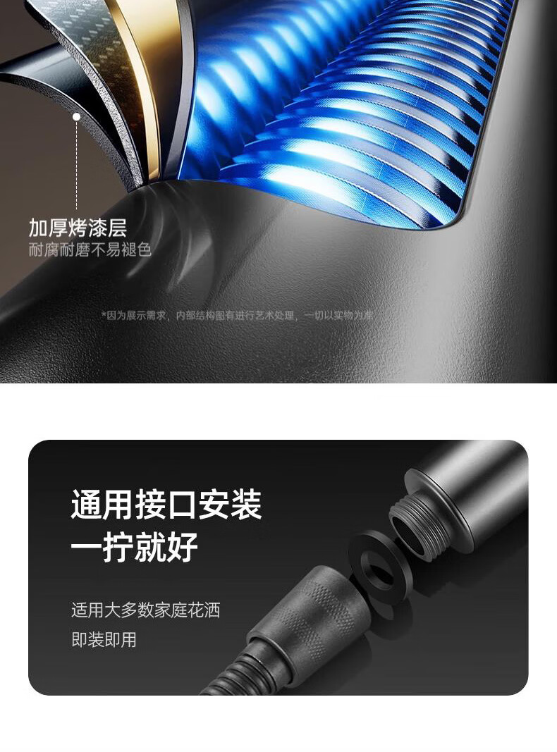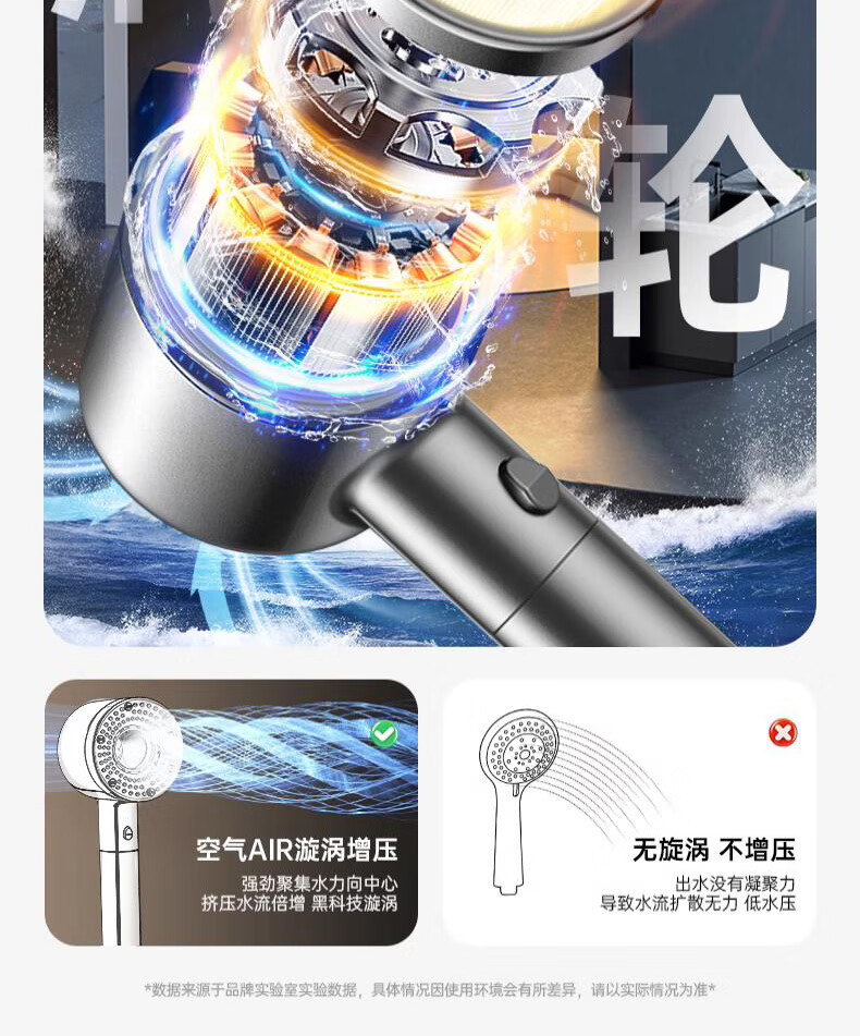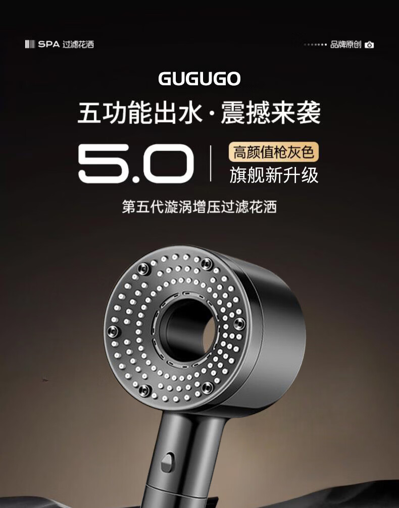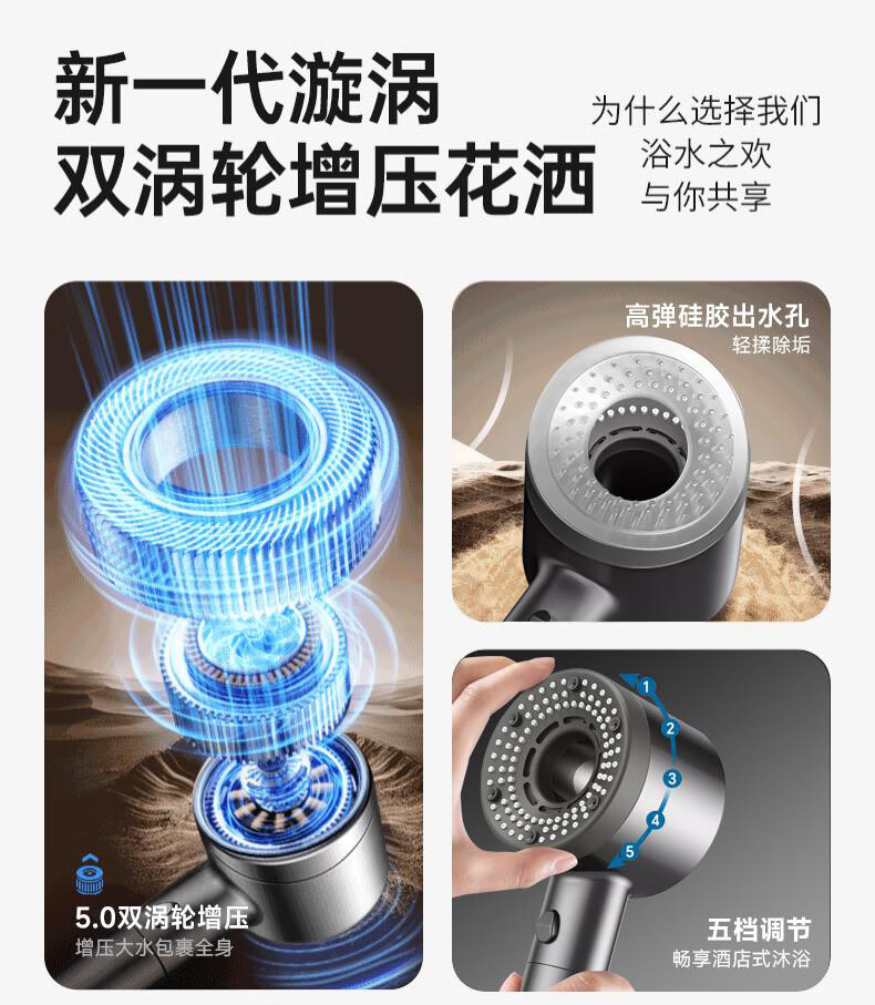 GuGuGo【德国】增压花洒淋浴喷头带软管一套多功能加压大面板手持莲蓬头 【涡轮增压】+1.5米花洒软管 升级大水款丨享spa级淋浴体验