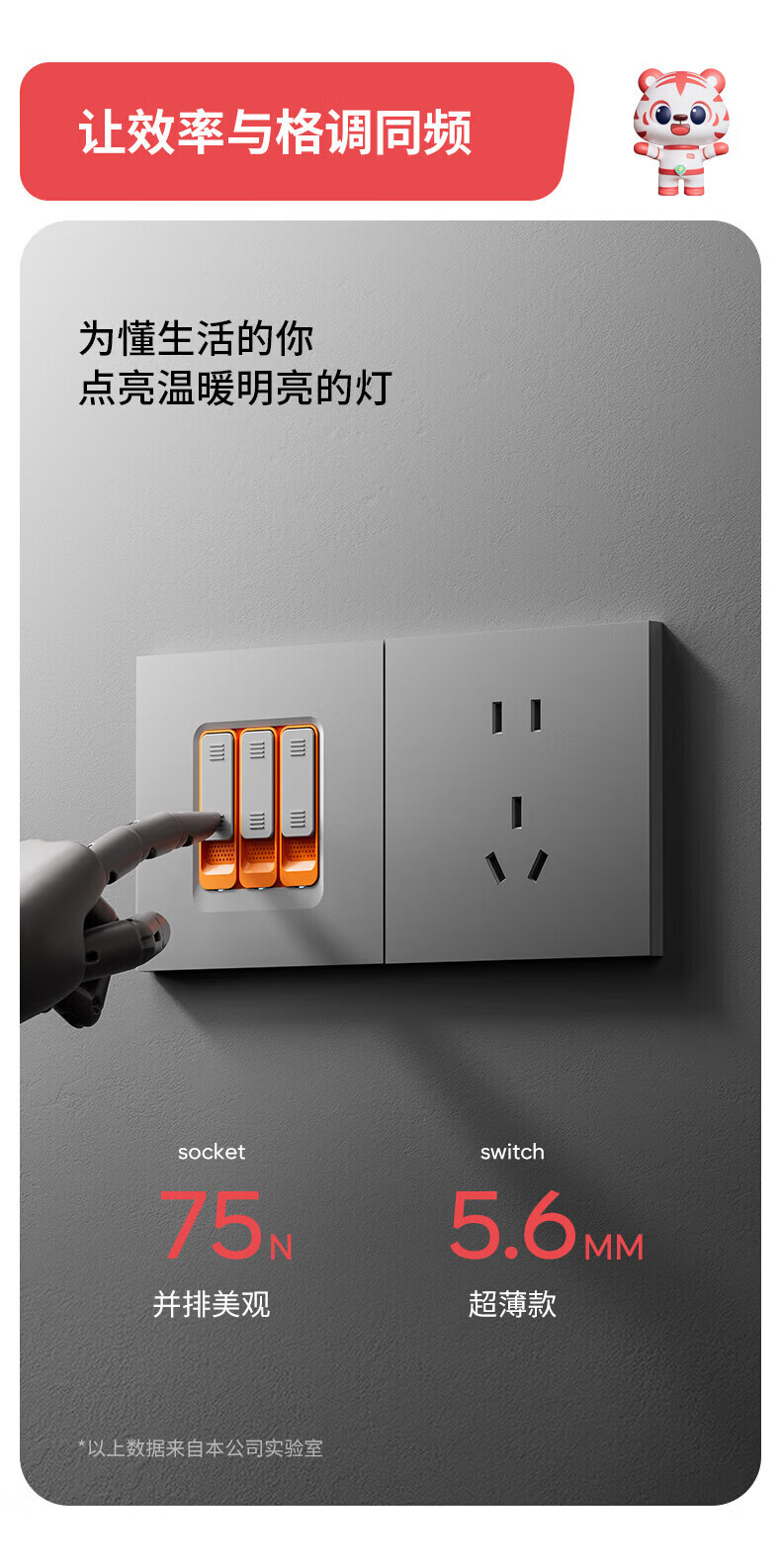 国际电工灰色哑光美学大板科技感自带灯智能滑动开关二开双控无框超薄面板 五孔插座-无框面板