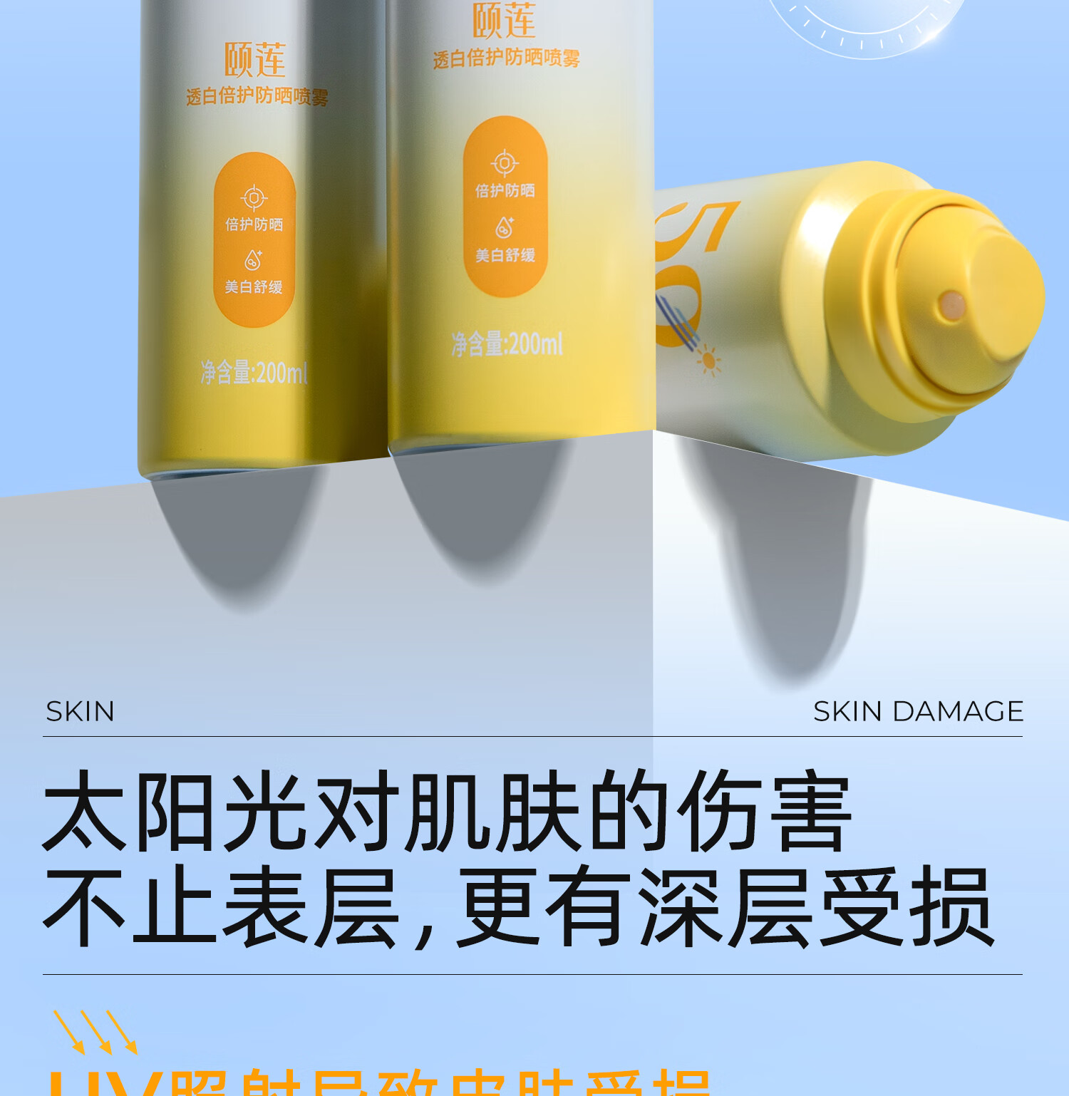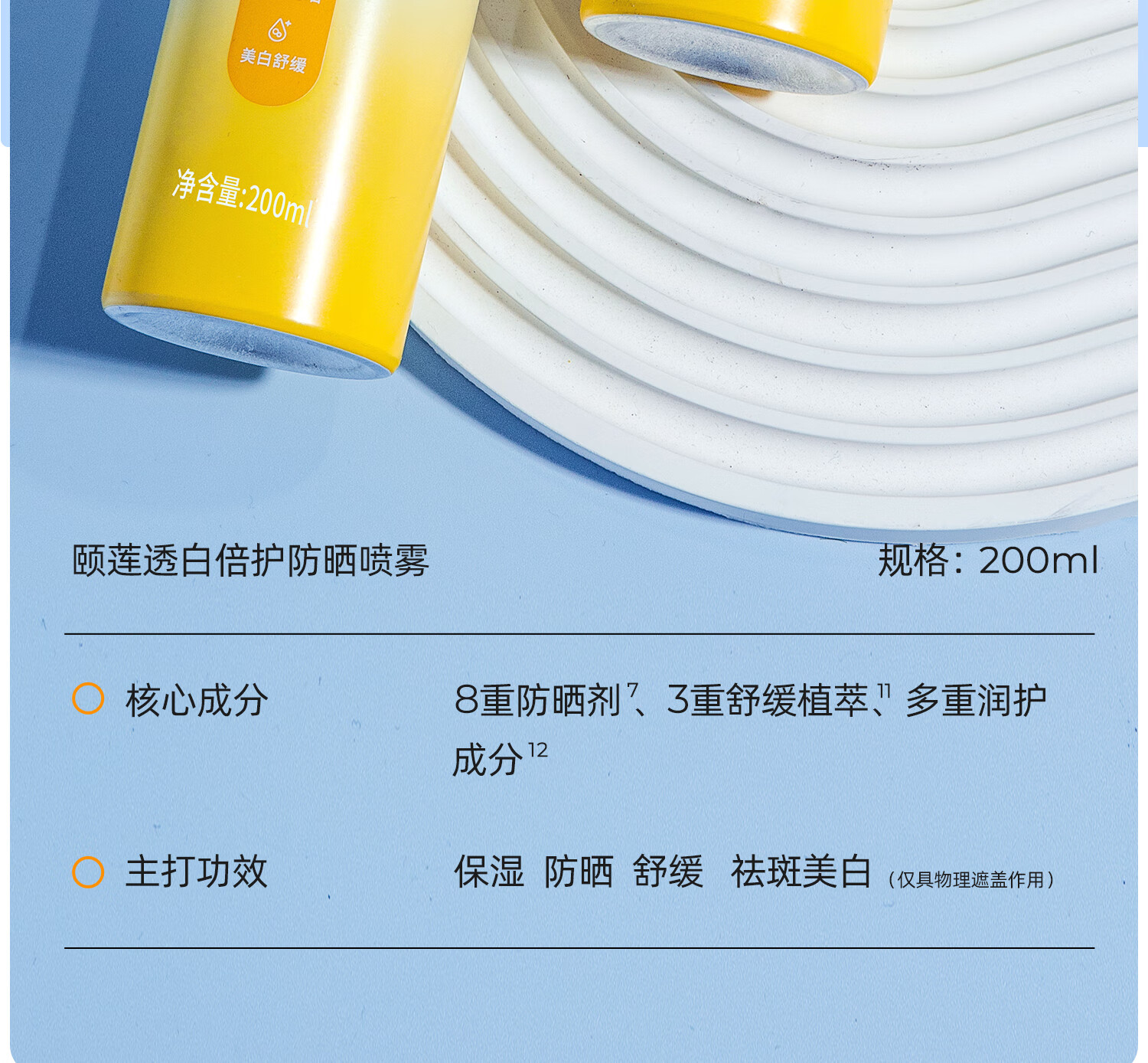 颐莲透白倍护防晒喷雾 200ml 高倍防晒 清凉不沾(27年1月到期) 3瓶