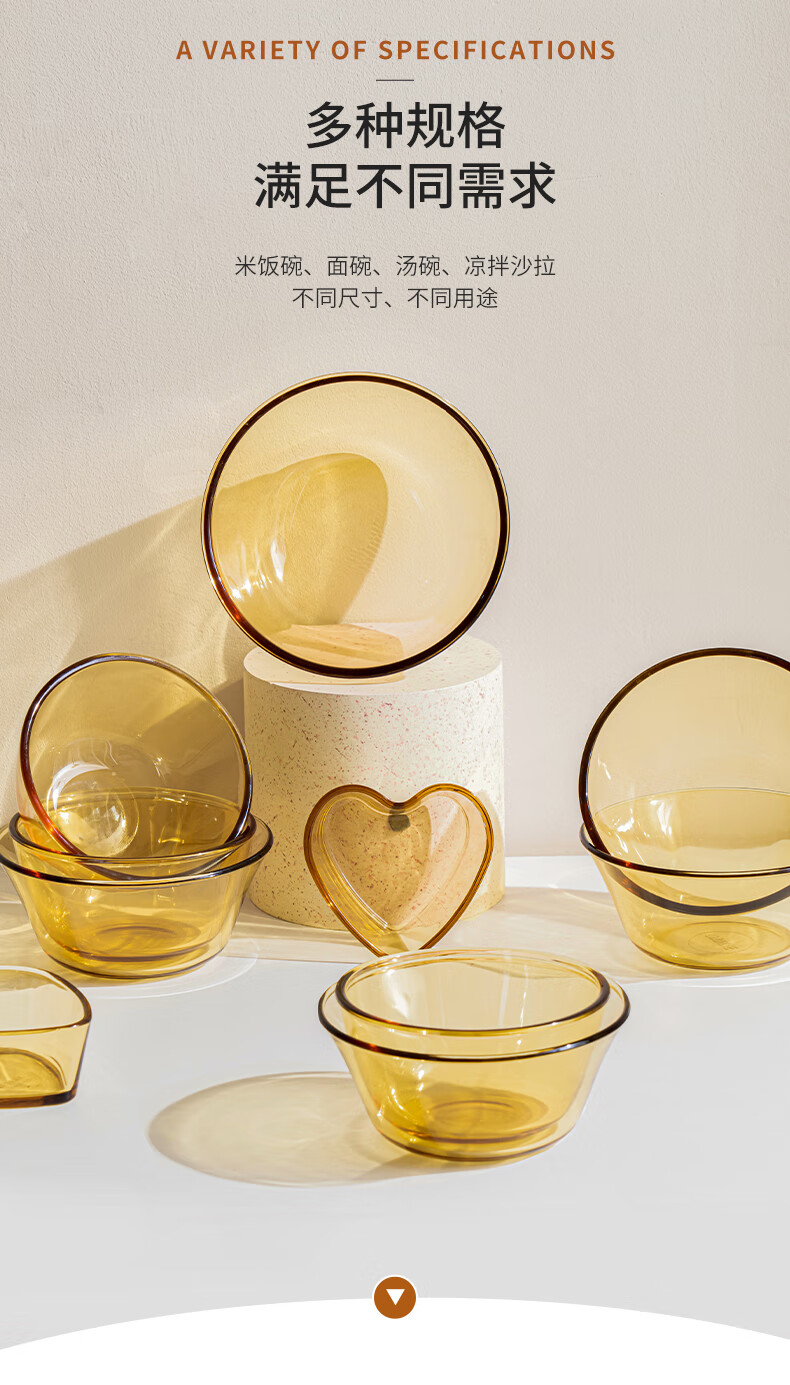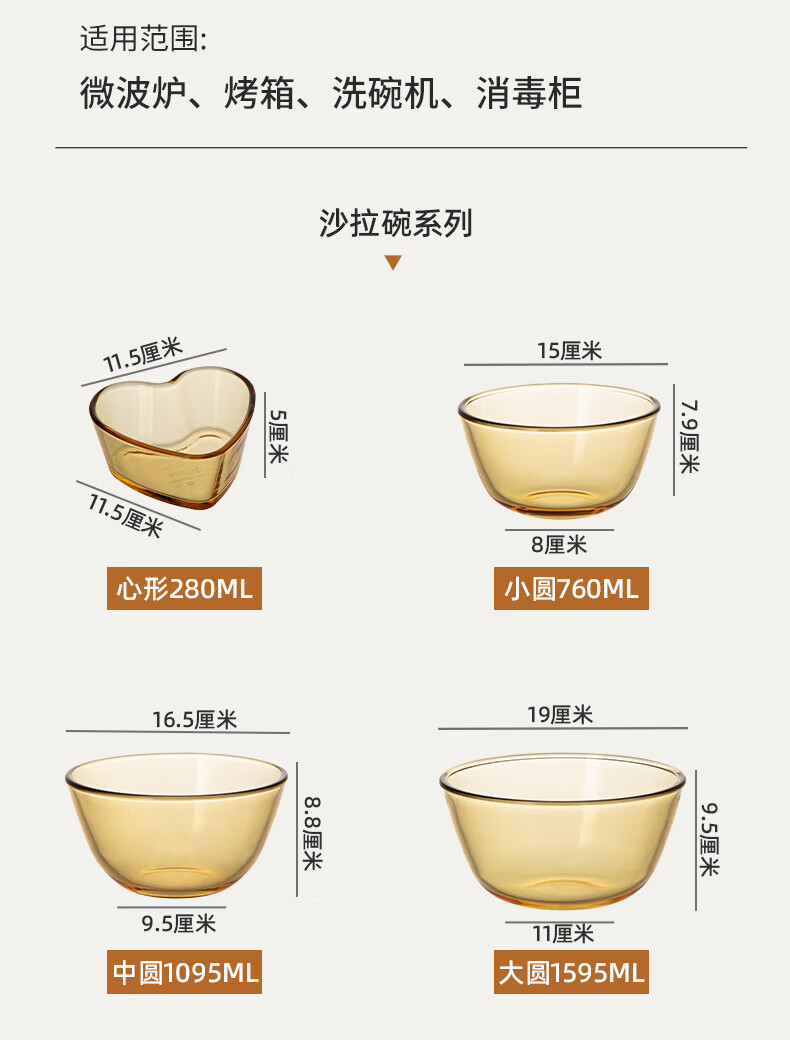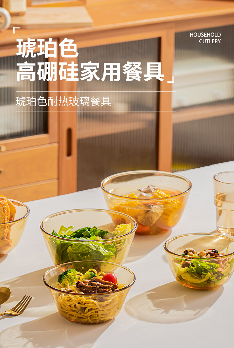 禧天龙高硼硅玻璃碗耐热玻璃沙拉水果汤碗加厚泡面碗和面玻璃盆 760ml+1095ml+1595ml【圆形3件套】