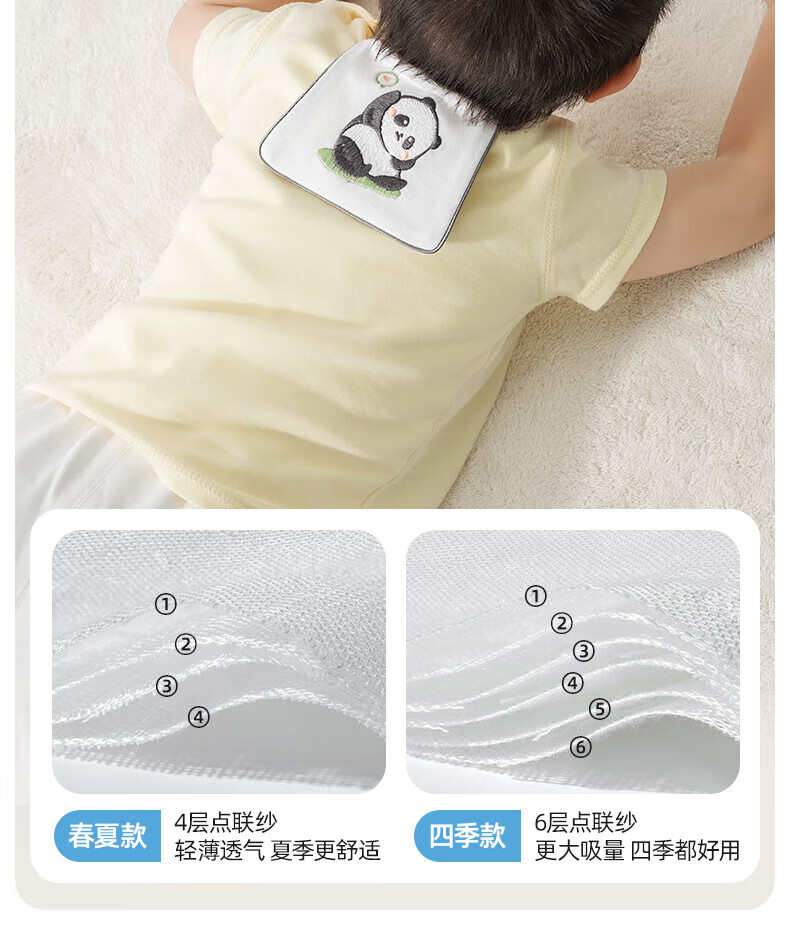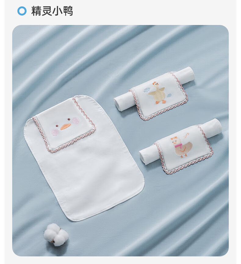 贝肽斯儿童吸汗巾婴幼儿a类纯棉幼儿园专用隔汗巾透气大号垫背巾 精灵小鸭 3条装 【轻薄4层-导湿排汗】 S码【28*19cm】建议0-1岁