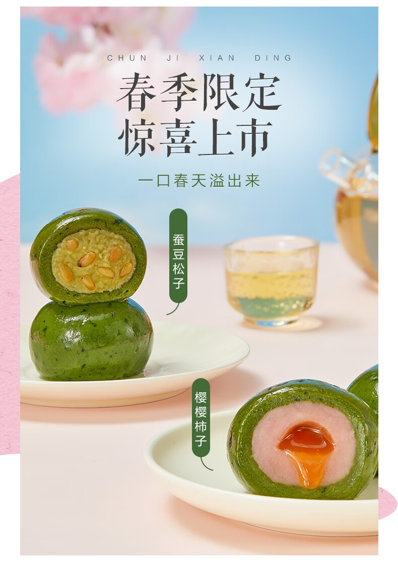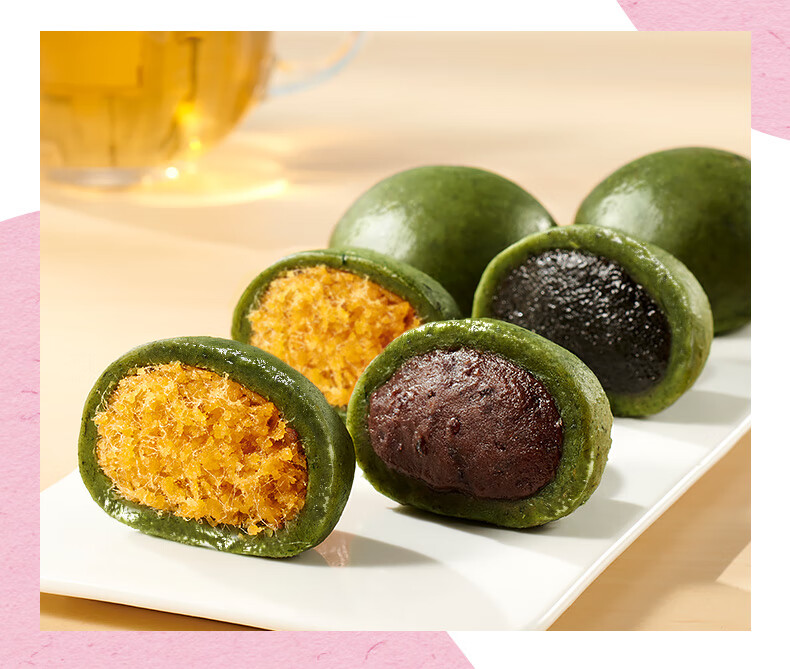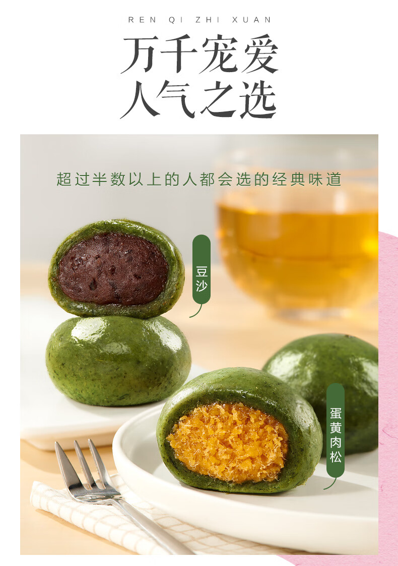 比比赞中式糕点组合多口味合解馋早餐代餐健康零食休闲食品小吃 【6枚】豆沙艾草青团