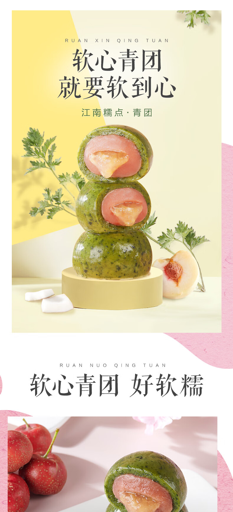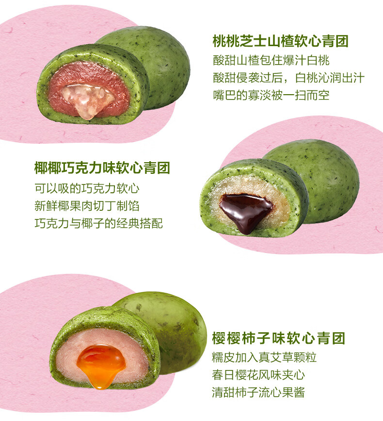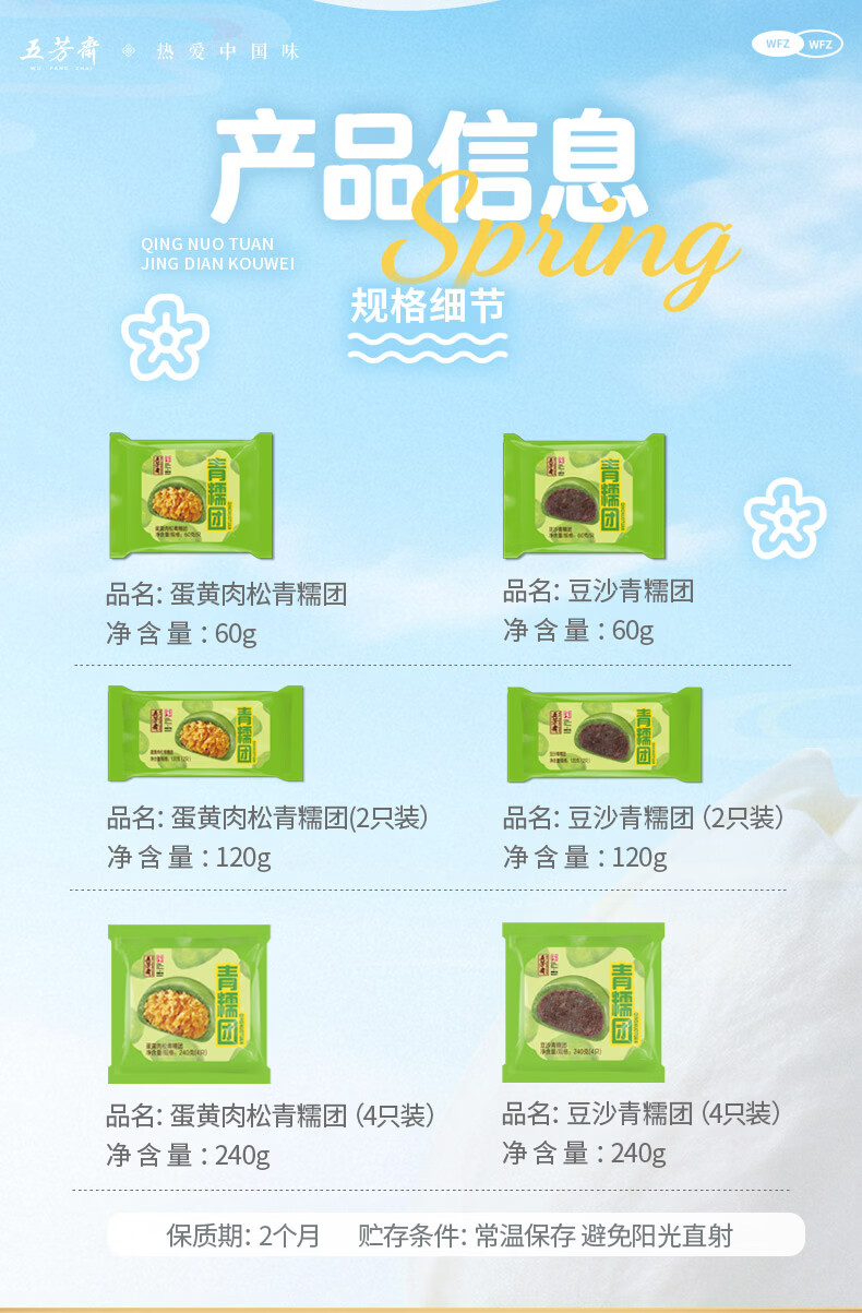 五芳斋中华老字号艾草青团 多口味清明果子糯米团子江南特产 60g*4只蛋黄肉松青糯团