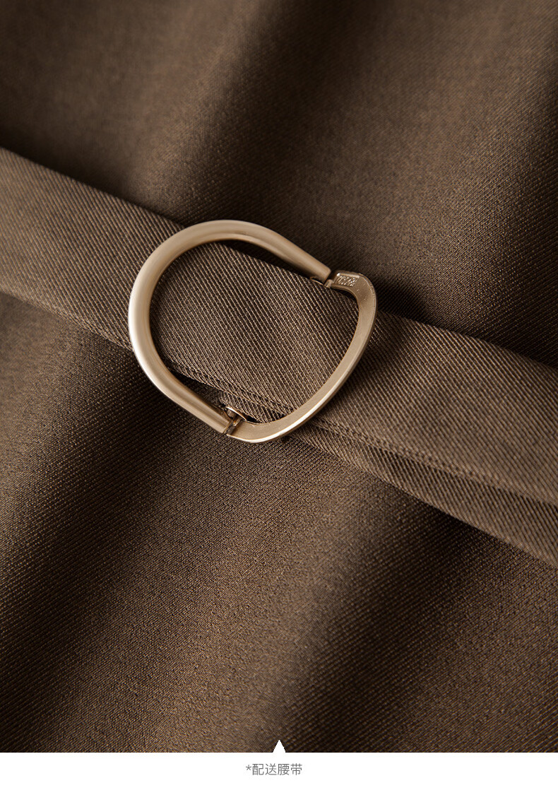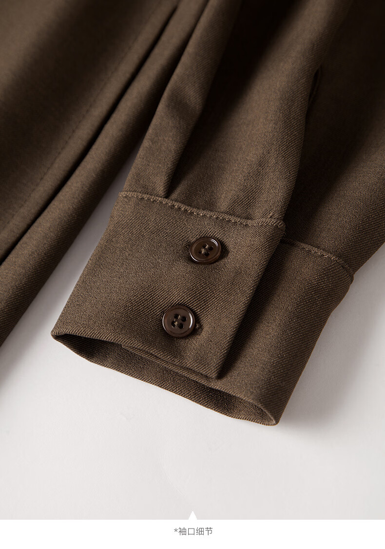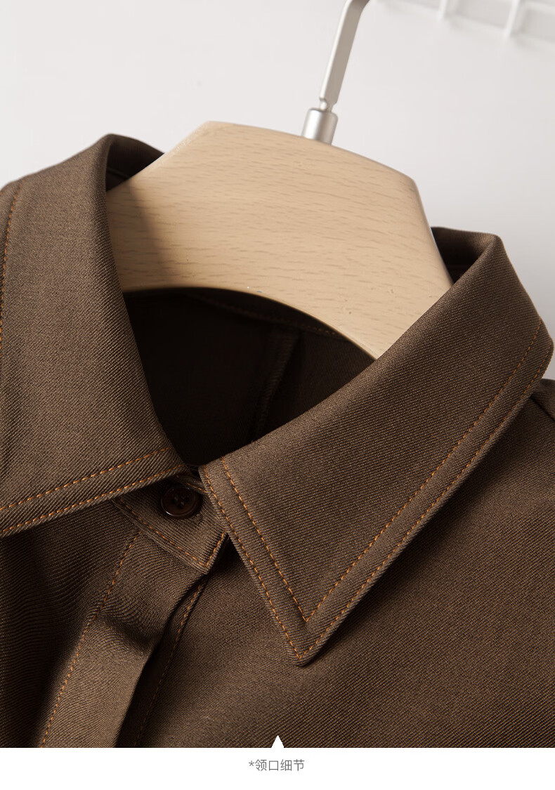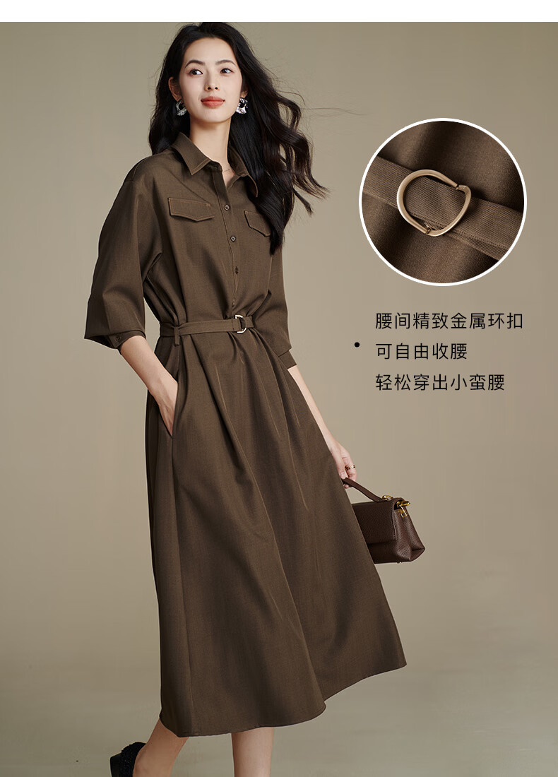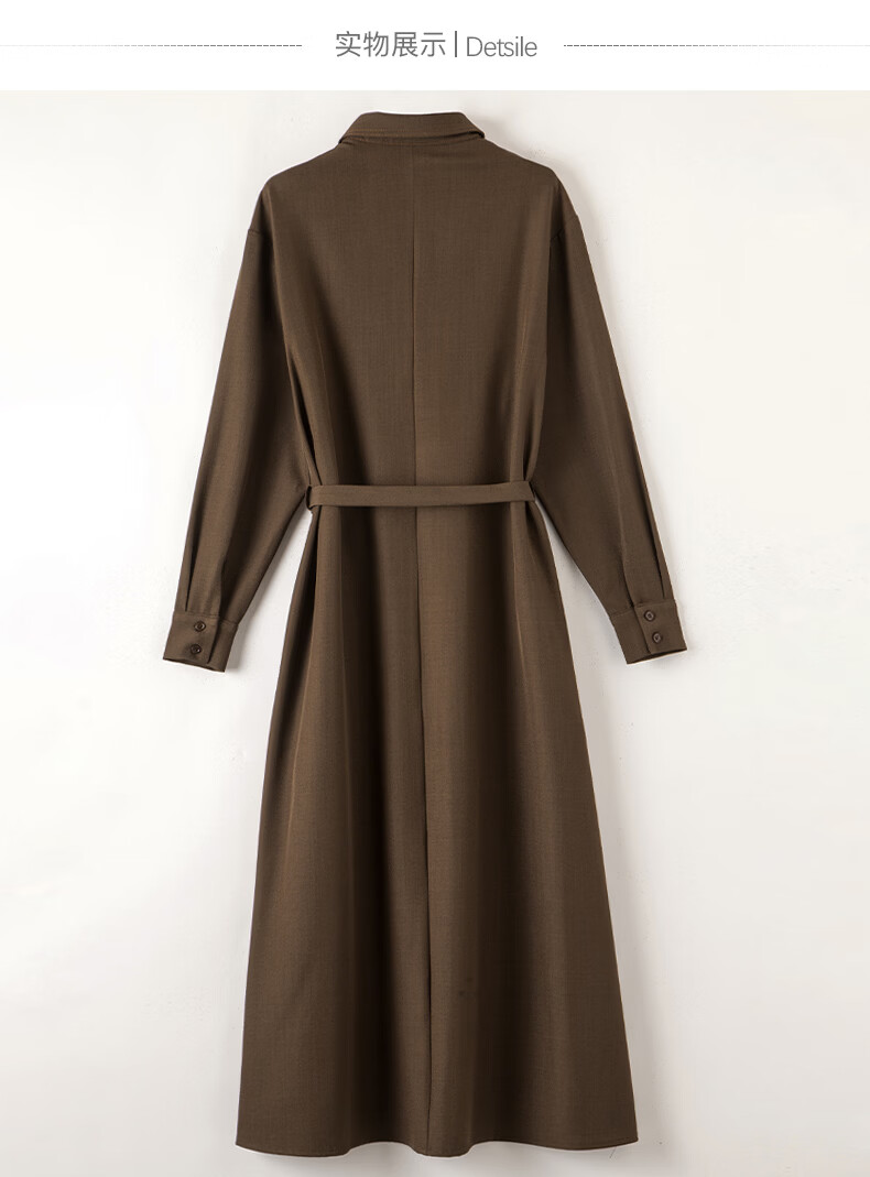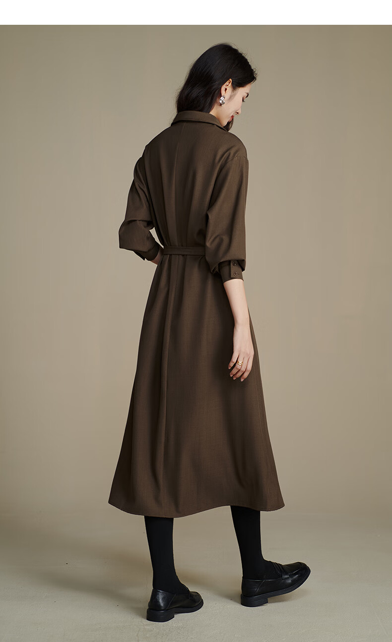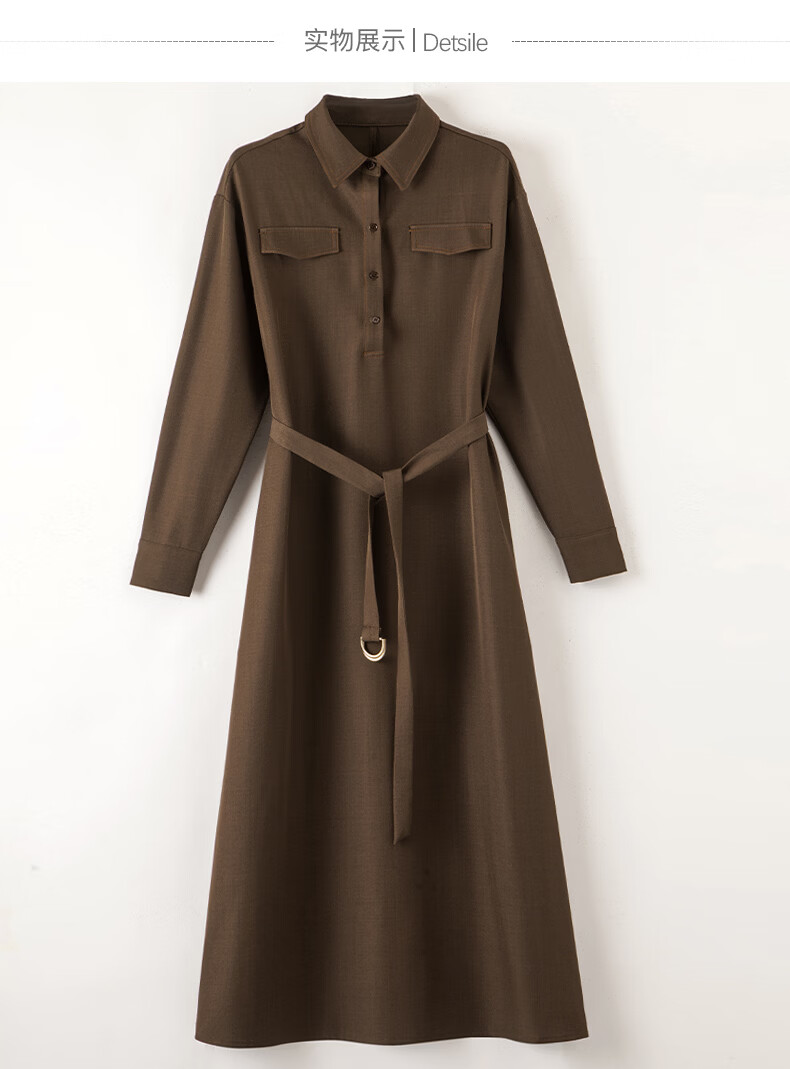 晚白【新品】2026春季收腰显瘦裙子优雅时尚百搭宽松大码长袖连衣裙 深咖色 L