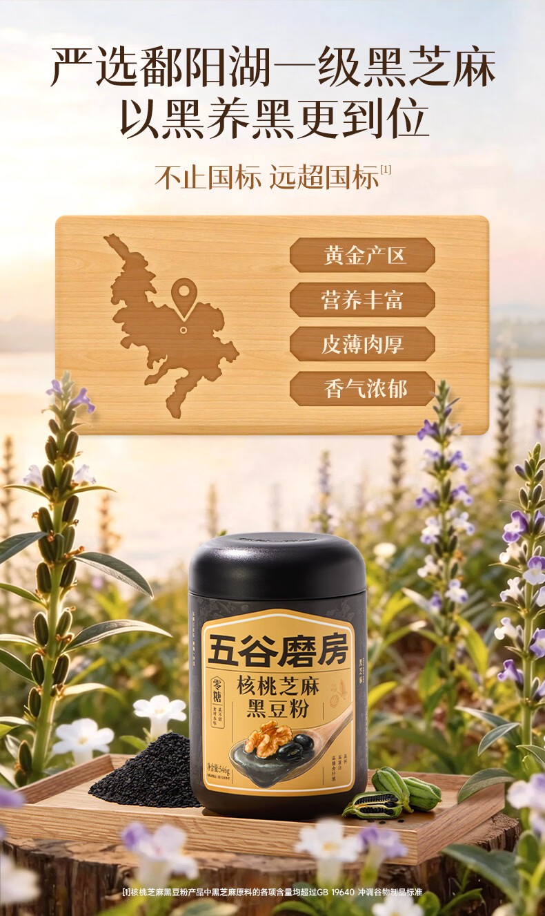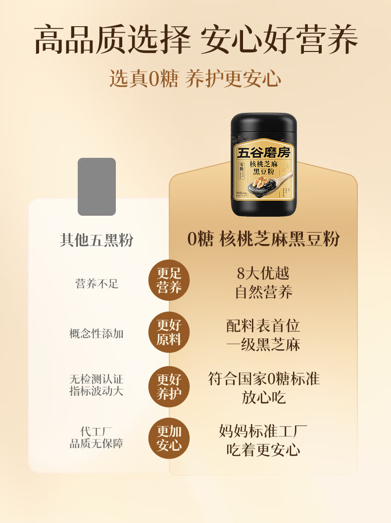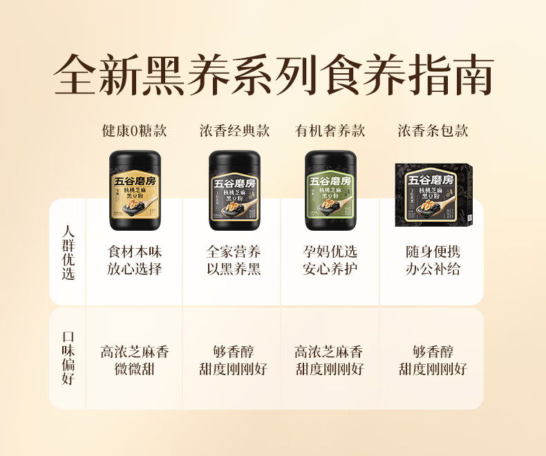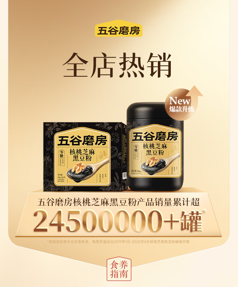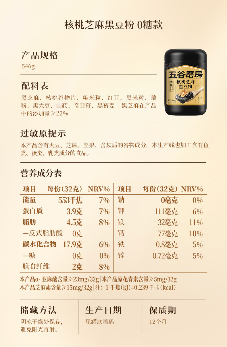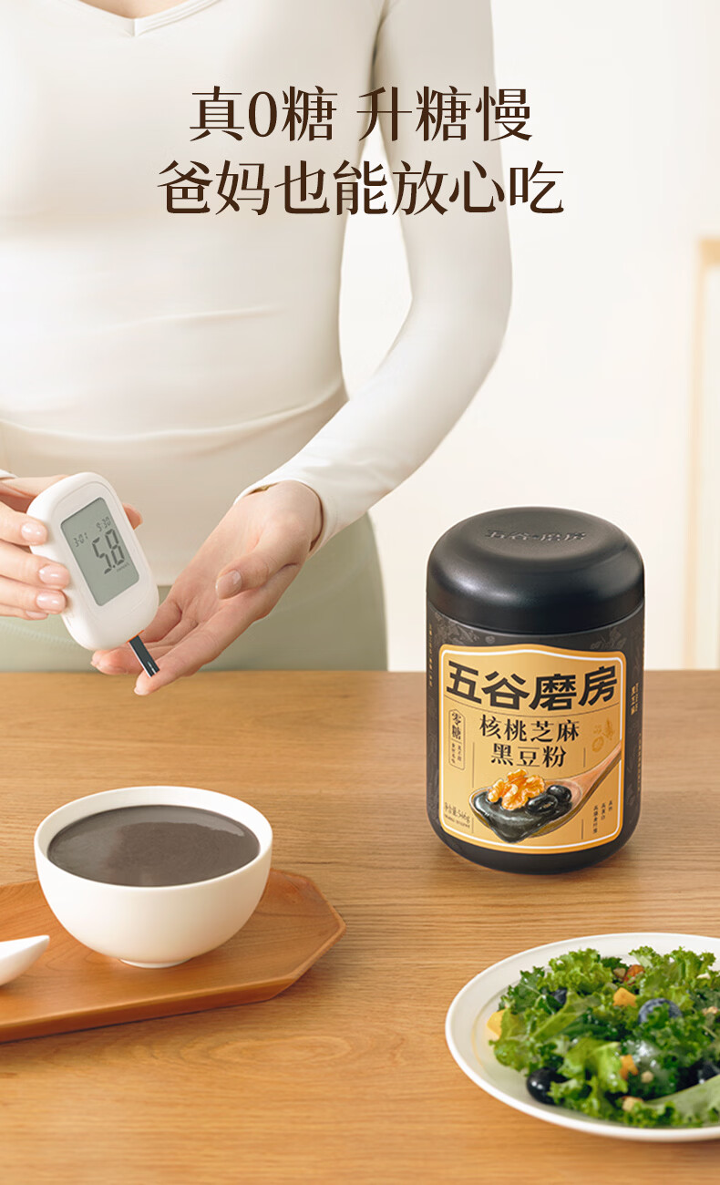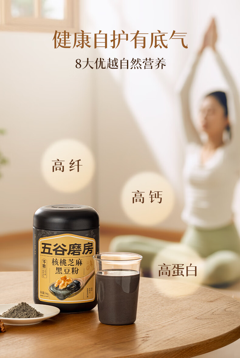 五谷磨房黑芝麻糊无糖核桃芝麻黑豆粉代餐粉546g