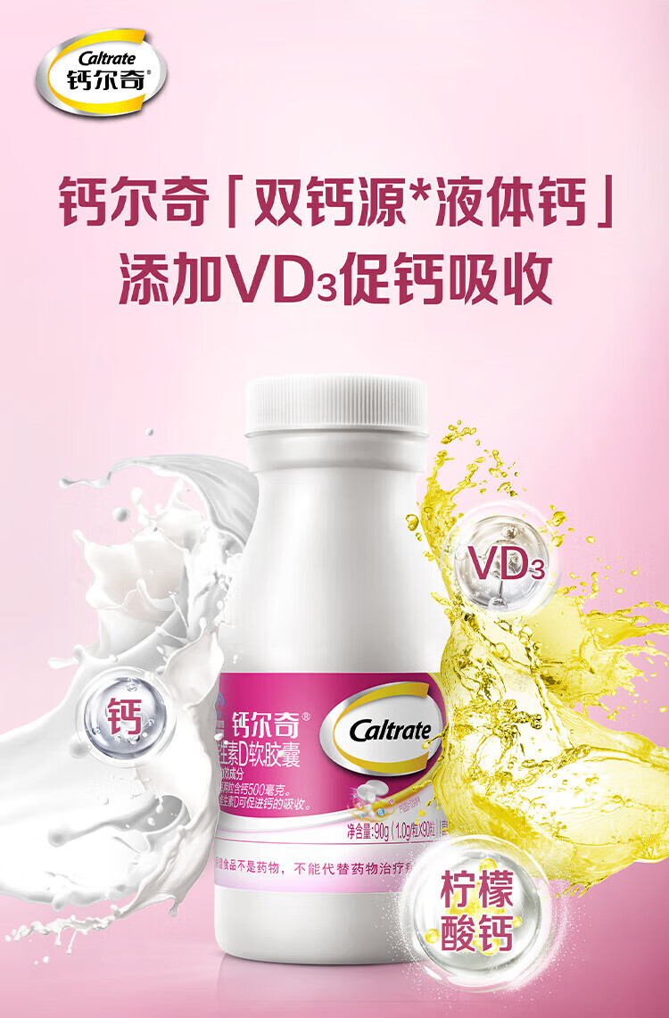 钙尔奇(Caltrate)钙片合集包含孕妇钙金钙液体钙女钙 【全家适用】液体钙90粒*3瓶