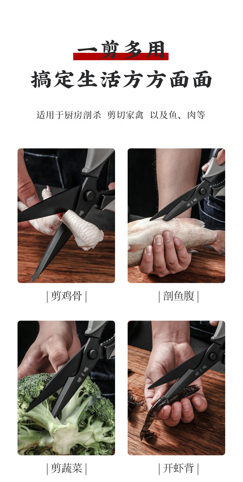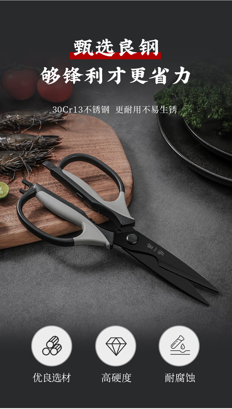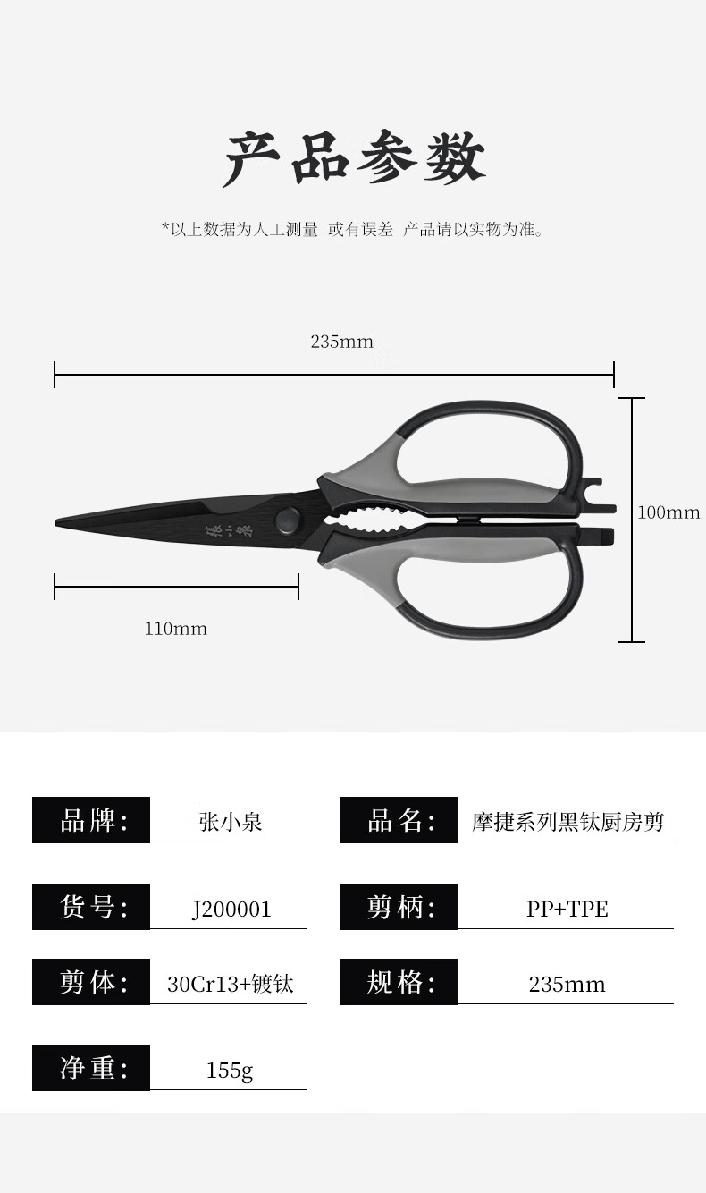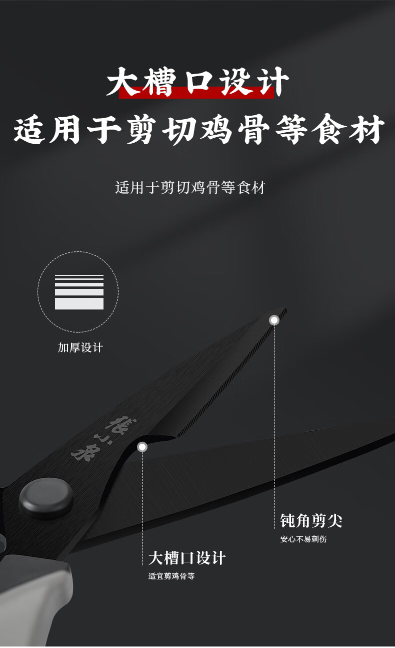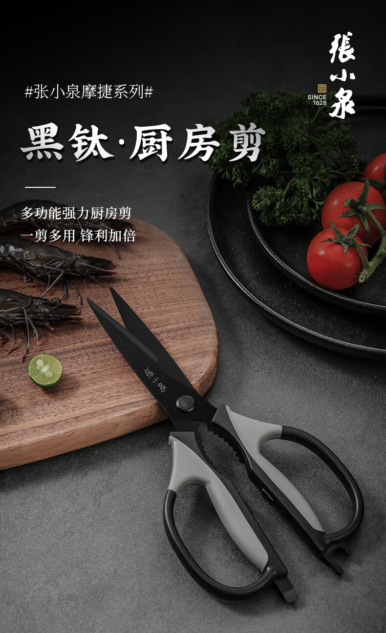 张小泉厨房钛剪刀不锈钢多功能剪刀夹核桃剪肉剪蔬菜烤肉剪 J200001