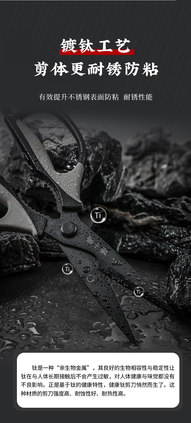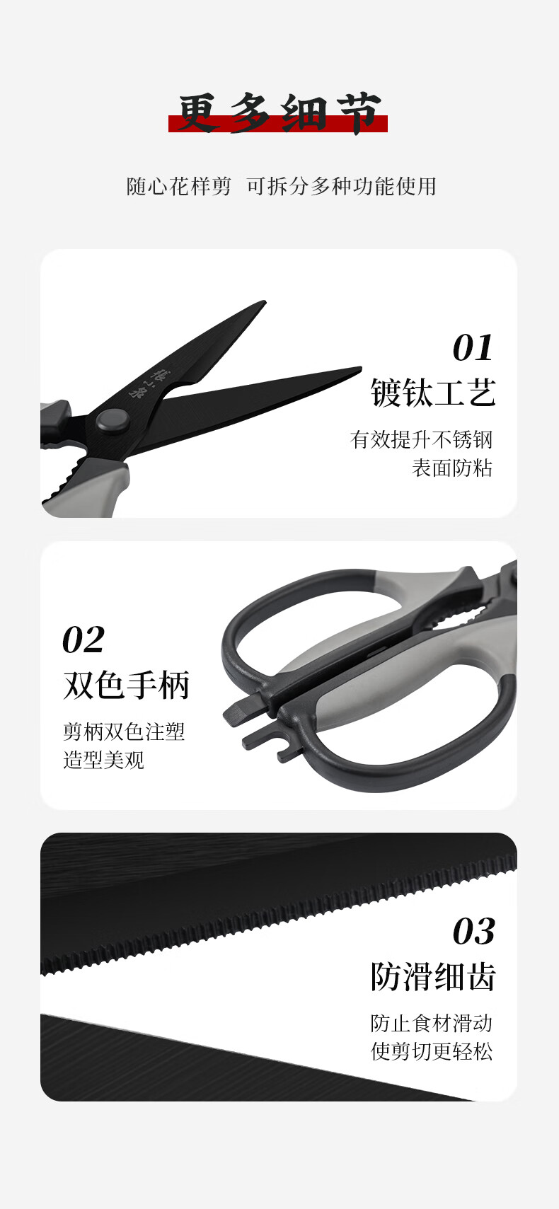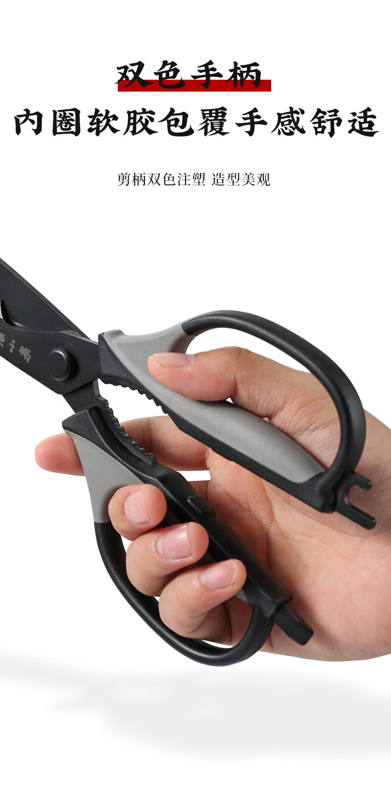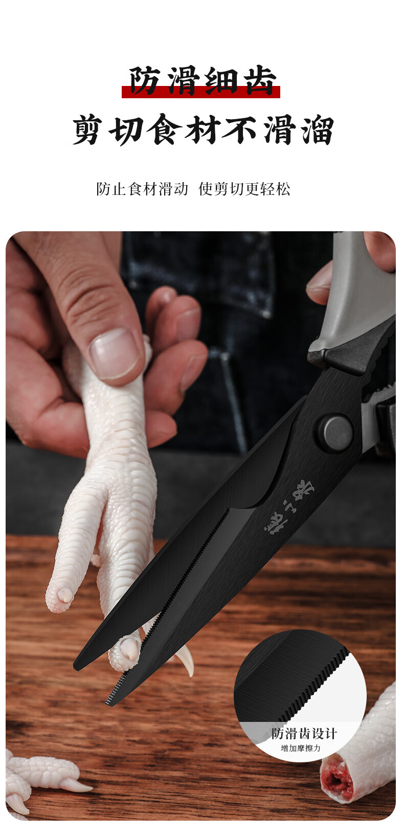 张小泉厨房钛剪刀不锈钢多功能剪刀夹核桃剪肉剪蔬菜烤肉剪 J200001