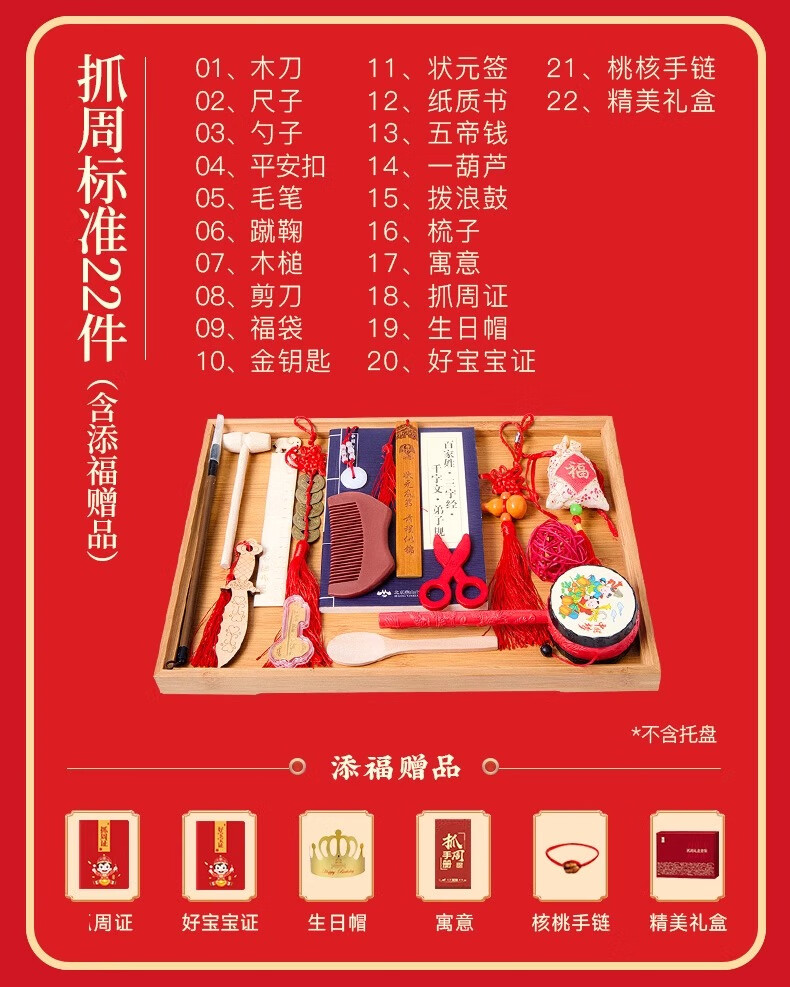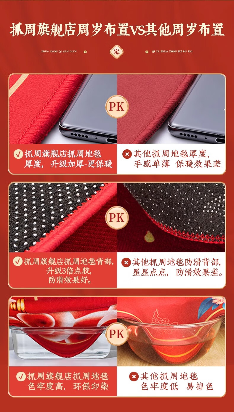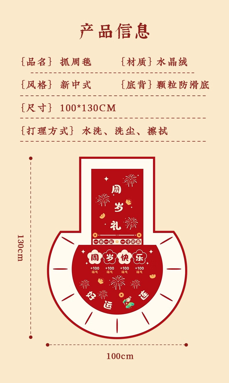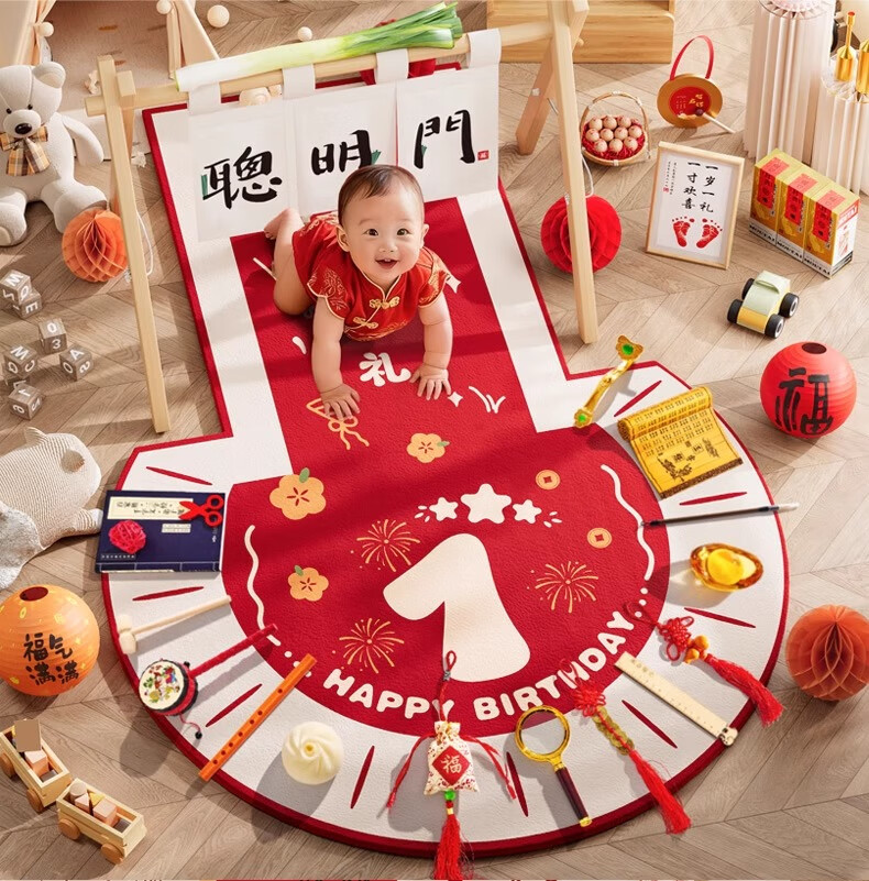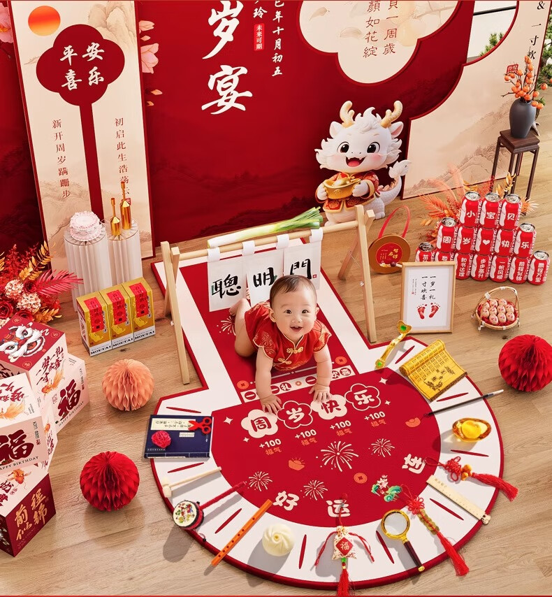 抓周道具用品一周岁中式装饰布置周岁抓阄T型毯全套摆件宝宝婴儿仪式1 1周岁T型毯