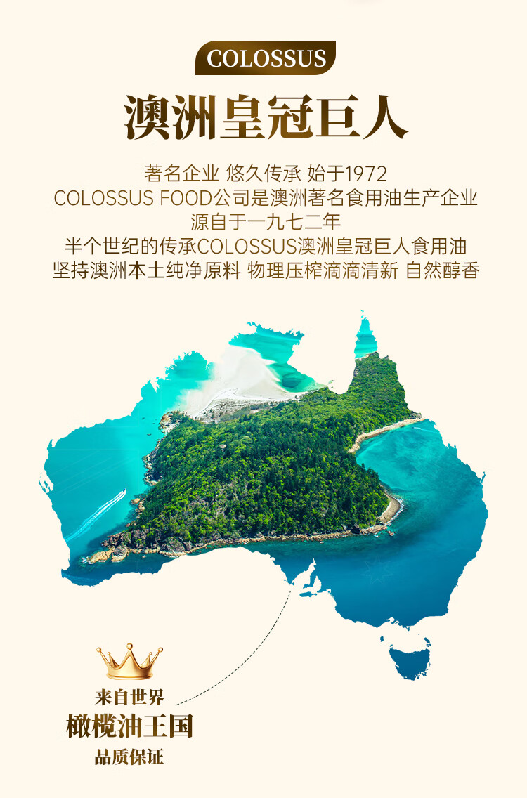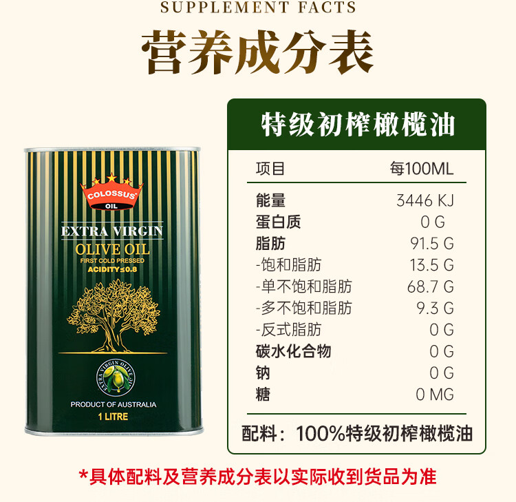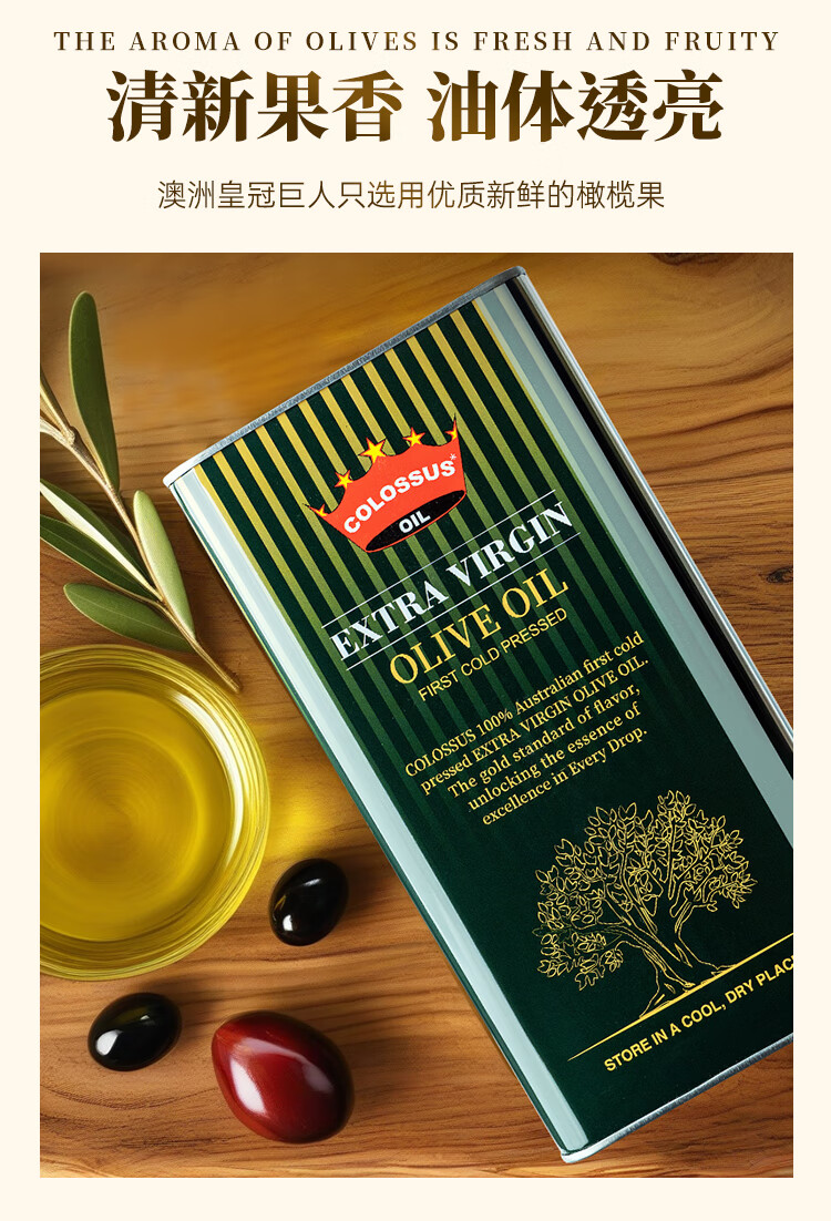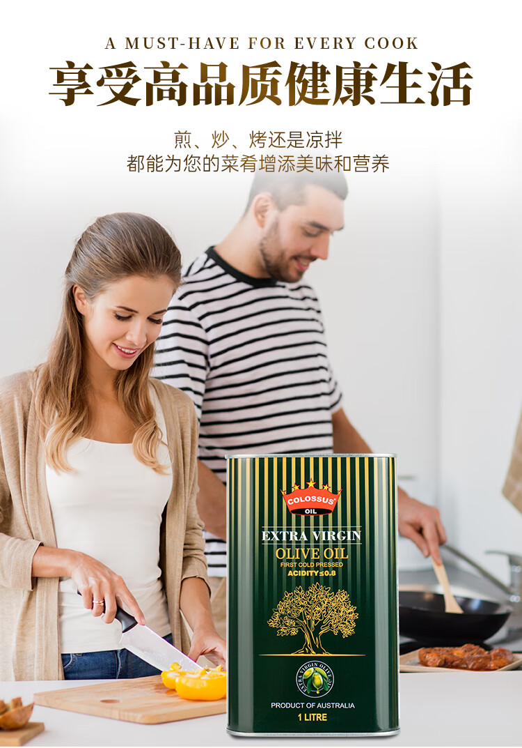 Colossus【保真橄榄油】特级初榨橄榄油 澳洲原瓶进口食用油 1升铁罐装