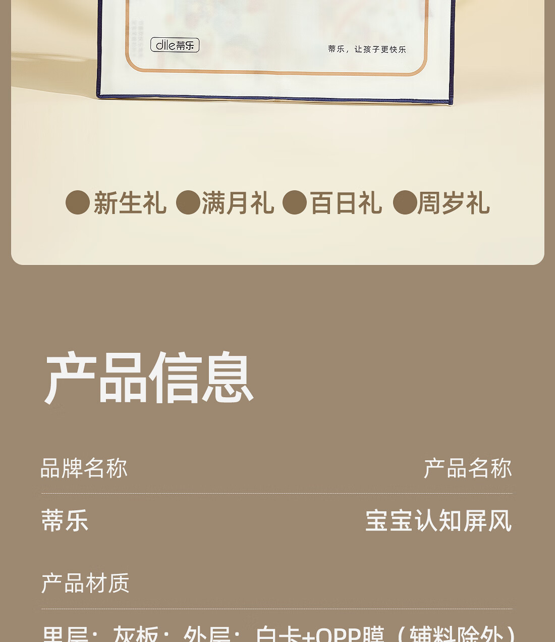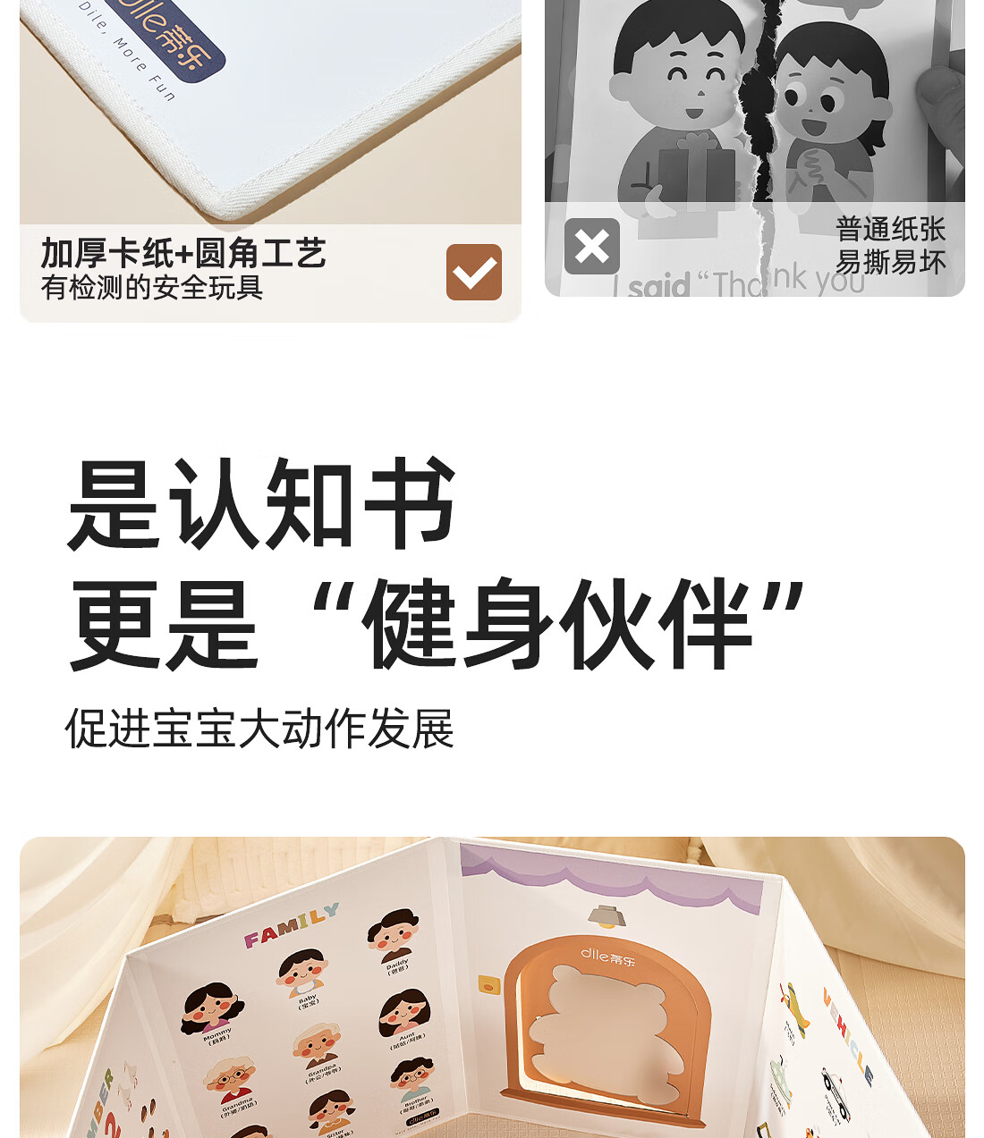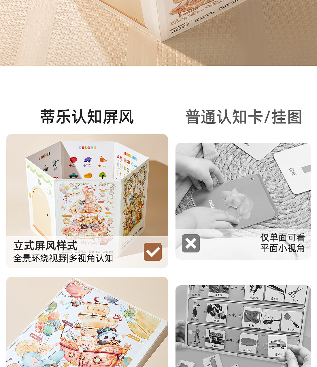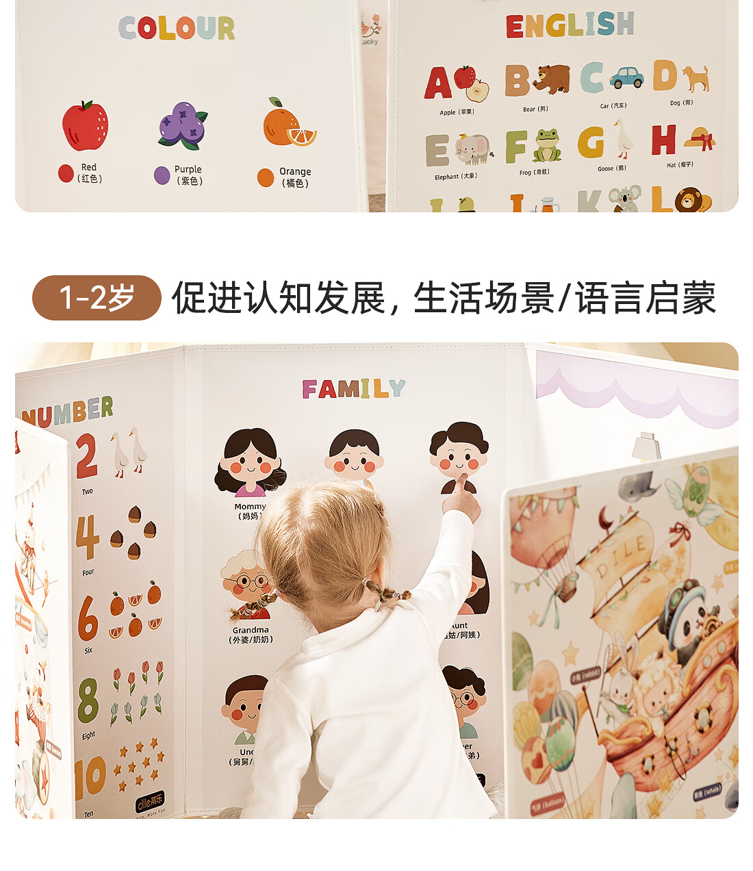 蒂乐宝宝认知屏风书蒙氏婴儿早教卡教具益智玩具新生儿见面周岁礼 认知屏风书【启蒙早教】高63cm长270cm