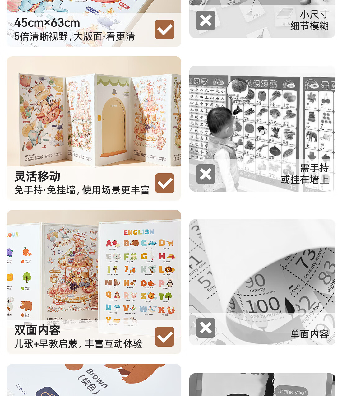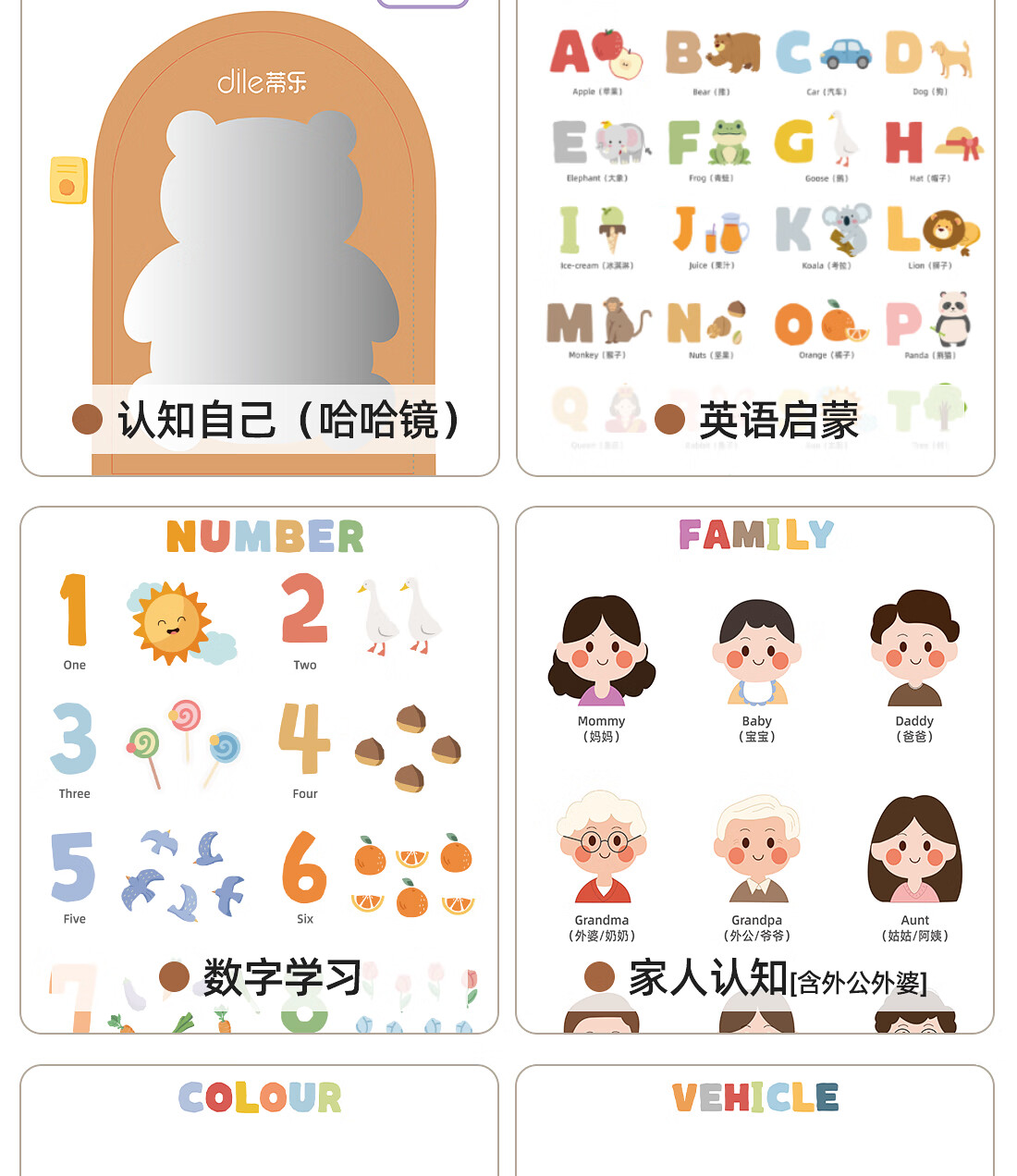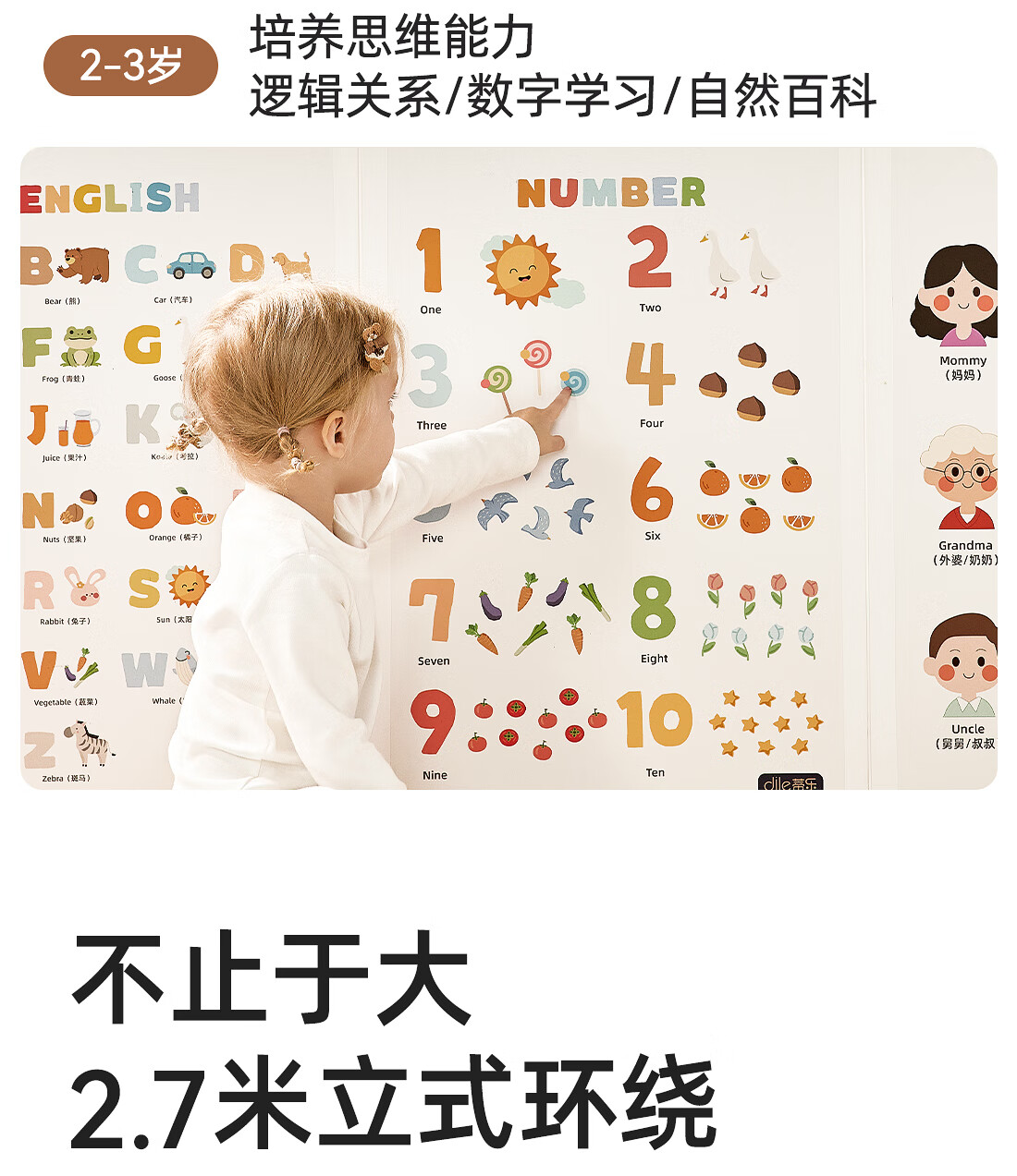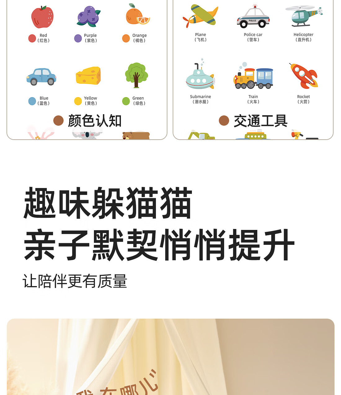 蒂乐宝宝认知屏风书蒙氏婴儿早教卡教具益智玩具新生儿见面周岁礼 认知屏风书【启蒙早教】高63cm长270cm