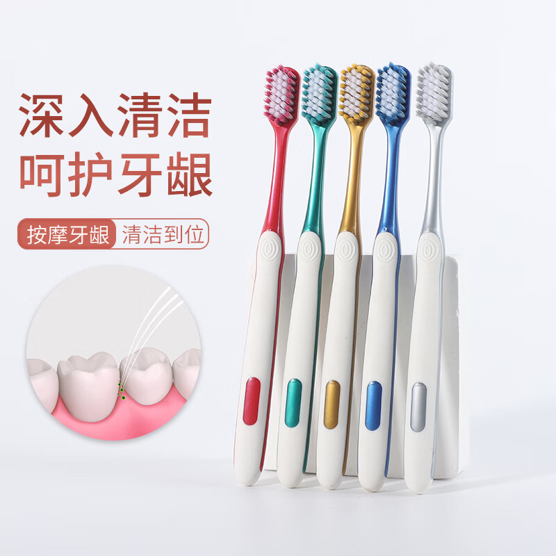 修洁成人软毛护龈牙刷家用情侣便携旅行款清洁牙缝高颜值牙刷男女 韩妮雅升级版成人罗马柱山型凸面软毛牙刷 5支