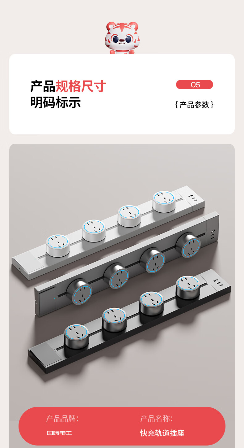 国际电工usb-c一体式可移动轨道插座带开关大五孔厨房岛台滑轨总电力导轨 灰色【带开关U+C一体式轨道插座】 30厘米+3个大五孔+U/C