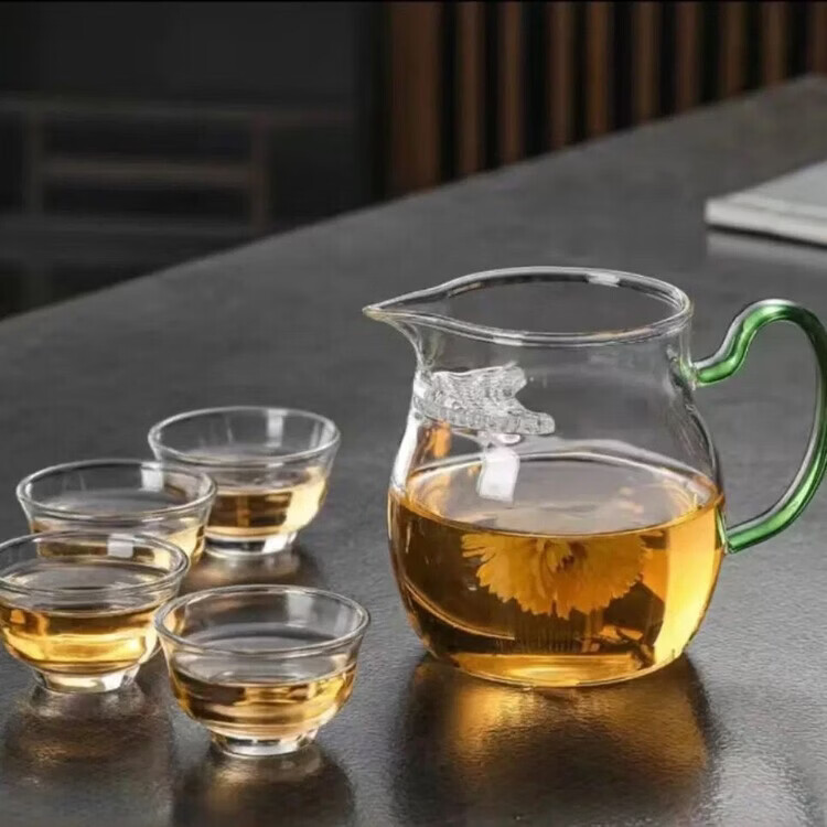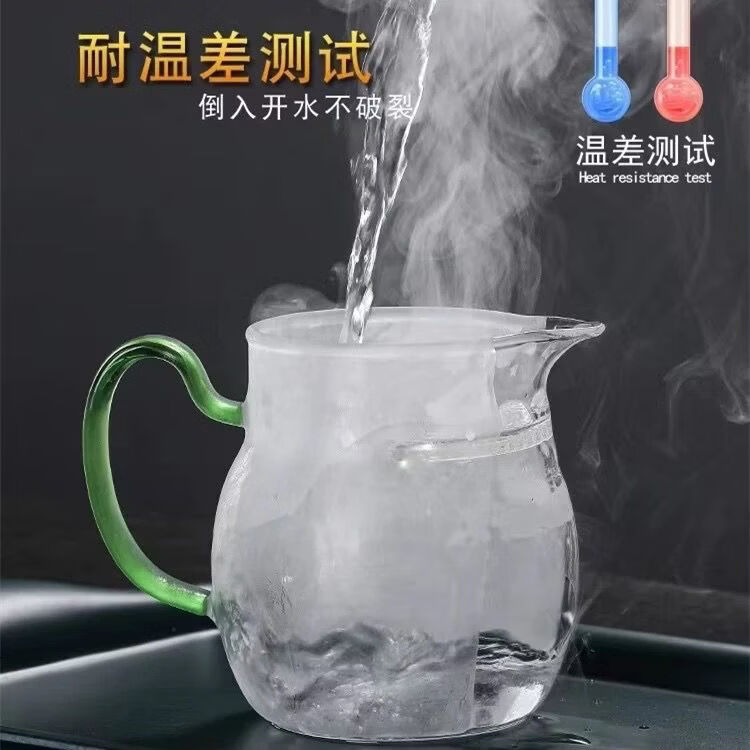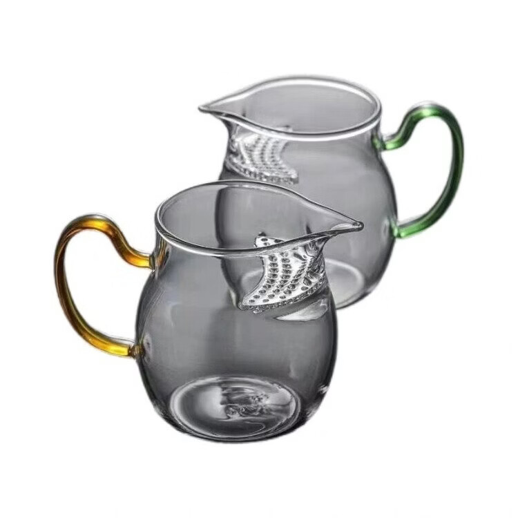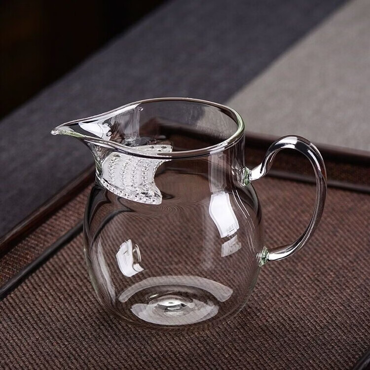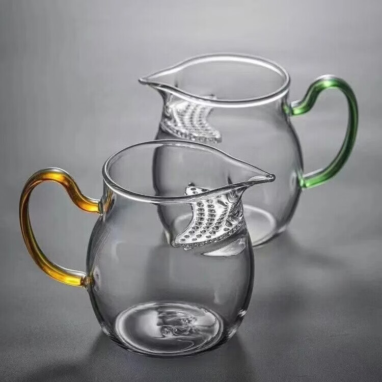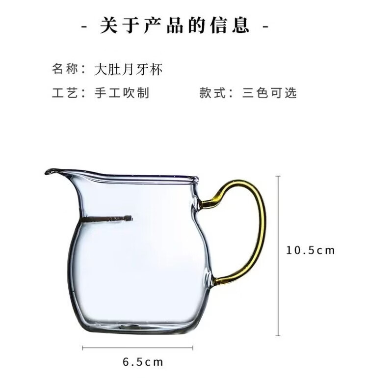 咏夏防爆加厚玻璃月牙公道杯茶漏一体大容量带滤网分茶器耐热泡茶杯 黄把月牙公杯380毫升