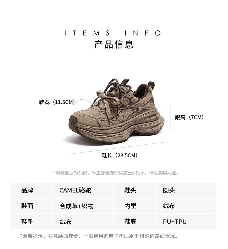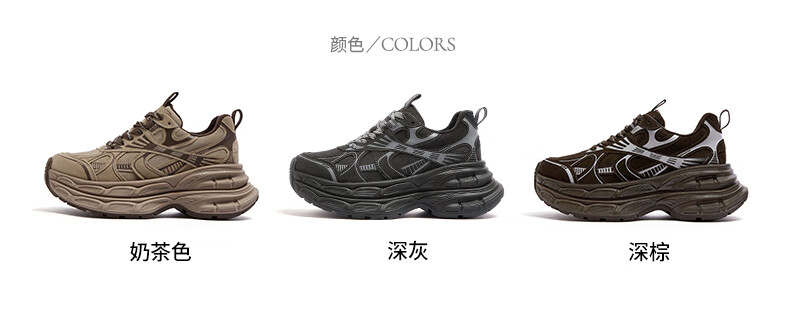 骆驼(CAMEL)老爹鞋男款银月舒适厚底增高休闲鞋 L24A283742AM 黑/银 42