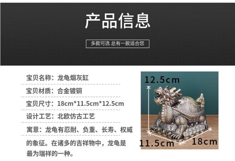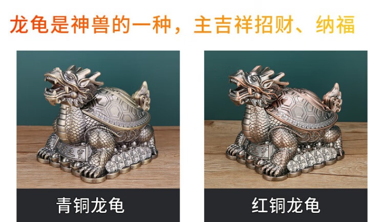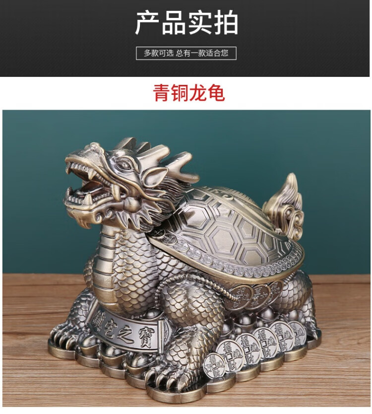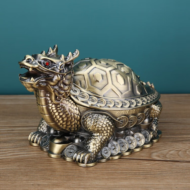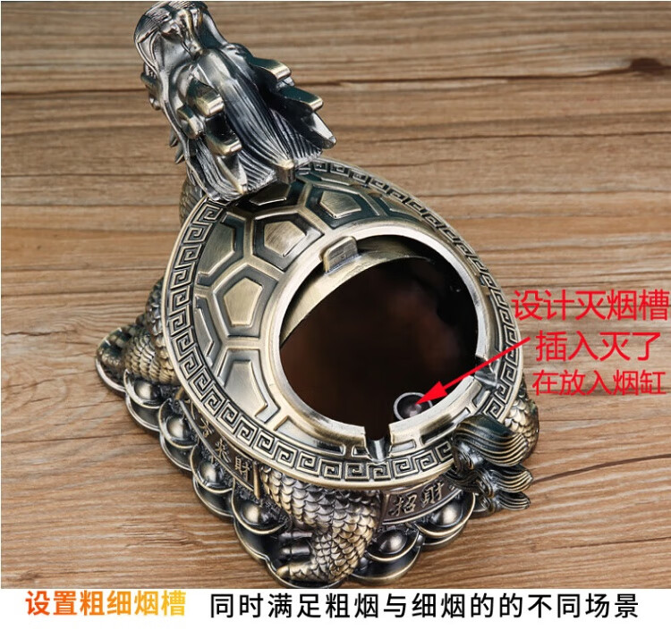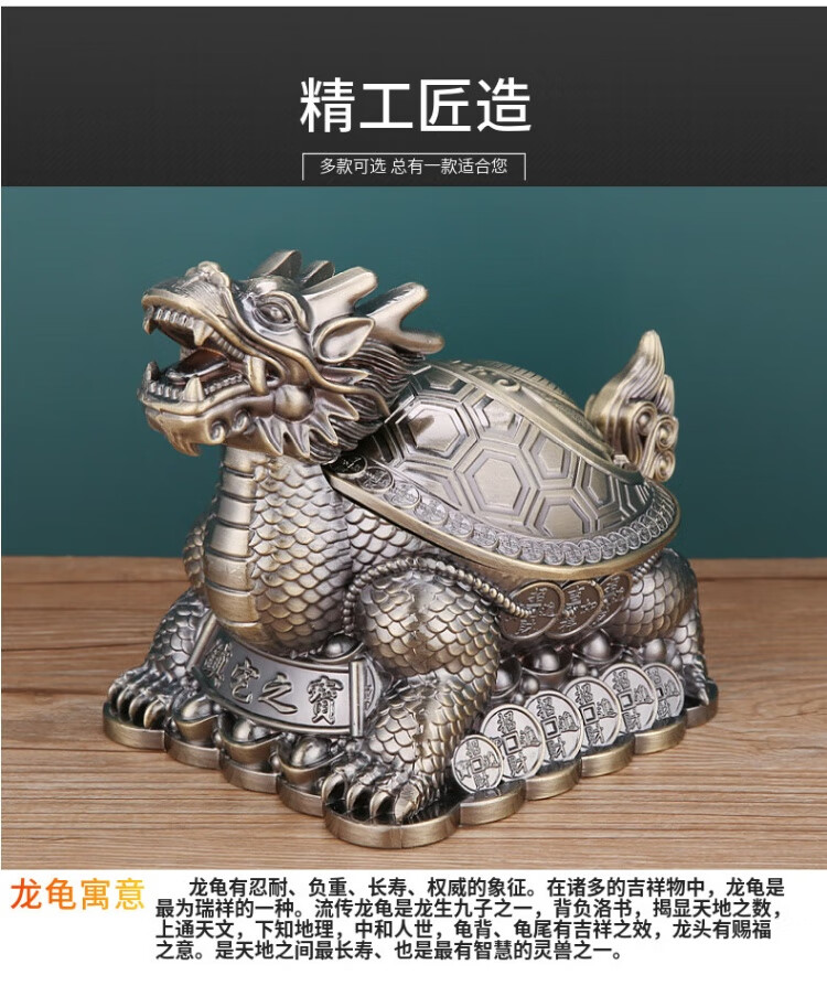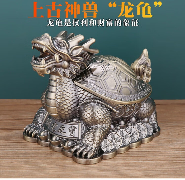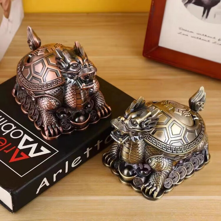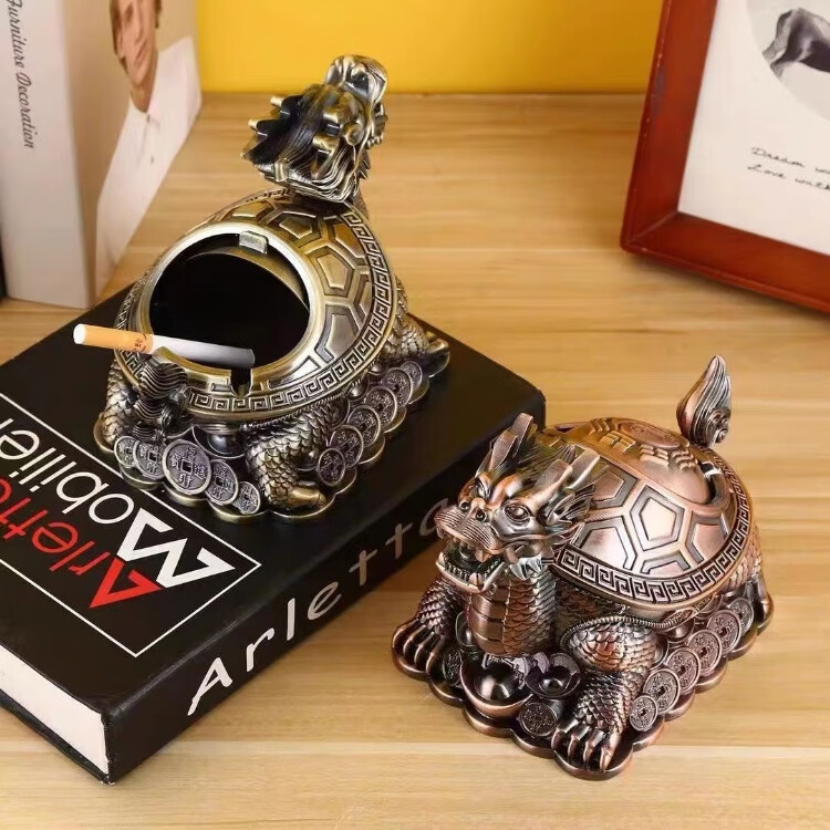 烟灰缸创意高档合金龙龟轻奢客厅办公室防灰带盖烟灰缸转运摆件 红铜龙龟