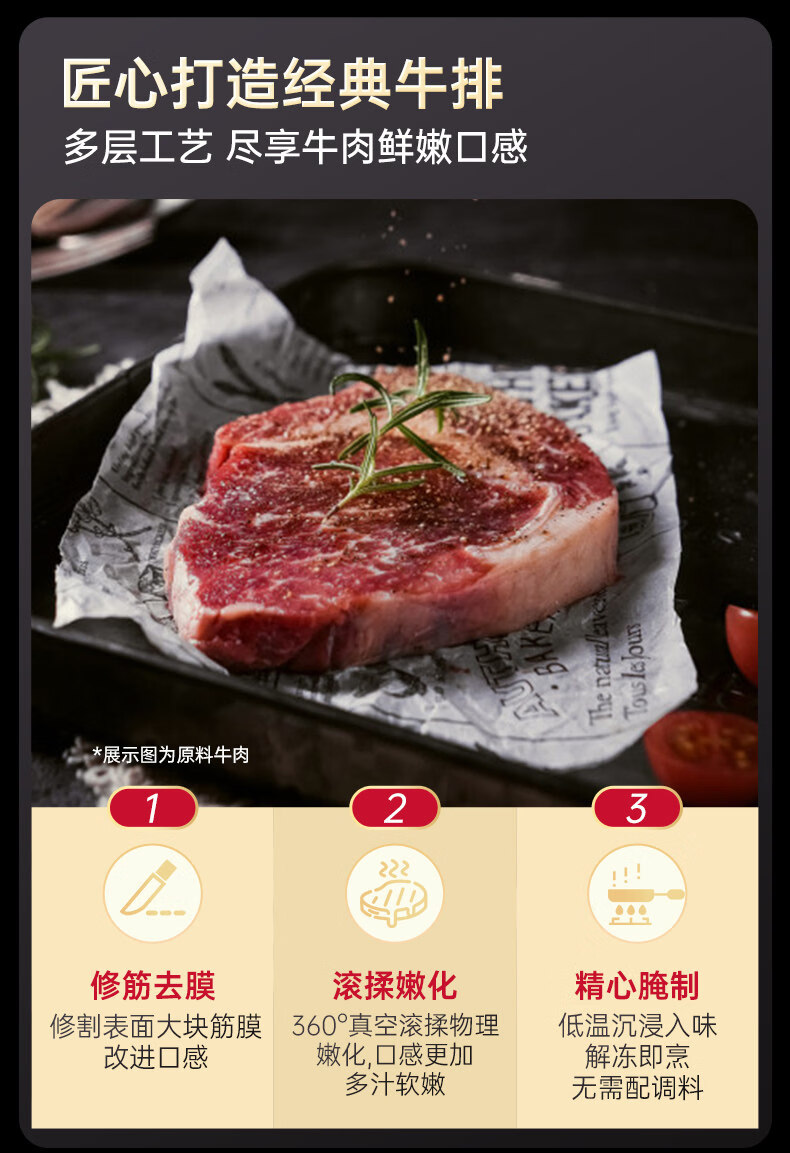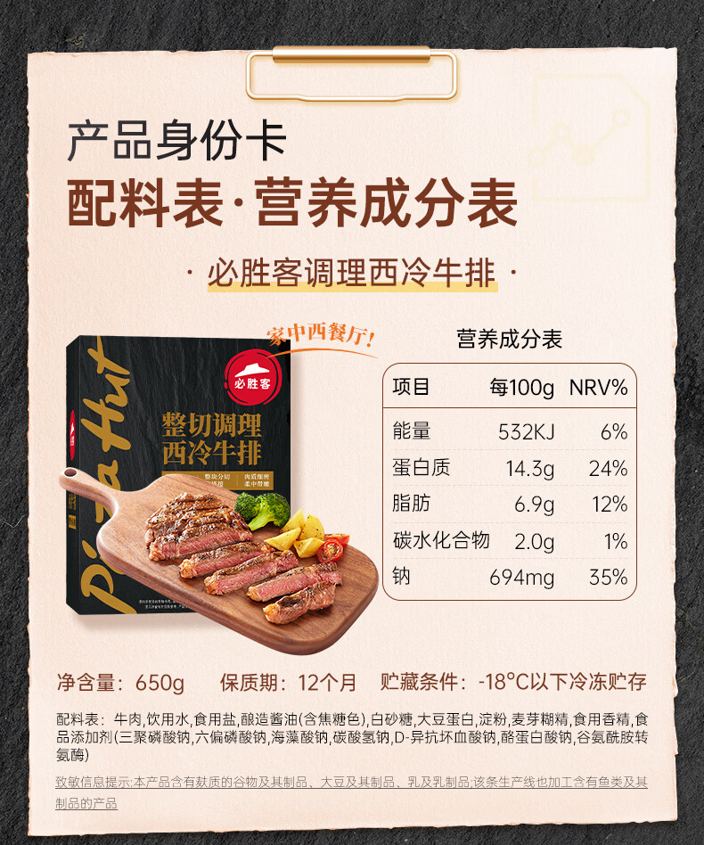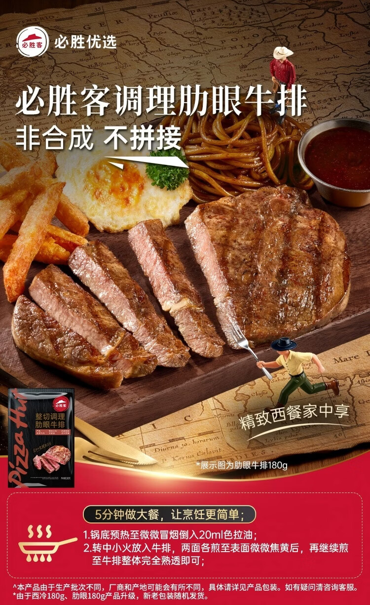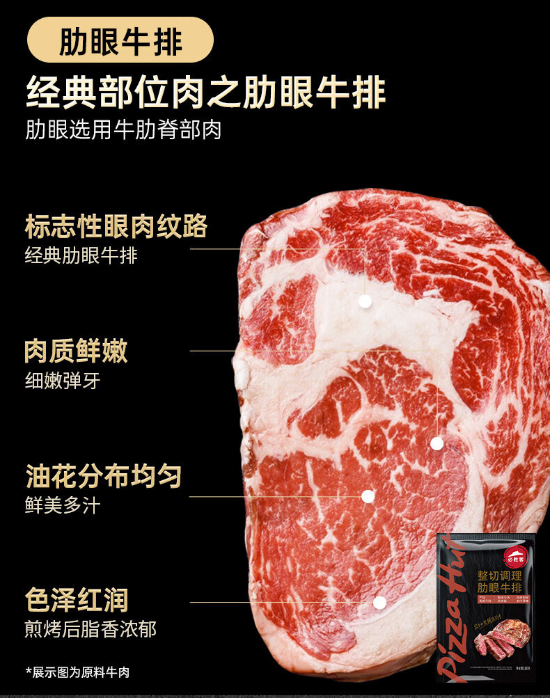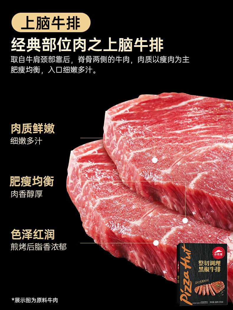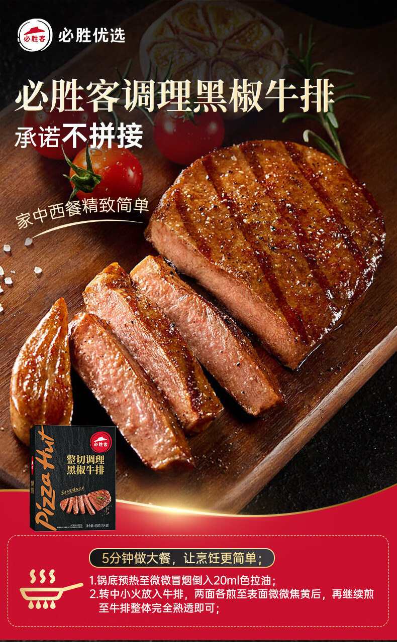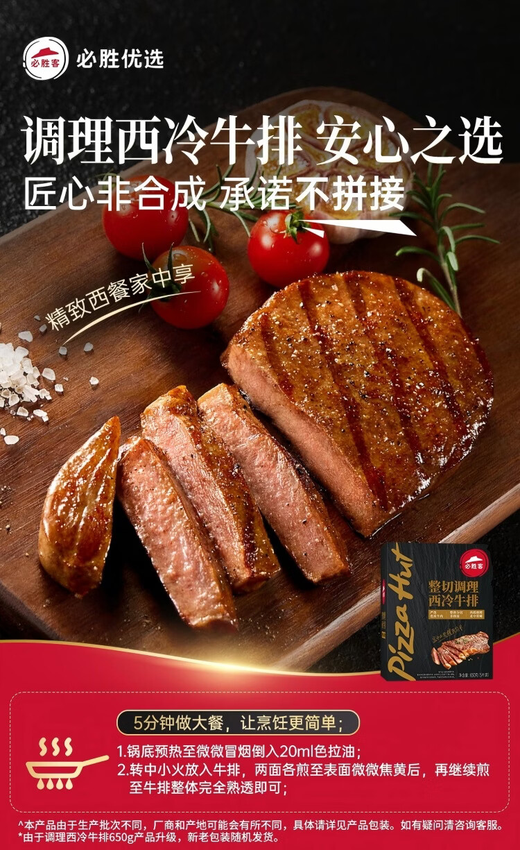 必胜客调理西冷肋眼儿童牛排牛肉生鲜牛扒烧烤食材 黑椒牛排650g 盒*2(共10片)