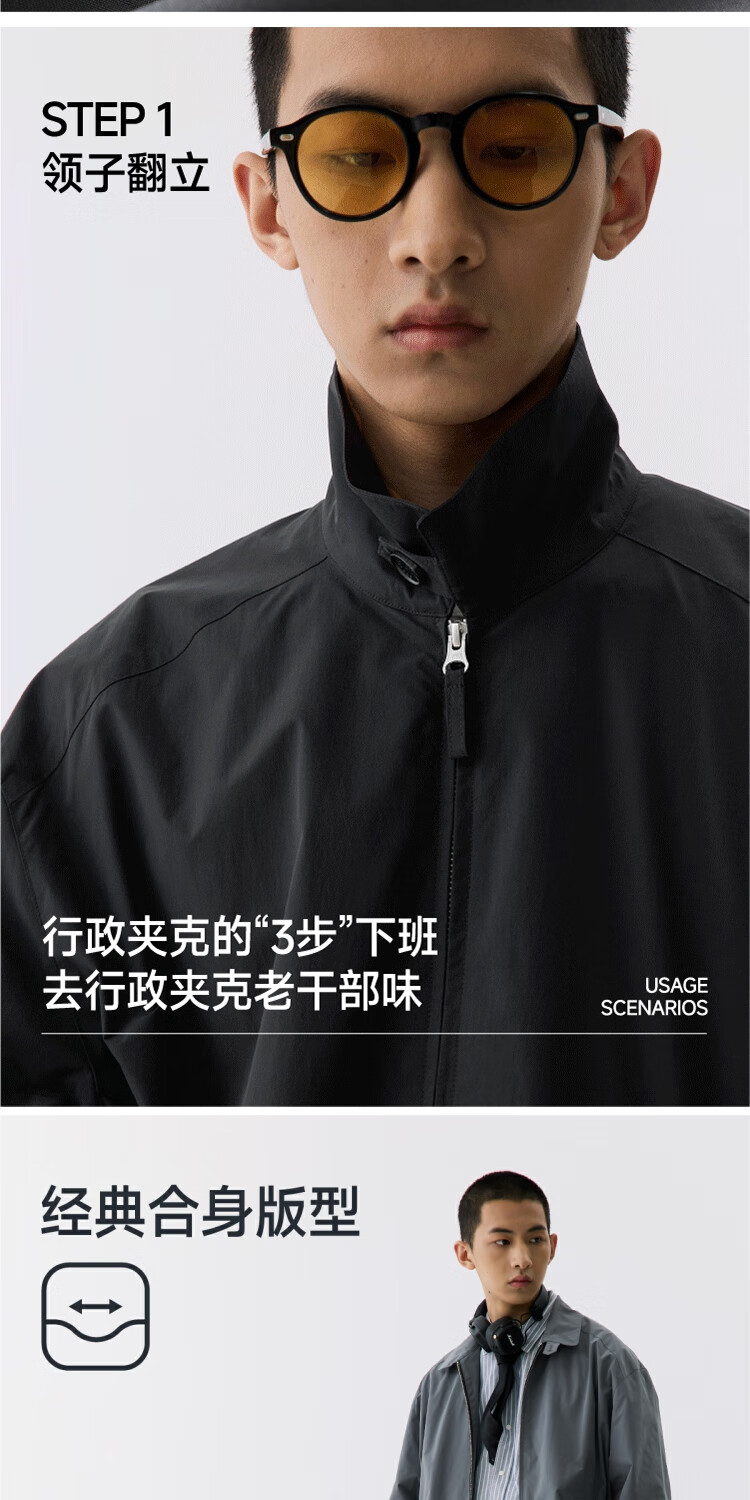 才子(TRIES)外套男行政夹克男士商务休闲立领春秋新款通勤风上衣男 灰色 XL (175/92A)