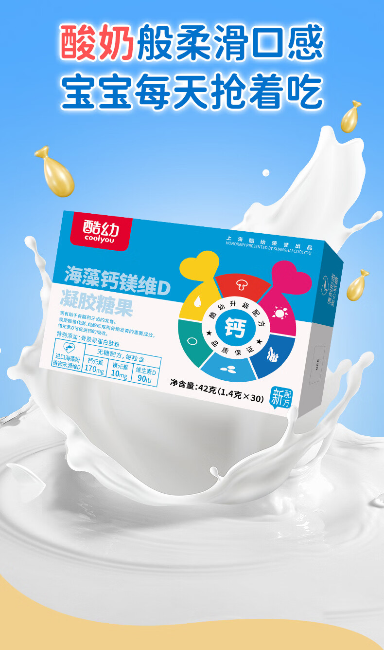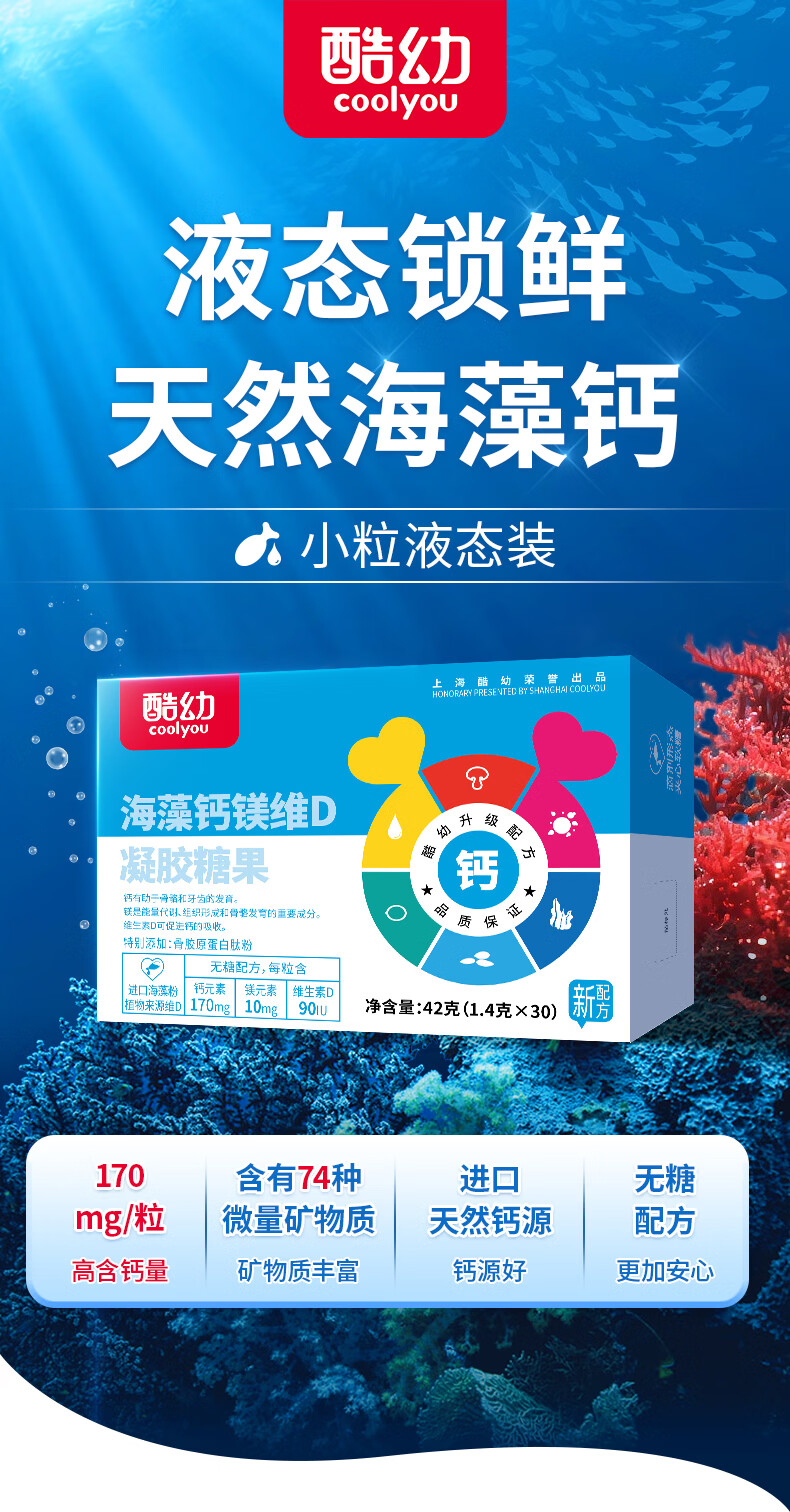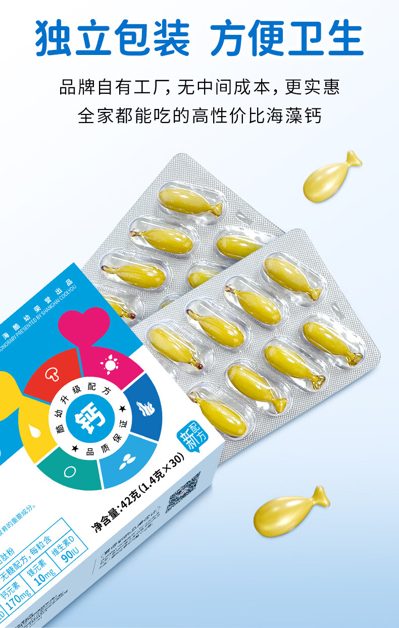 酷幼海藻钙液体钙镁锌维D钙婴幼儿0-6-12个月3岁婴儿钙宝宝儿童补钙 120粒囤货装(80%客户选择) 30粒*4盒