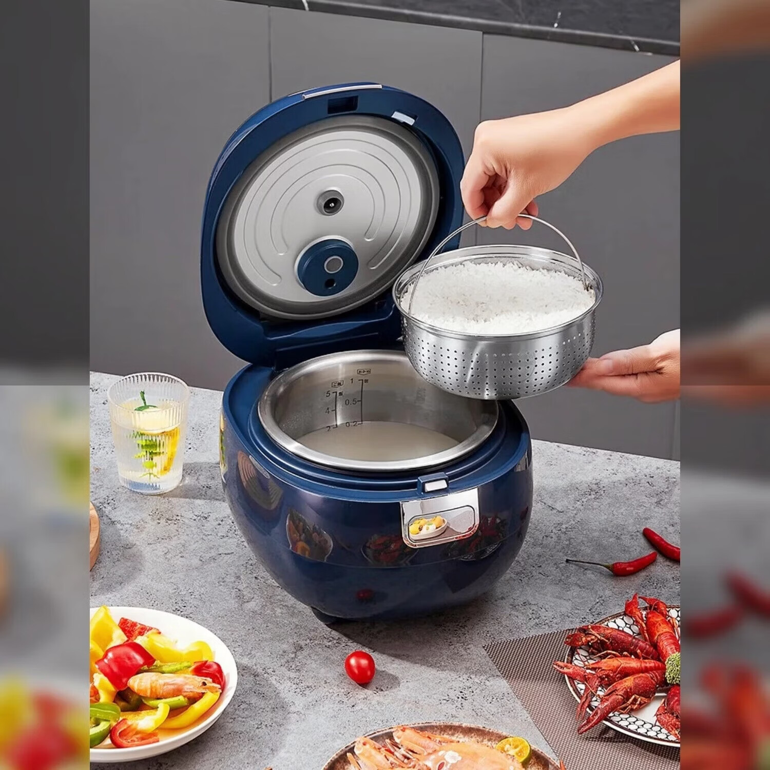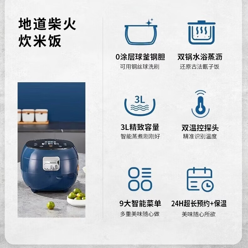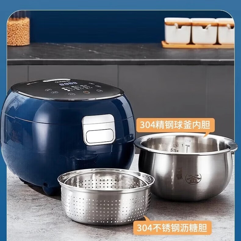 千寿日本品牌无涂层多功能低糖电饭煲米汤分离沥米饭捞米蒸饭锅电饭锅家用1-4个人QS-A03E 宝蓝色 3L -304球釜母胆+沥糖胆 1-4人用