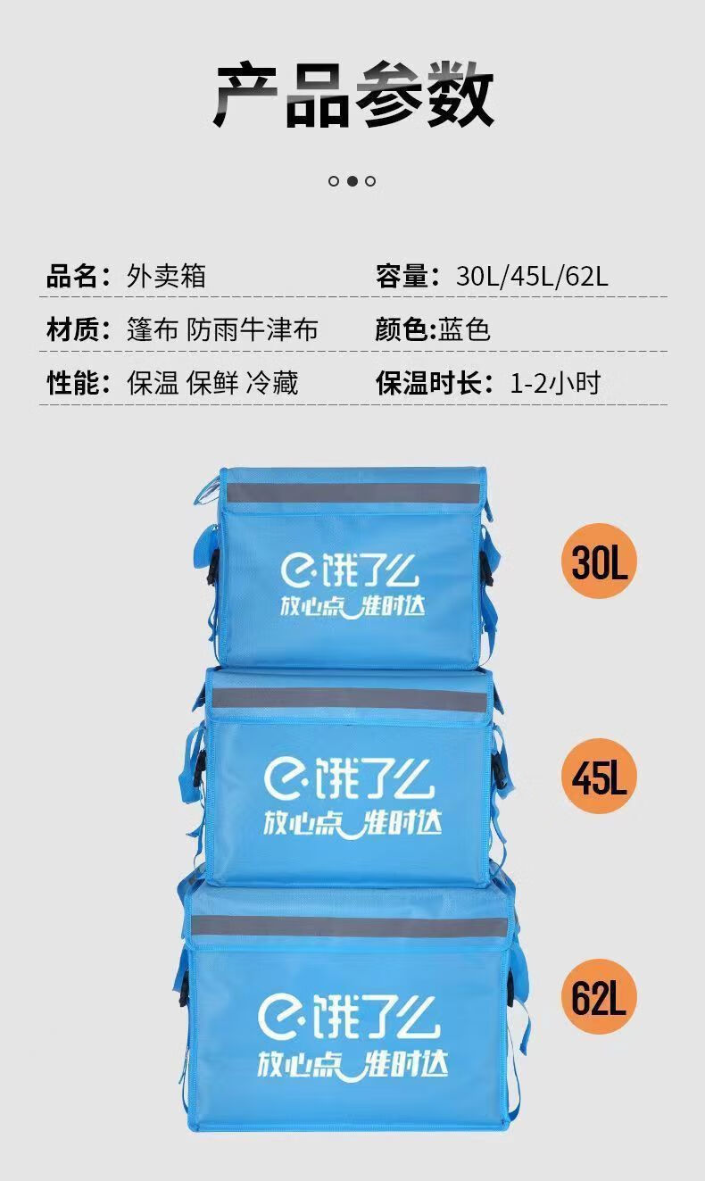 轻享奢【厂家直发】饿了么外卖餐箱骑手众包配送保温箱户外商用摆摊加厚 饿了么62升标配+车载架