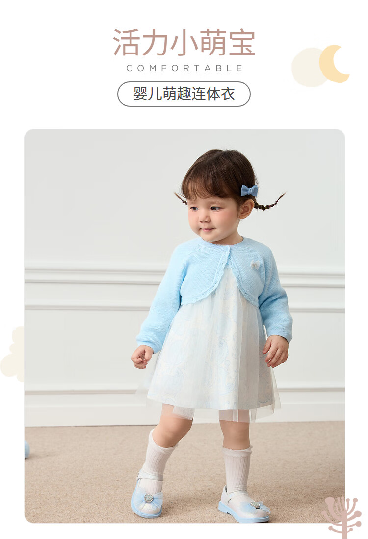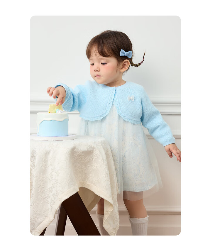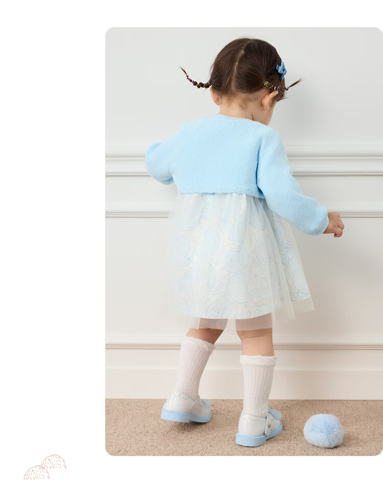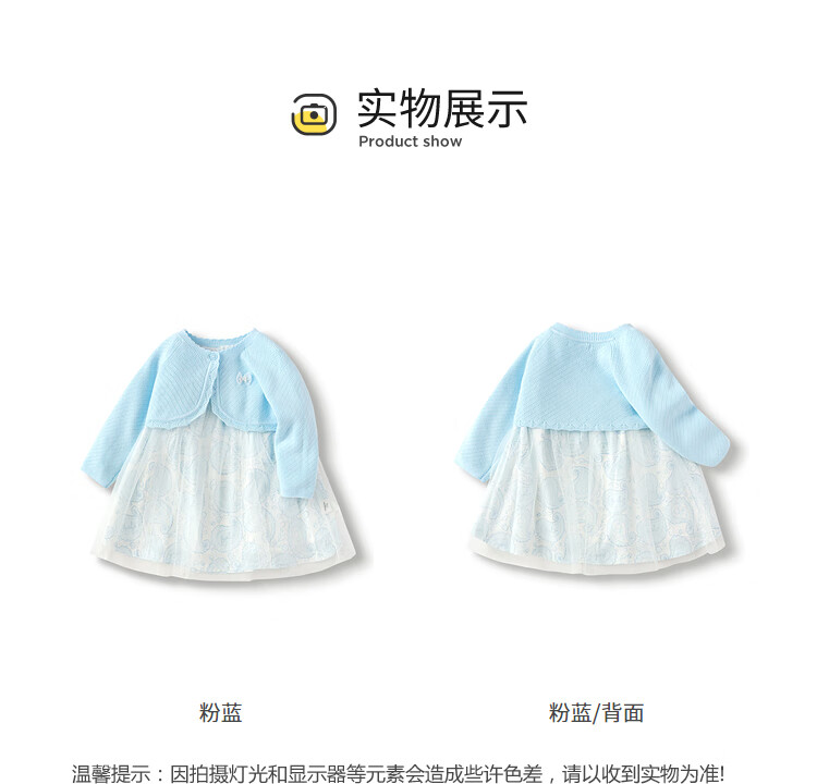 巴拉巴拉女童连衣裙儿童裙子两件套宝宝公主裙甜美可爱清新文艺萌 粉蓝80004 100