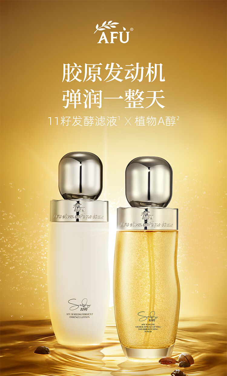 阿芙(AFU)11籽金珠水乳套装 紧致抗皱补水滋润 情人节礼物