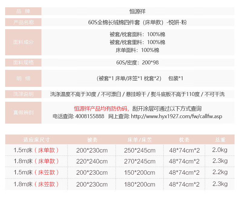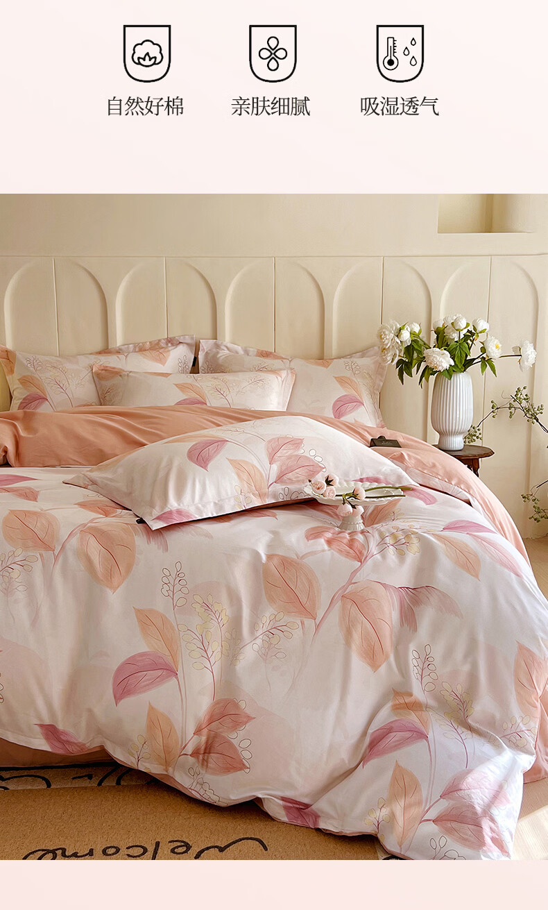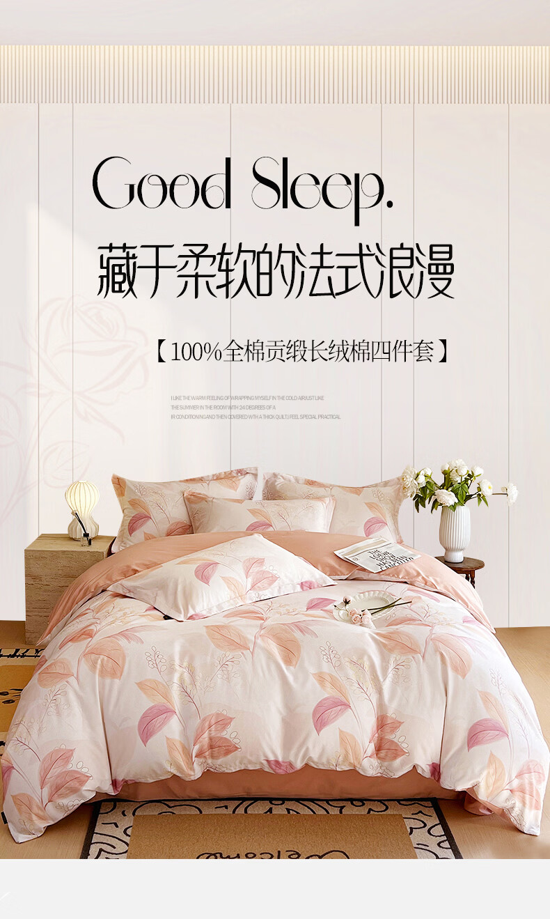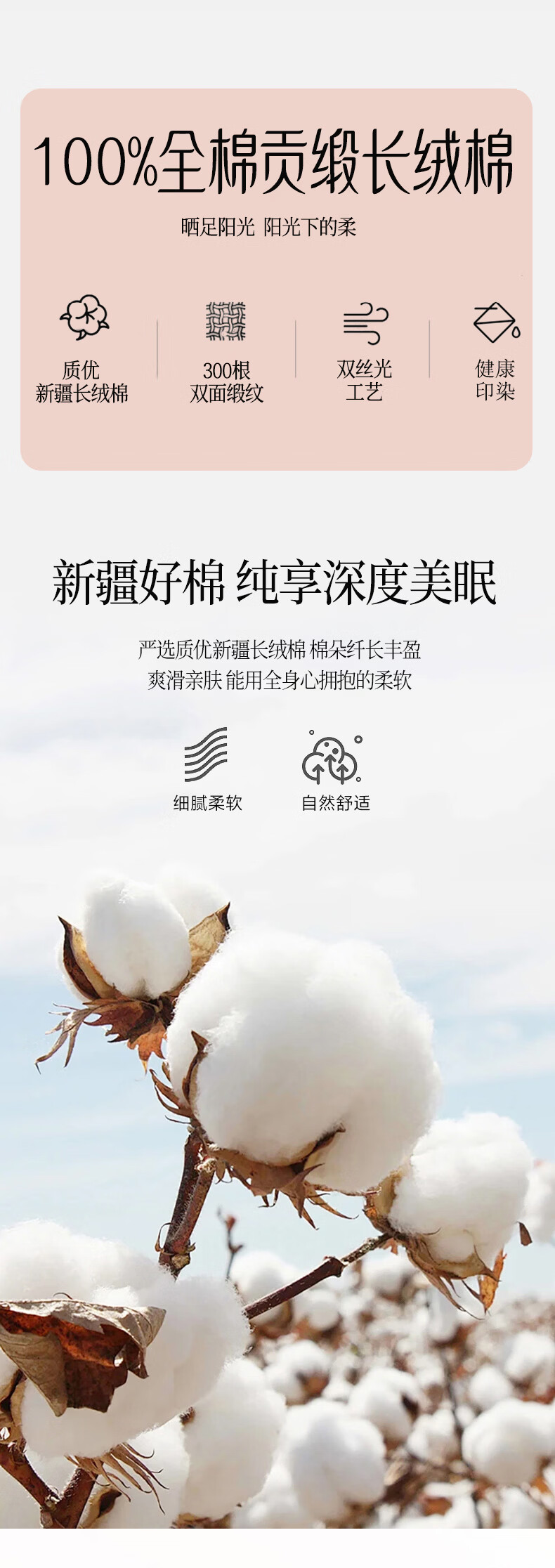恒源祥 纯棉四件套 60支贡缎长绒棉印花四件套A类标准亲肤裸睡双人床品 卡布奇诺-米 60支 【100%纯棉】 1.5米床 床单款 (被套200*230cm)