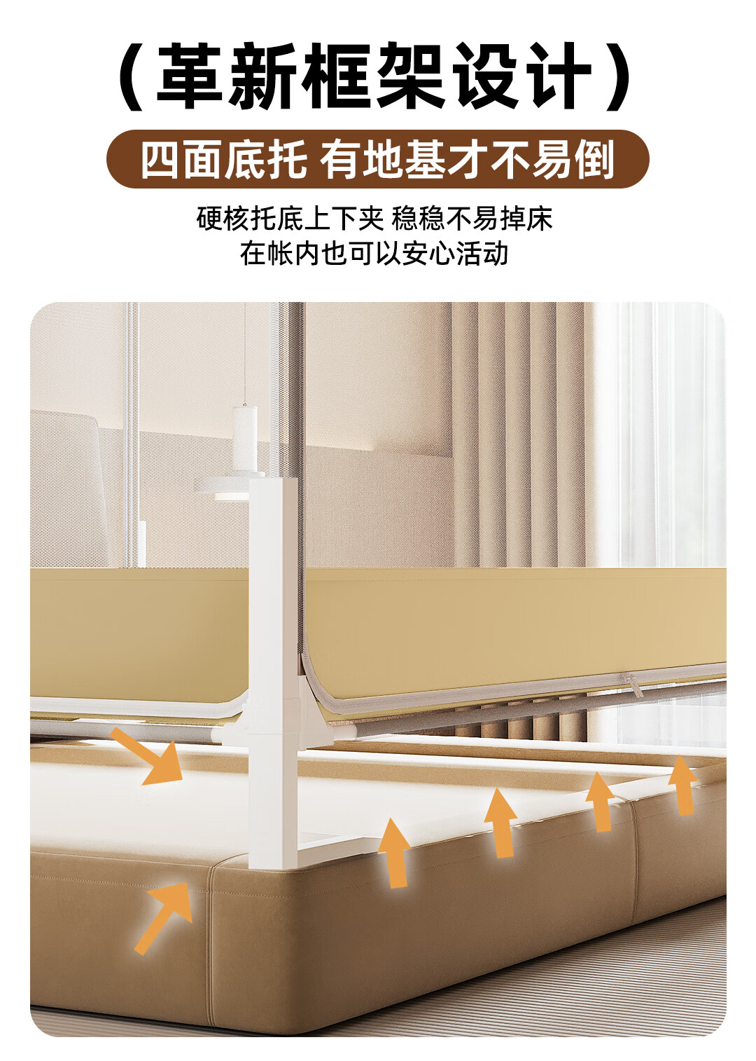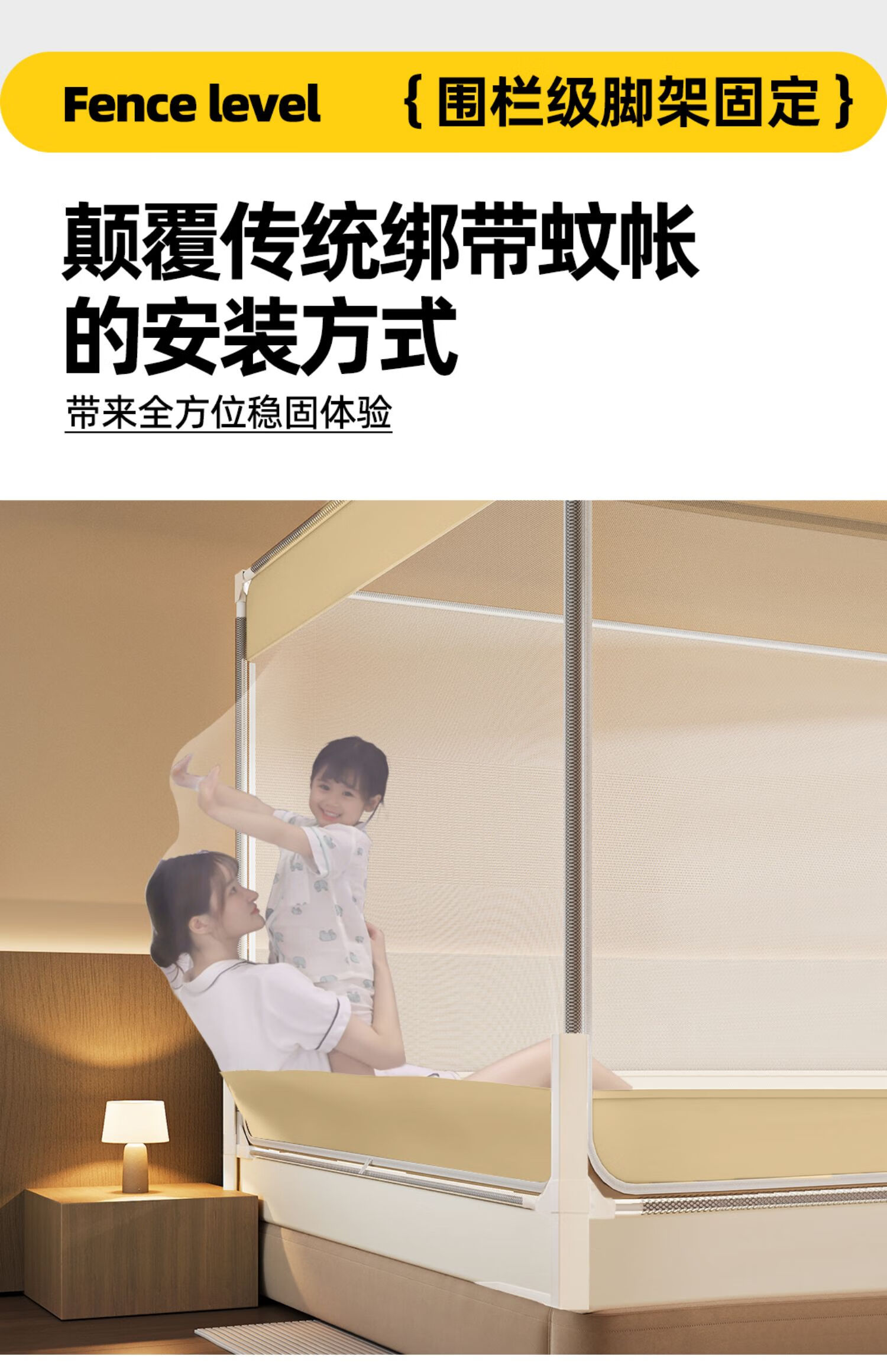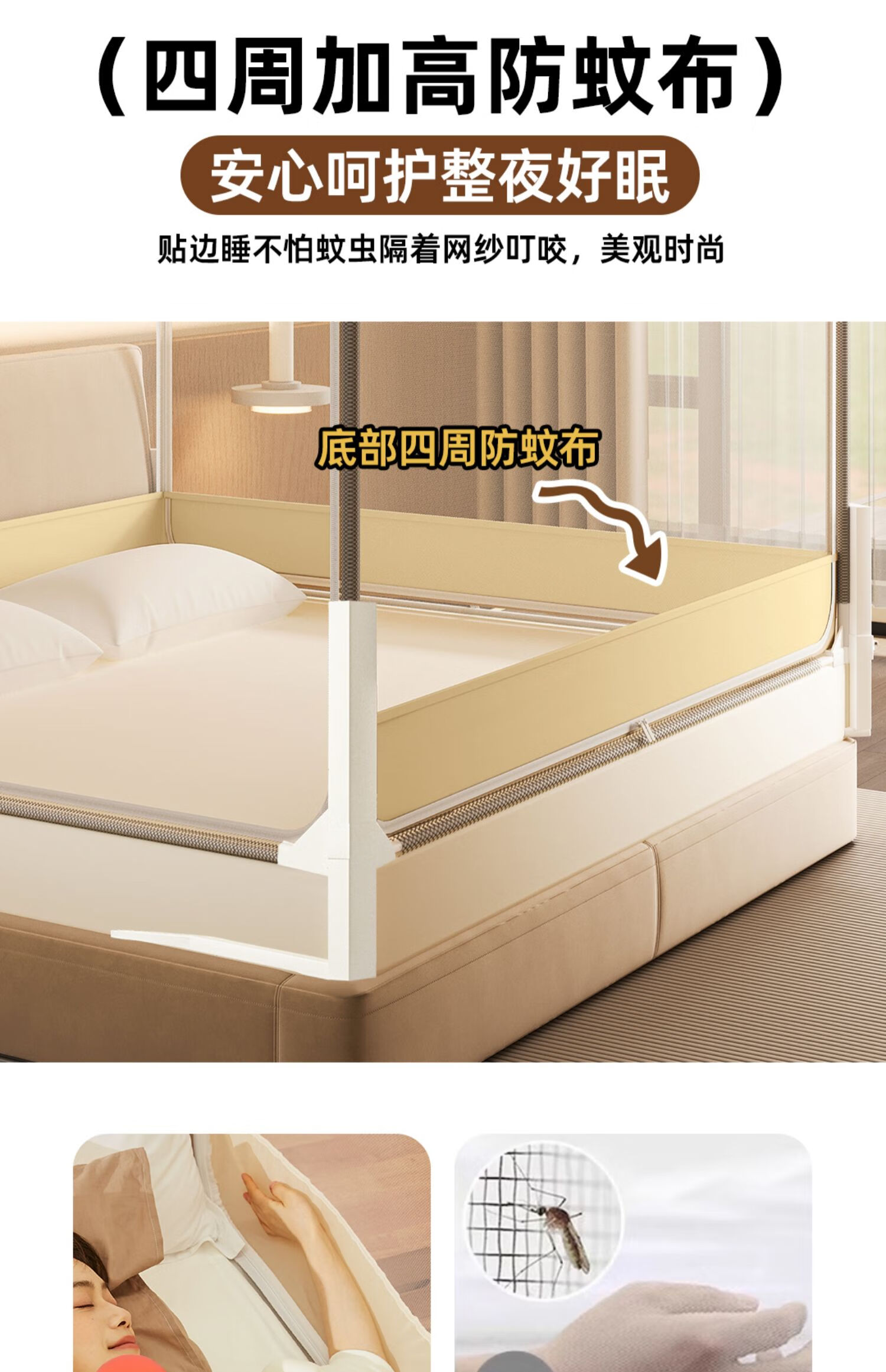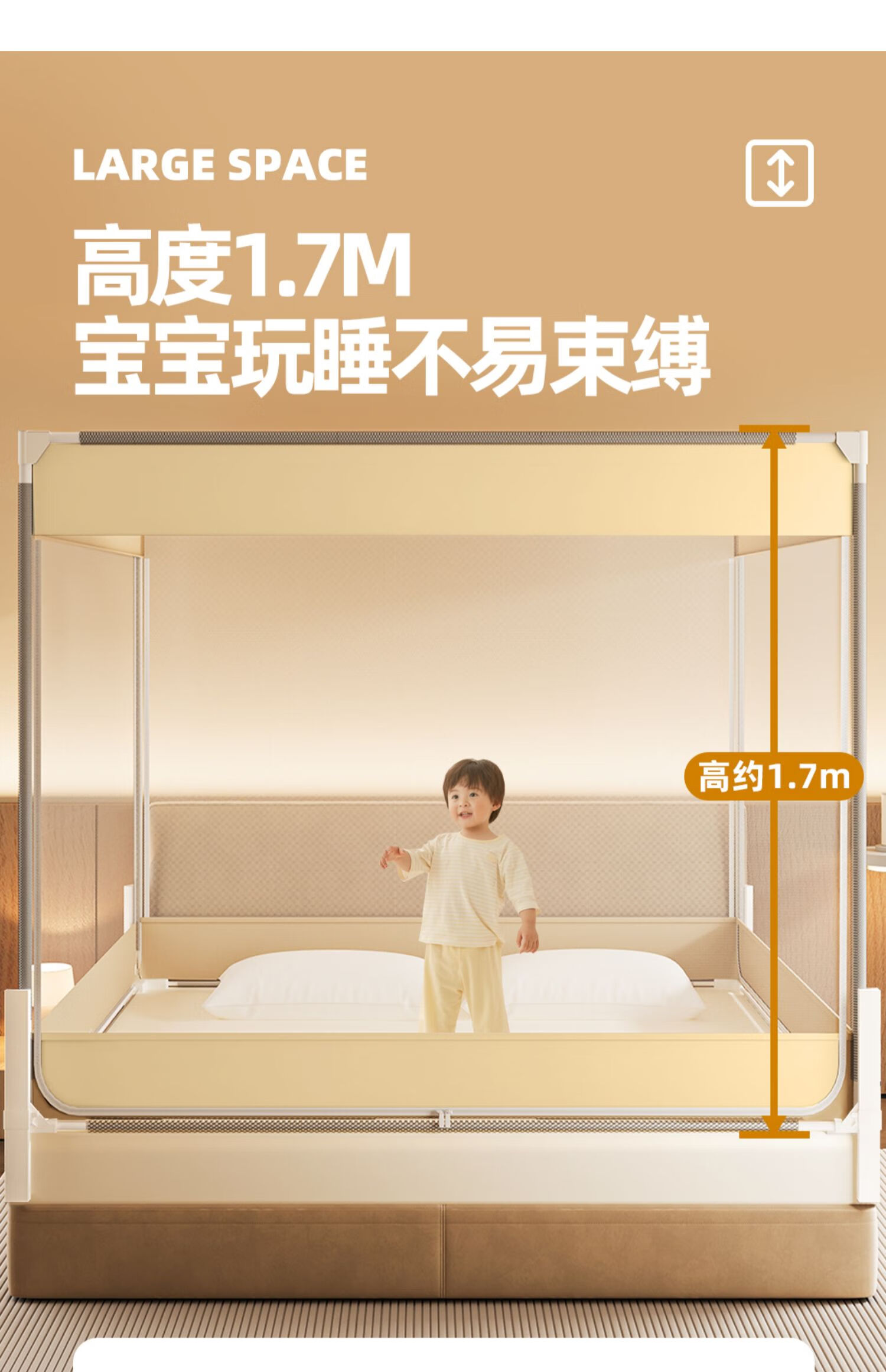 高睿2025新款蚊帐家用卧室婴儿童防止掉床围栏全底一体式升降防摔纹帐 【护栏防摔支架】蜜合米 150cm*200cm*170cm -1.5m床