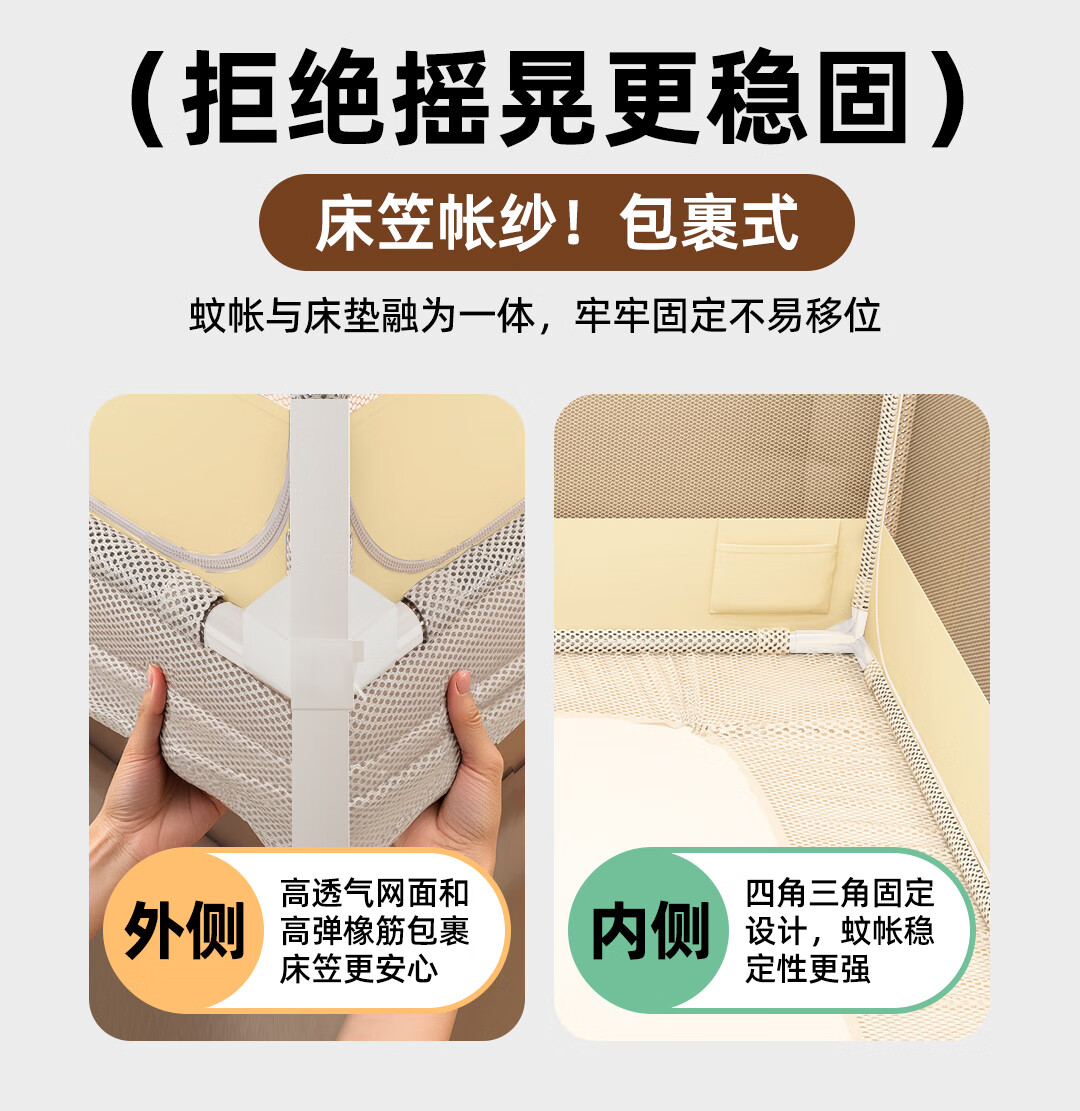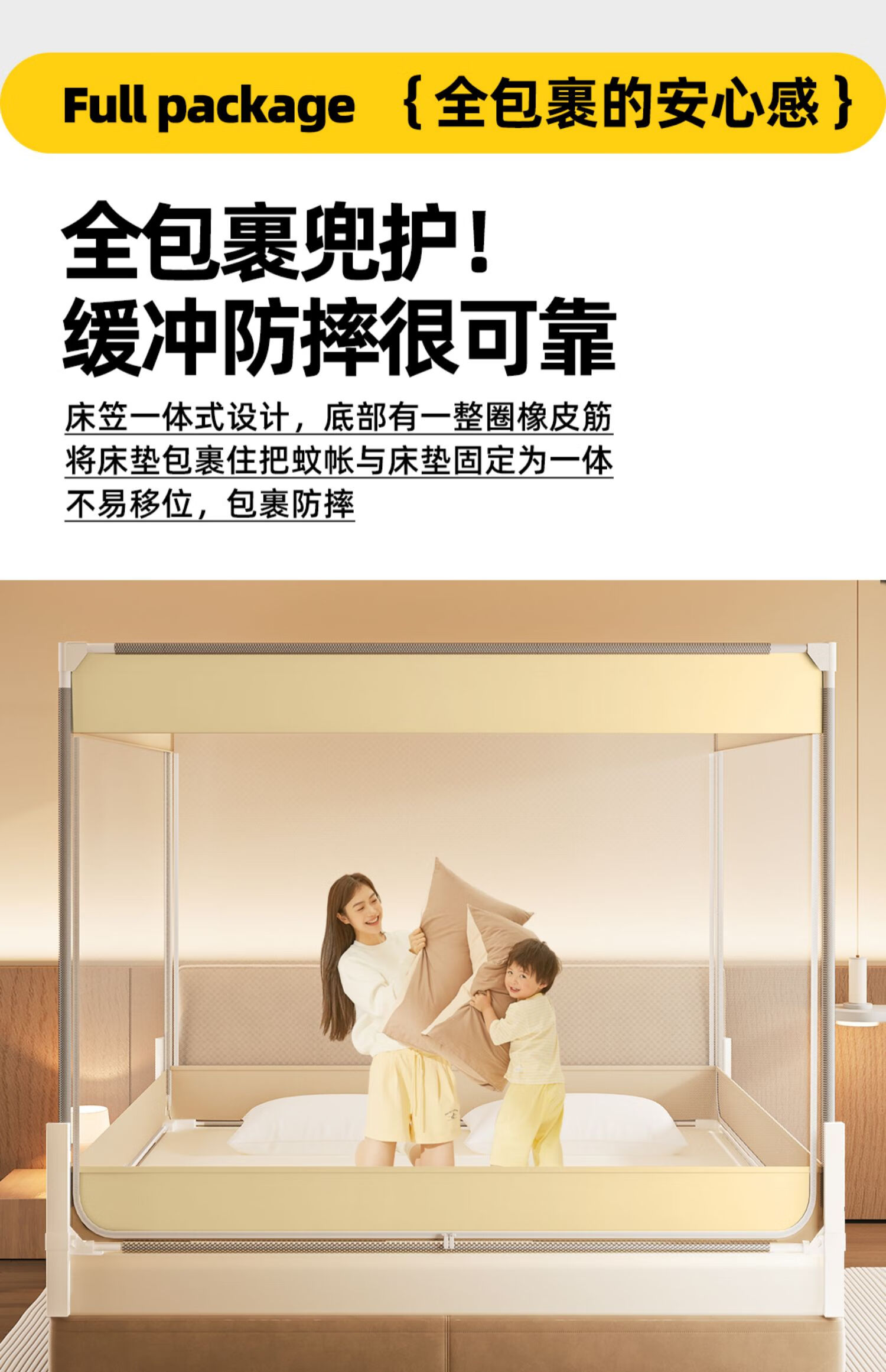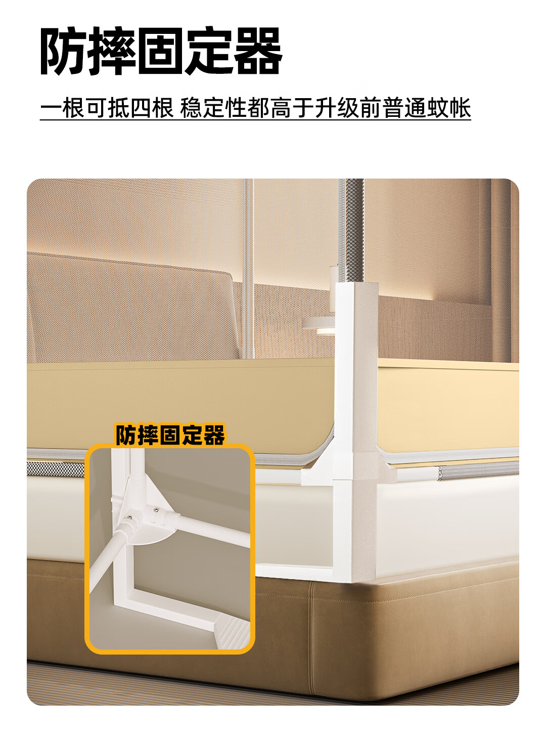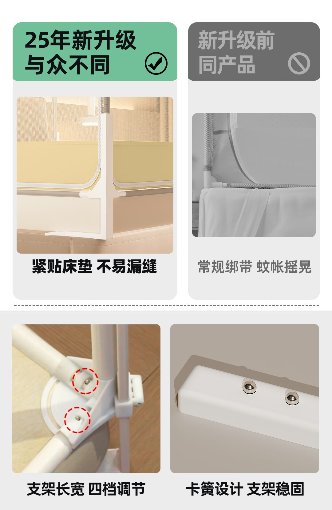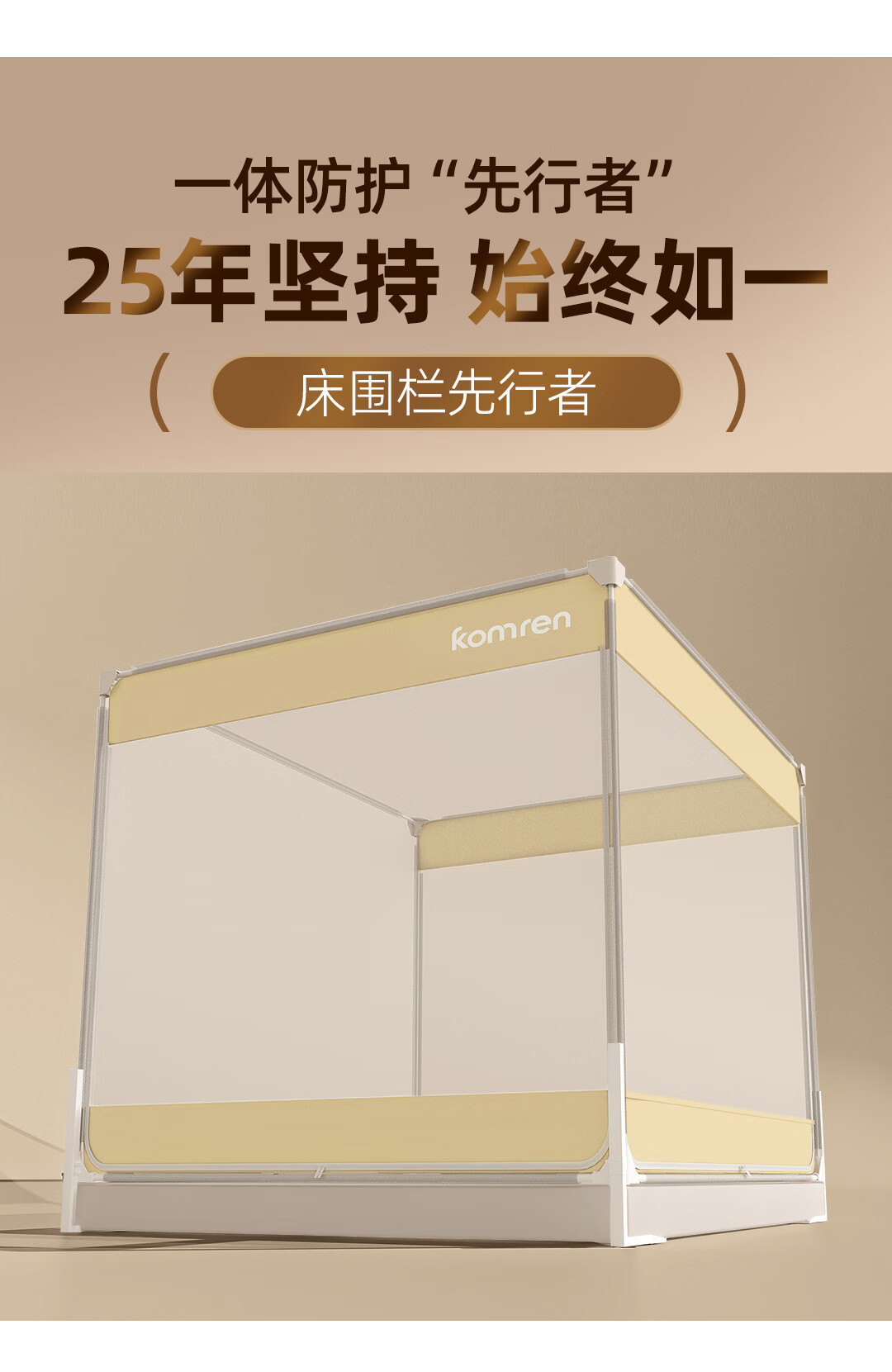 高睿2025新款蚊帐家用卧室婴儿童防止掉床围栏全底一体式升降防摔纹帐 【护栏防摔支架】蜜合米 150cm*200cm*170cm -1.5m床