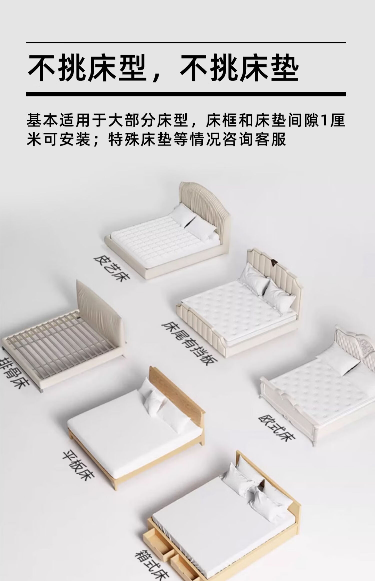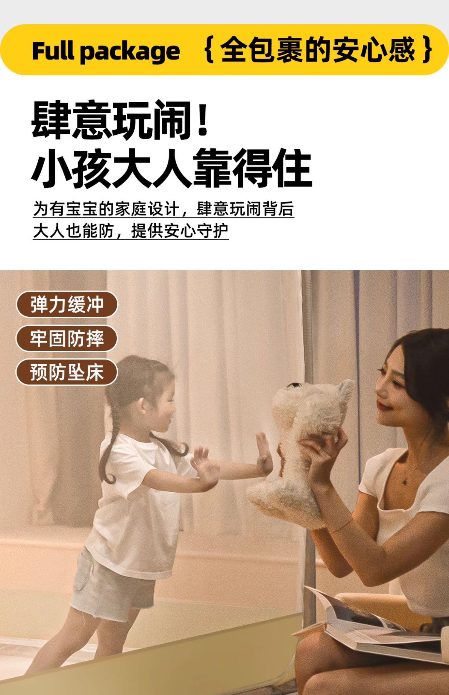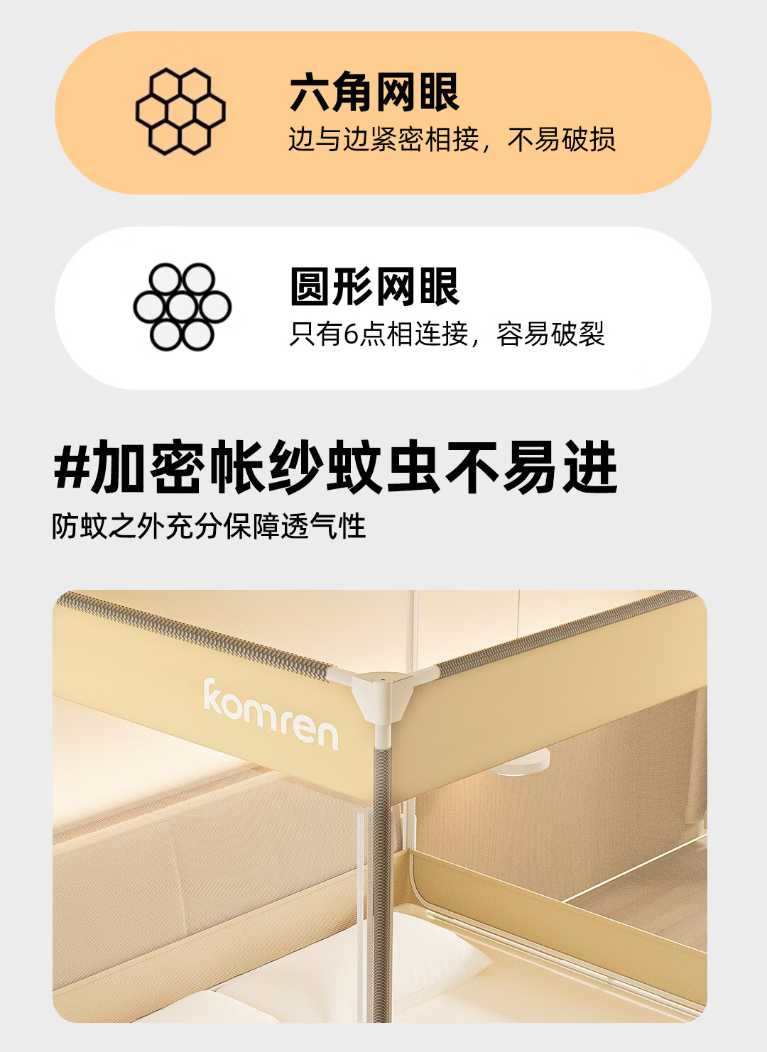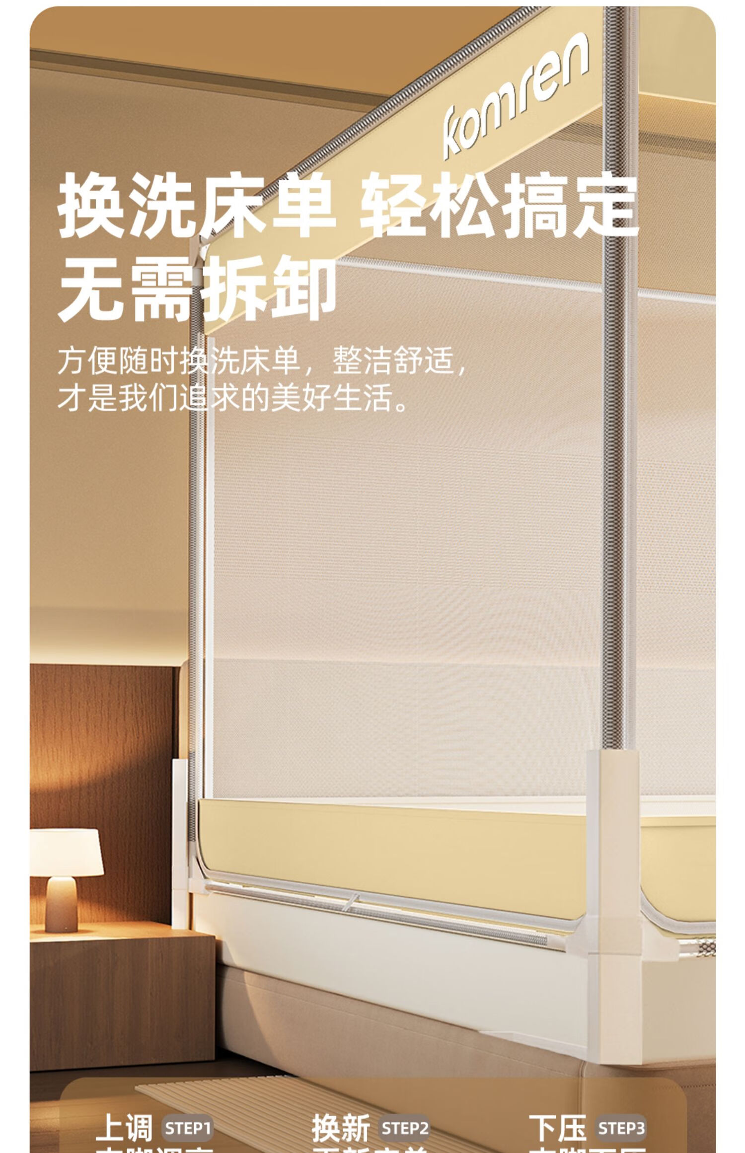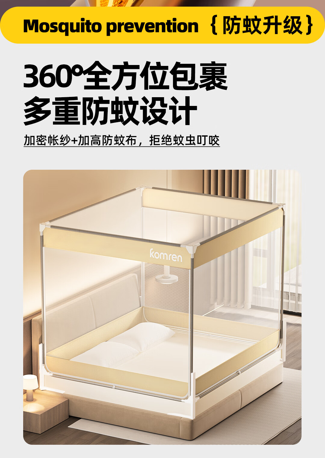 高睿2025新款蚊帐家用卧室婴儿童防止掉床围栏全底一体式升降防摔纹帐 【护栏防摔支架】蜜合米 150cm*200cm*170cm -1.5m床