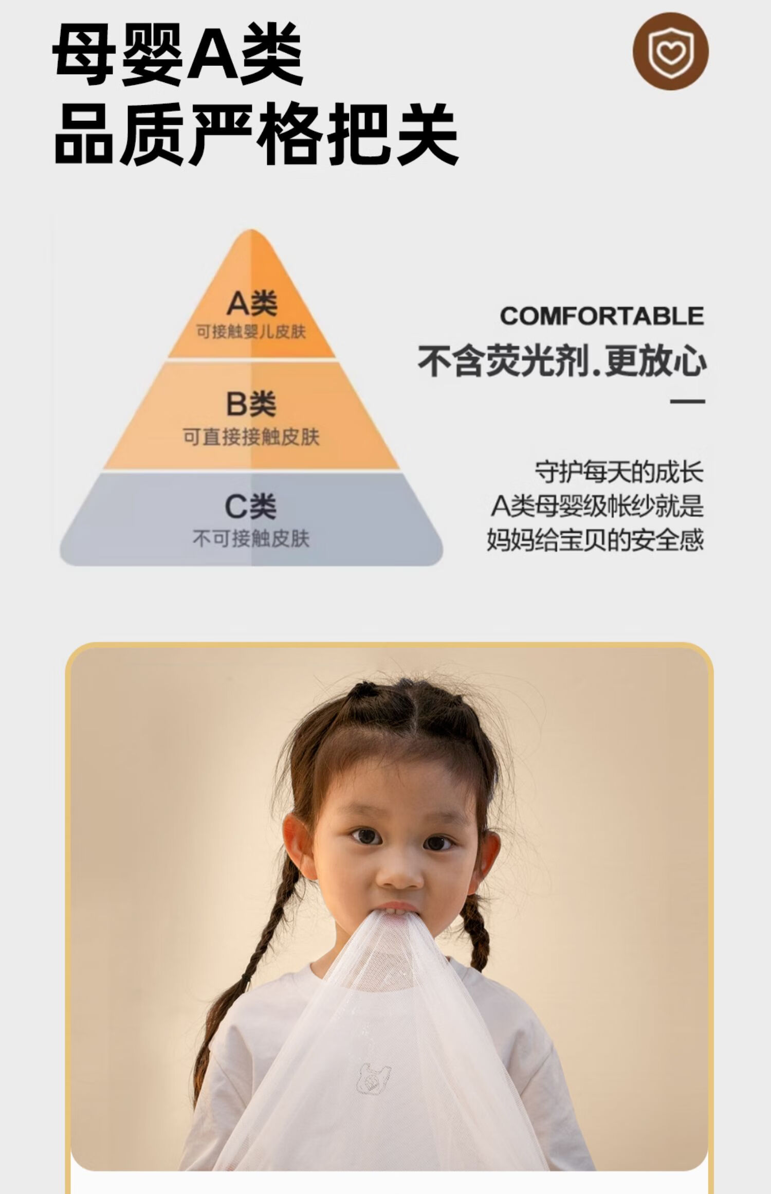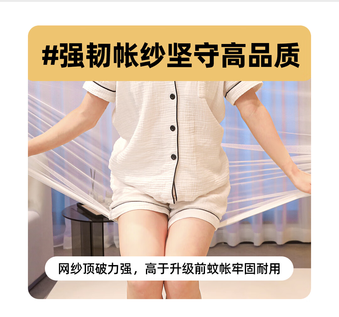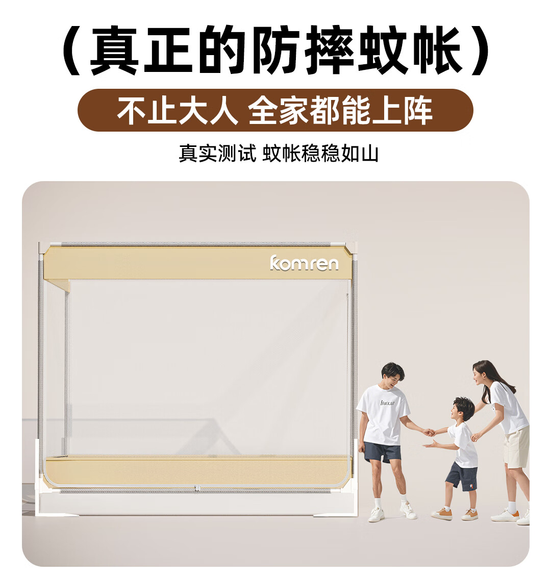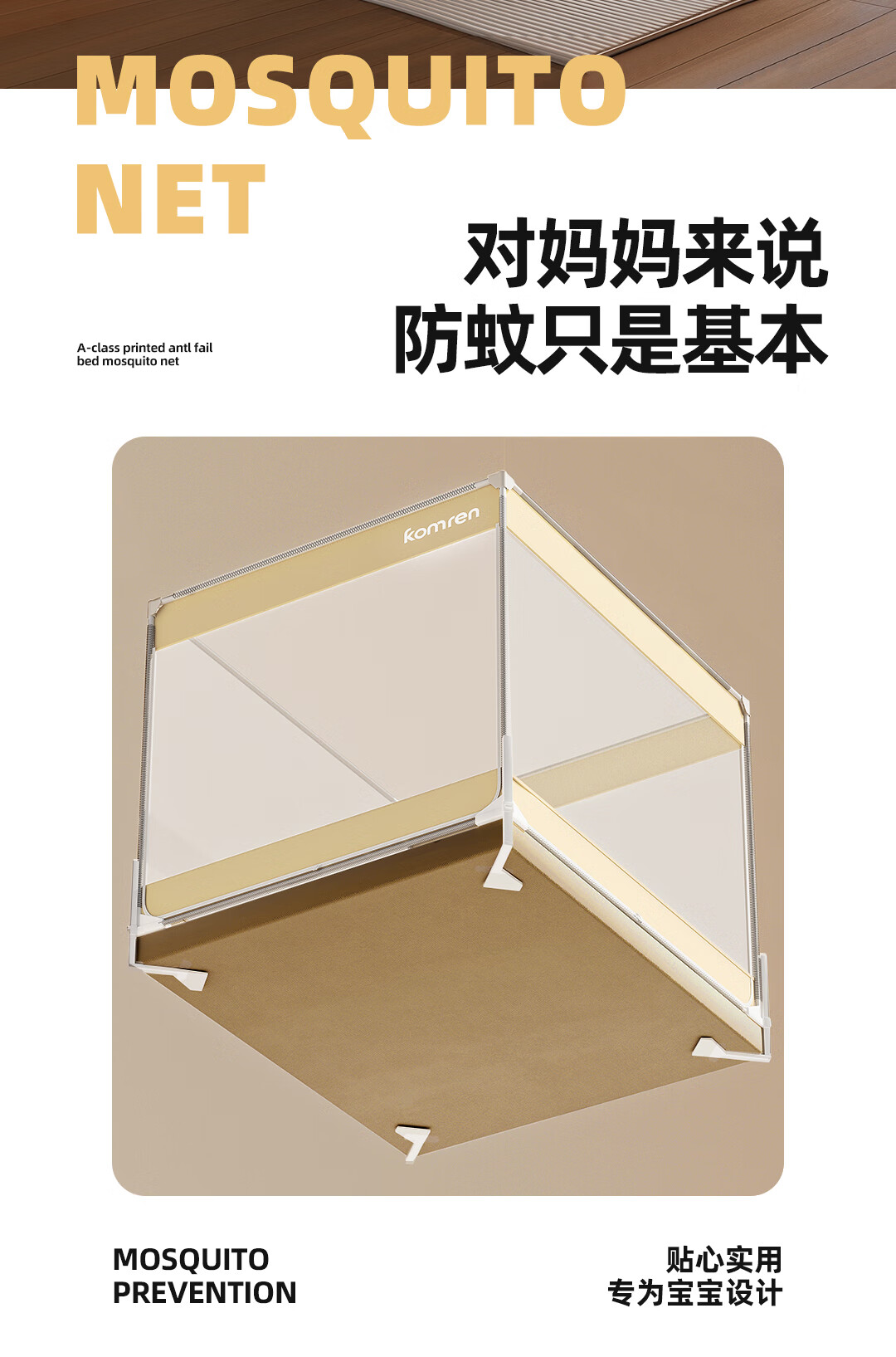 高睿2025新款蚊帐家用卧室婴儿童防止掉床围栏全底一体式升降防摔纹帐 【护栏防摔支架】蜜合米 150cm*200cm*170cm -1.5m床